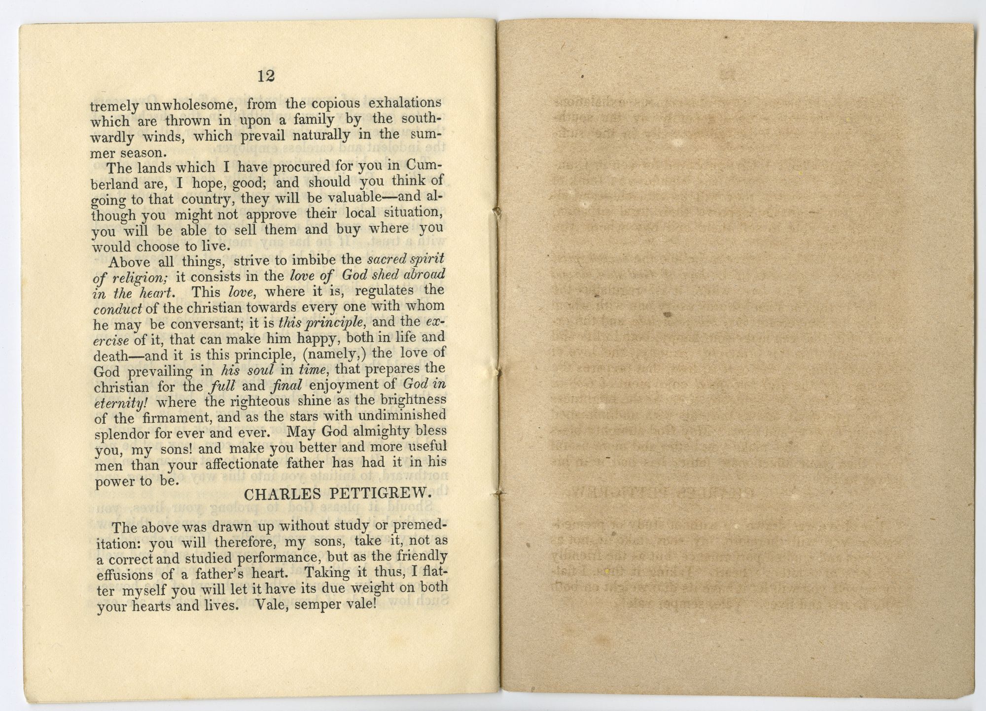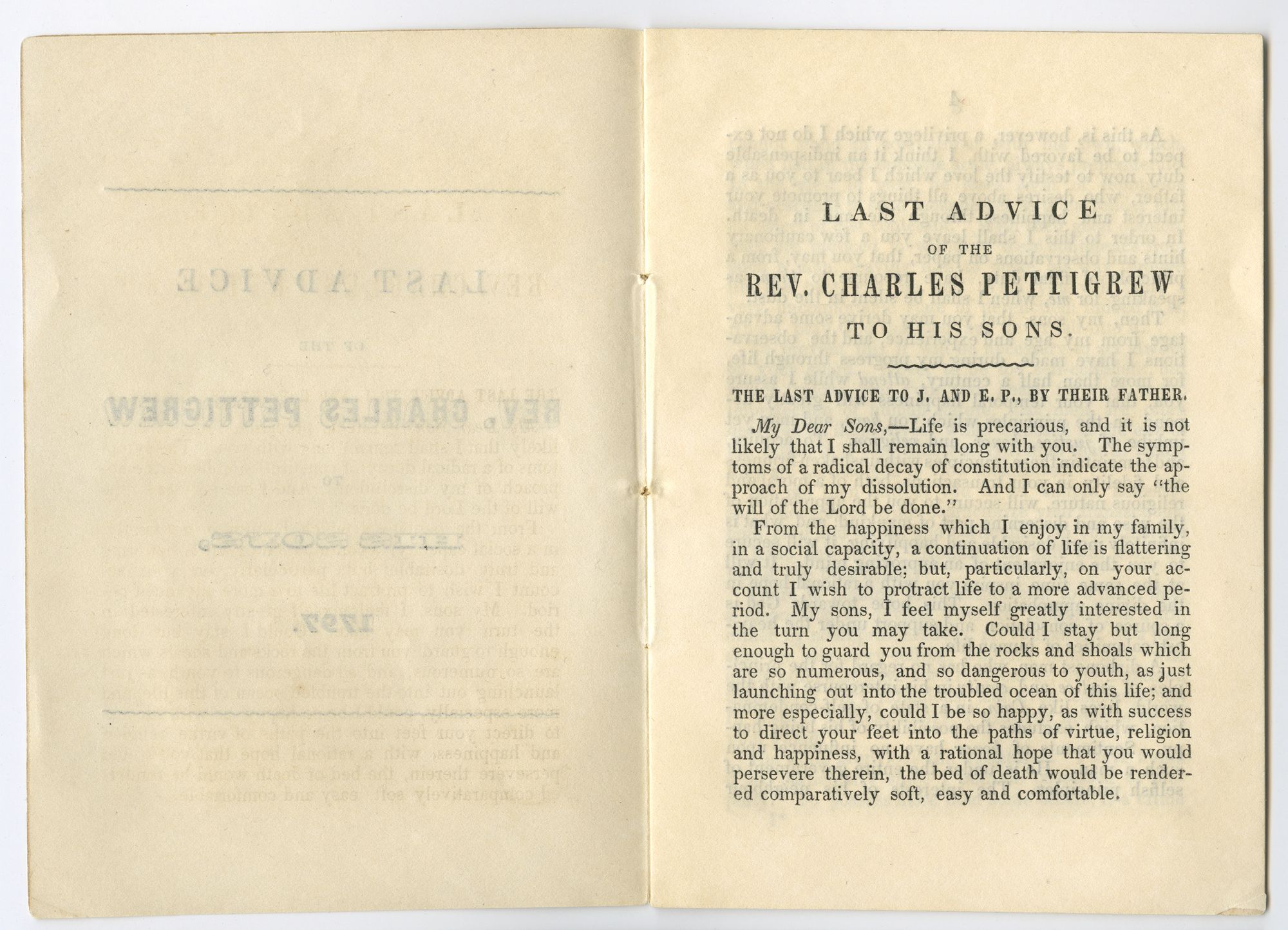 Last advice of the Rev. Charles Pettigrew to his sons, 1797