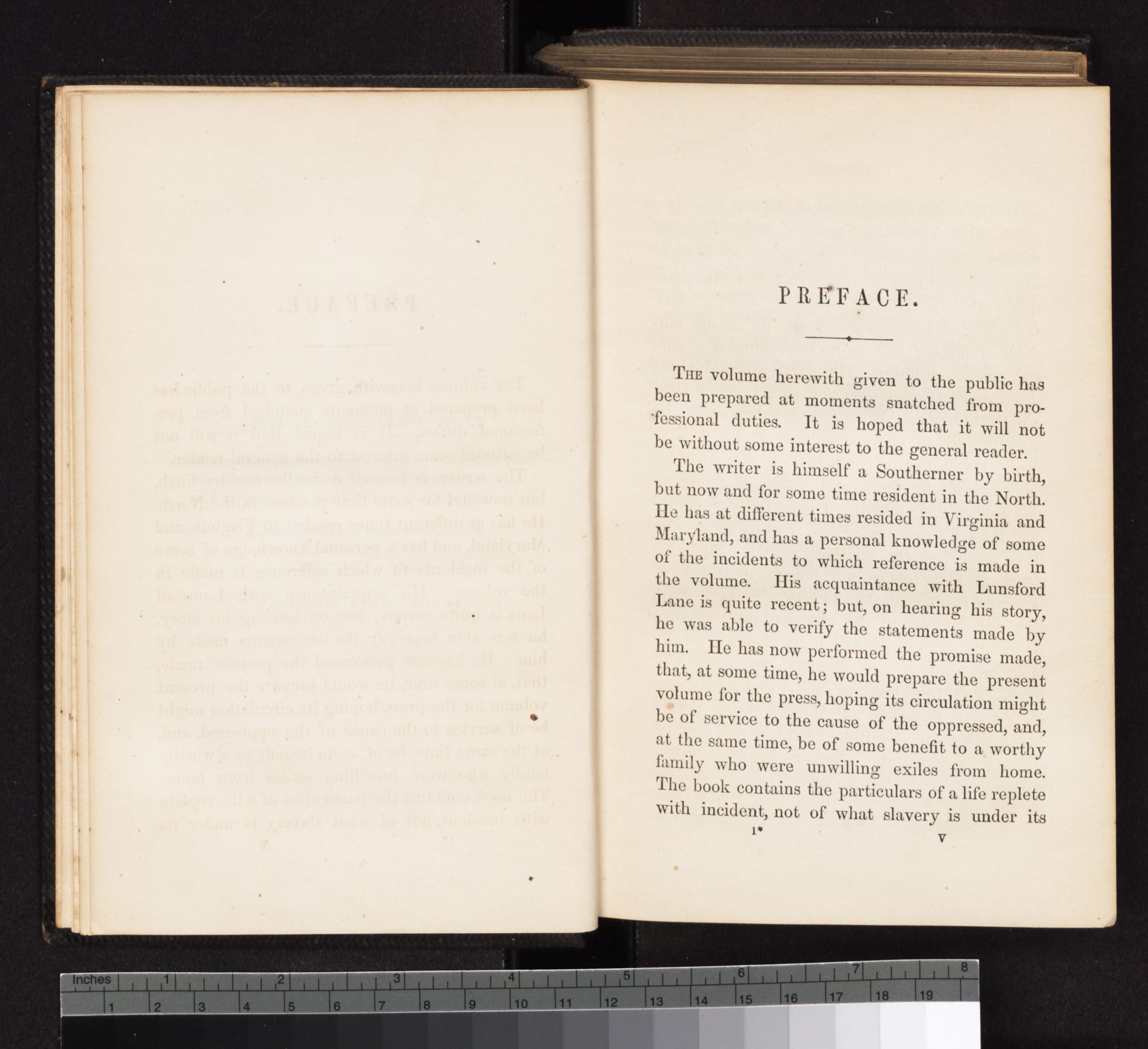 The writer is himself a Southerner by birth, but now and for some time resident in the North. He has at different times resided in Virginia and Maryland, and has a personal knowledge of some of the incidents to which reference is made in the volume. His acquaintance with Lunsford Lane is quite recent; but, on hearing his story, he was able to verify the statements made by him. He has now performed the promise made, that, at some time, he would prepare the present volume for the press, hoping its circulation might be of service to the cause of the oppressed, and, at the same time, be of some benefit to a worthy family who were unwilling exiles from home.