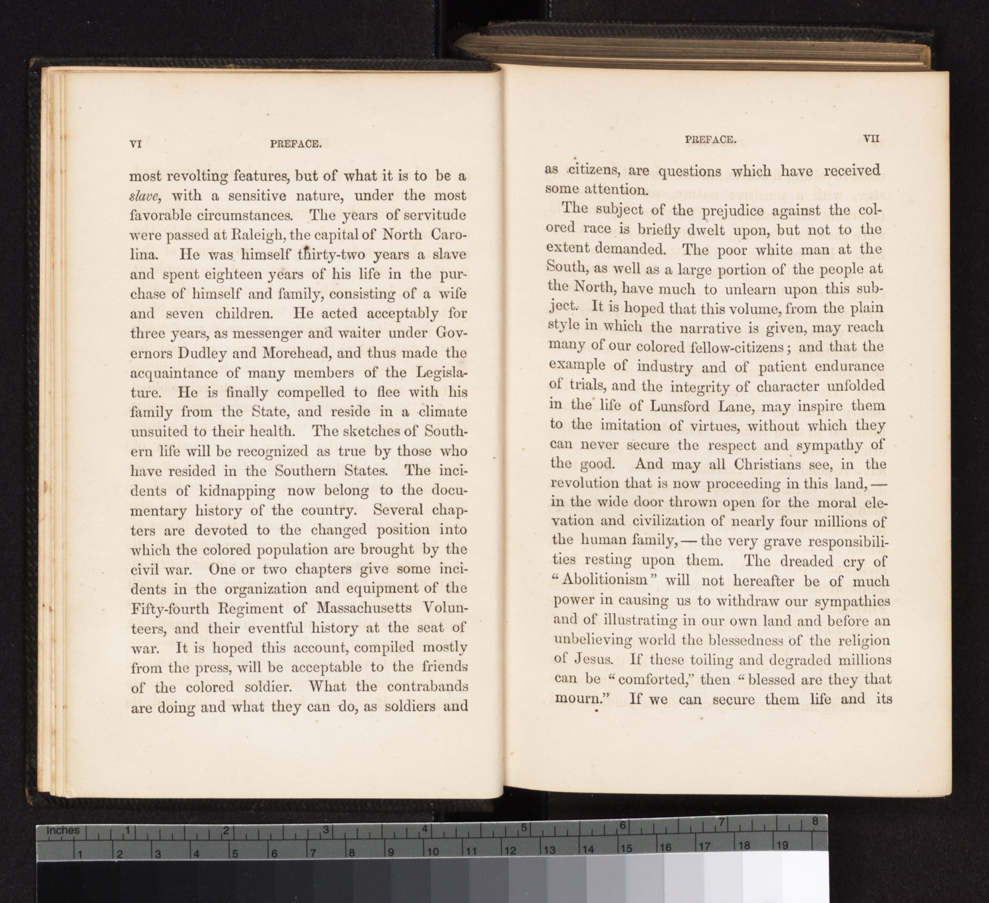 The subject of the prejudice against the colored race is briefly dwelt upon, but not to the extent demanded. The poor white man at the South, as well as a large portion of the people at the North, have much to unlearn upon this subject. It is hoped that this volume, from the plain style in which the narrative is given, may reach many of our colored fellow-citizens; and that the example of industry and of patient endurance of trials, and the integrity of character unfolded in the life of Lunsford Lane, may inspire them to the imitation of virtues, without which they can never secure the respect and sympathy of the good. And may all Christians see, in the revolution that is now proceeding in this land, — in the wide door thrown open for the moral elevation and civilization of nearly four millions of the human family, — the very grave responsibilities resting upon them. The dreaded cry of "Abolitionism" will not hereafter be of much power in causing us to withdraw our sympathies and of illustrating in our own land and before an unbelieving world the blessedness of the religion of Jesus. If these toiling and degraded millions can be " comforted," then " blessed are they that mourn." If we can secure them life and its