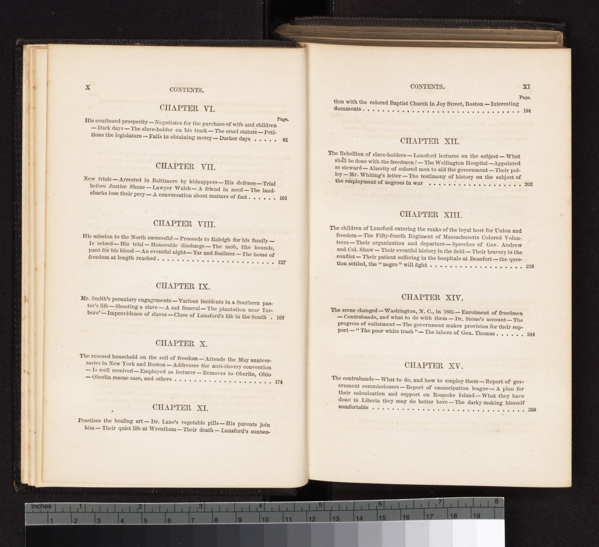 most revolting features, but of what it is to be a slave, with a sensitive nature, under the most favorable circumstances. The years of servitude were passed at Raleigh, the capital of North Carolina. He was himself thirty-two years a slave and spent eighteen years of his life in the purchase of himself and family, consisting of a wife and seven children. He acted acceptably for three years, as messenger and waiter under Governors Dudley and Morehead, and thus made the acquaintance of many members of the Legislature. He is finally compelled to flee with his family from the State, and reside in a climate unsuited to their health. The sketches of South-ern life will be recognized as true by those who have resided in the Southern States. The incidents of kidnapping now belong to the documentary history of the country. Several chapters are devoted to the changed position into which the colored population are brought by the civil war. One or two chapters give some incidents in the organization and equipment of the Fifty-fourth Regiment of Massachusetts Volunteers, and their eventful history at the seat of war. It is hoped this account, compiled mostly from the press, will be acceptable to the friends of the colored soldier. What the contrabands are doing and what they can do, as soldiers and