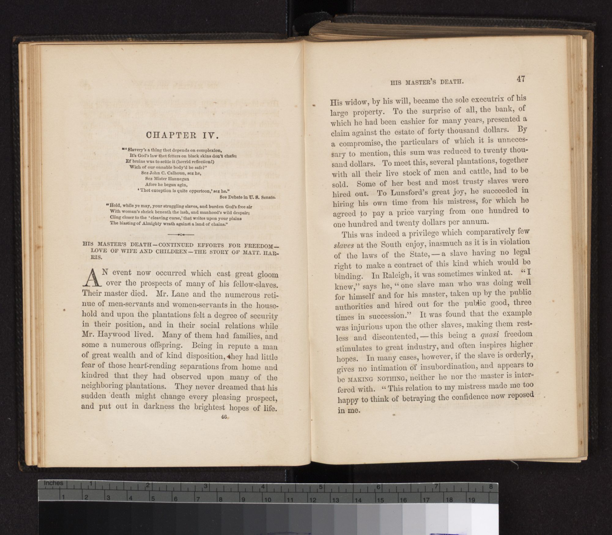 His master's death— Continued efforts for freedom—Love of wife and children—The story of Matt. Harris 46