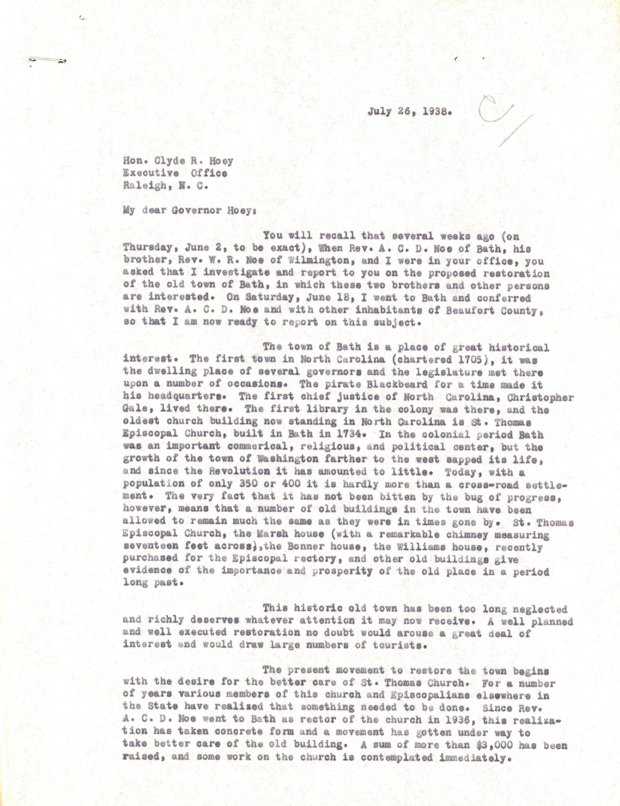 The 1955 General Assembly authorized the creation of a Commission to celebrate the 250th anniversary of the Incorporation of the Town of Bath. This Commission will develop plans for State participation in an appropriate celebration of this historic event.