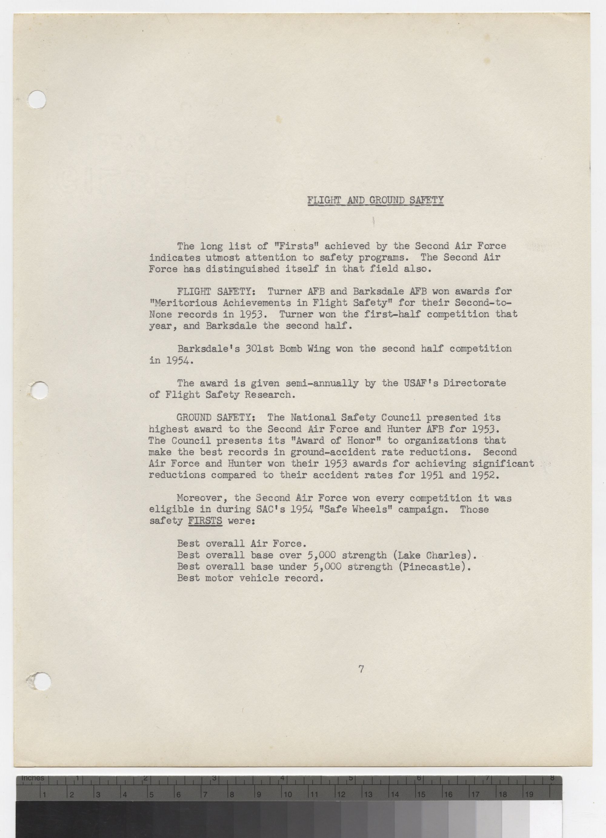 Moreover, the Second Air Force won every competition it was eligible in during SAC's 1954 "Safe Wheels" campaign. Those safety FIRSTS were: