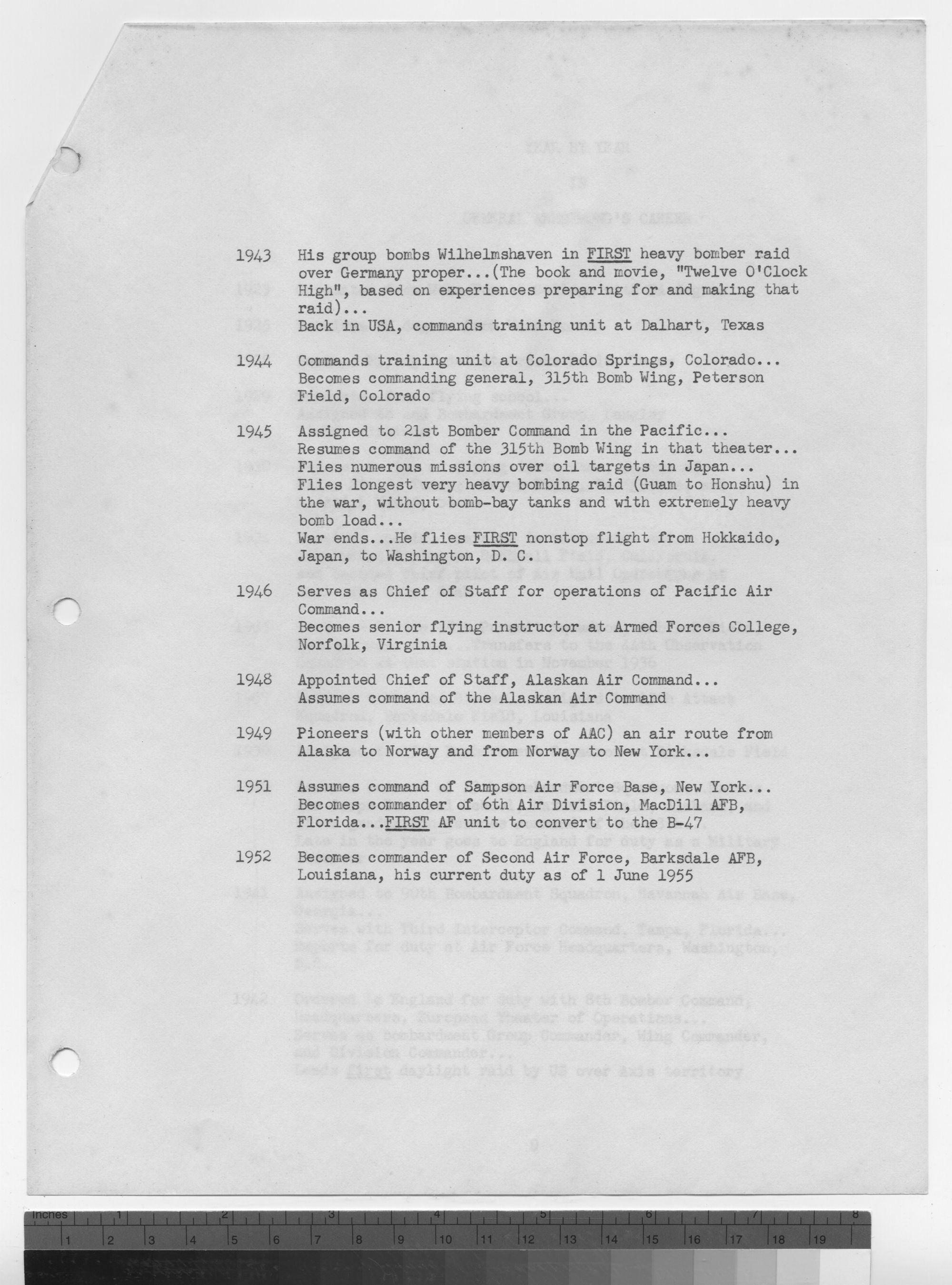 1948 Appointed Chief of Staff, Alaskan Air Command. Assumes command of the Alaskan Air Command