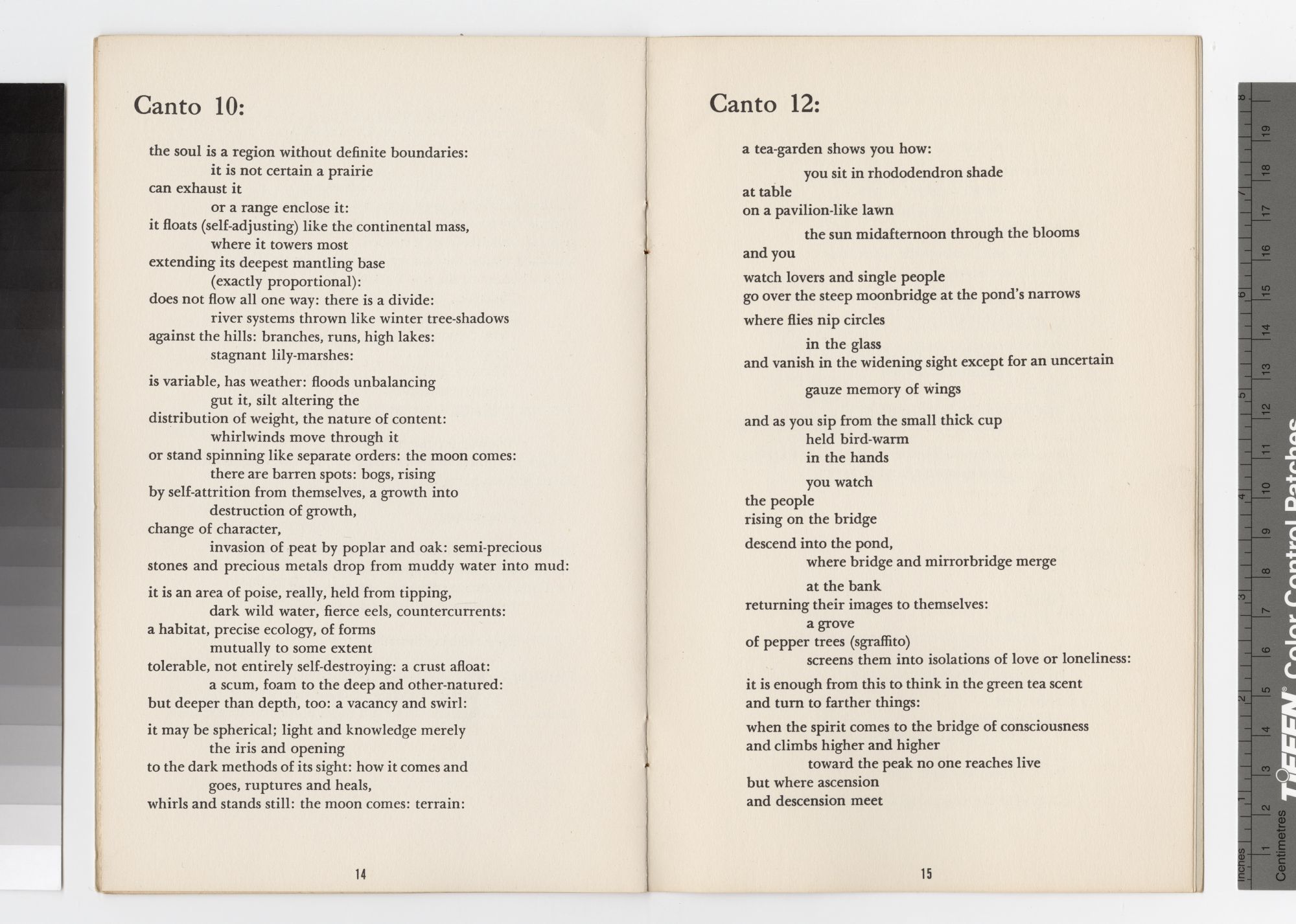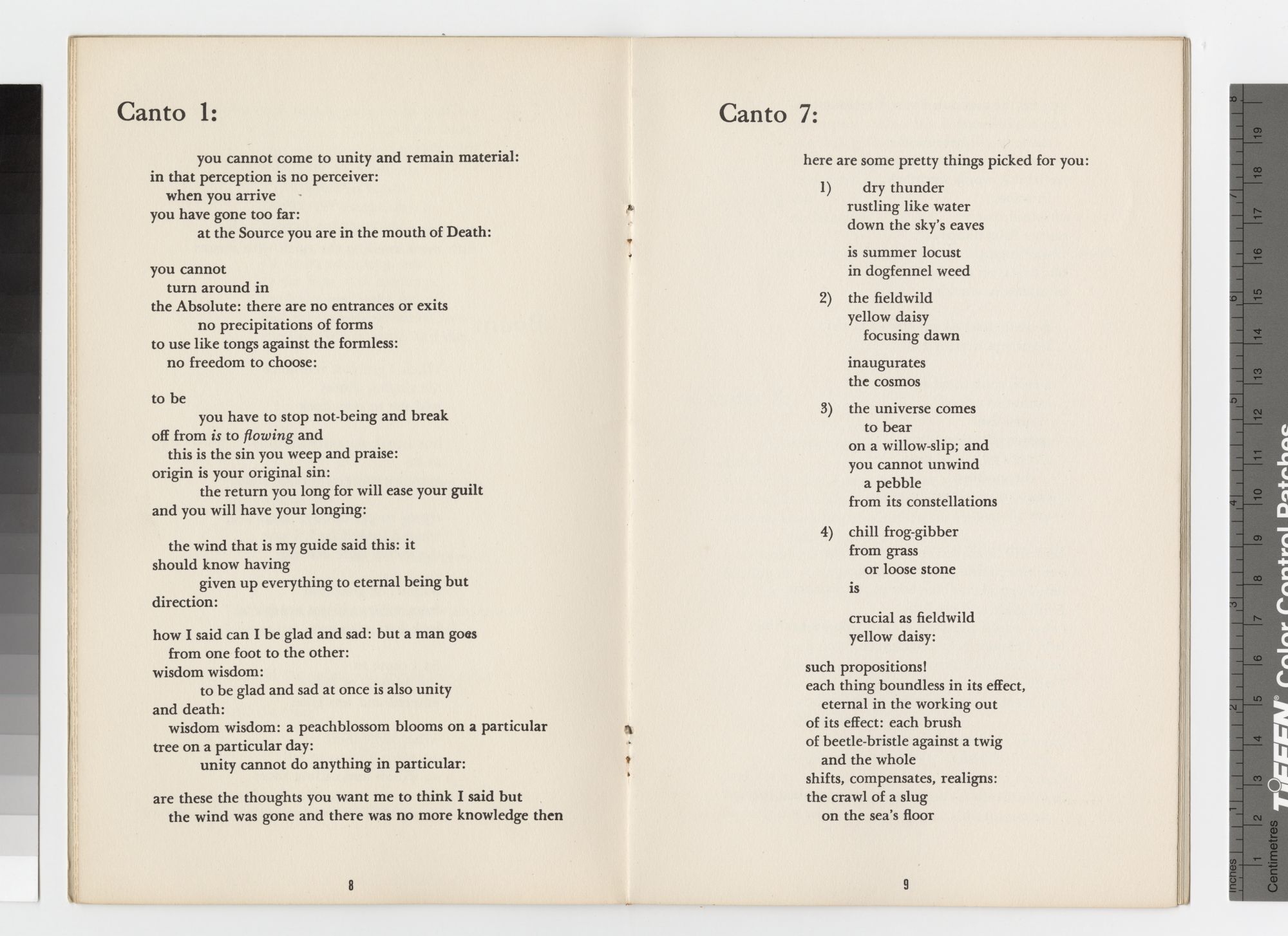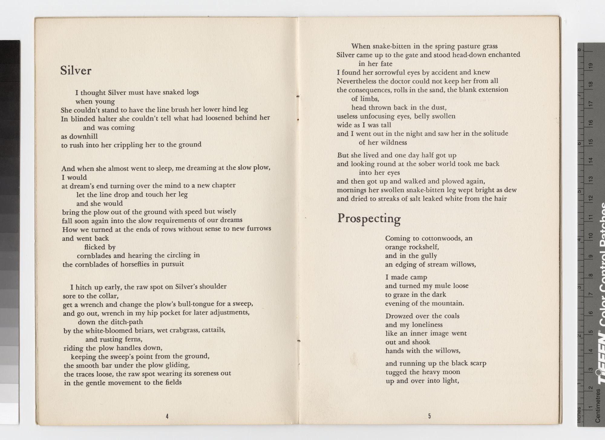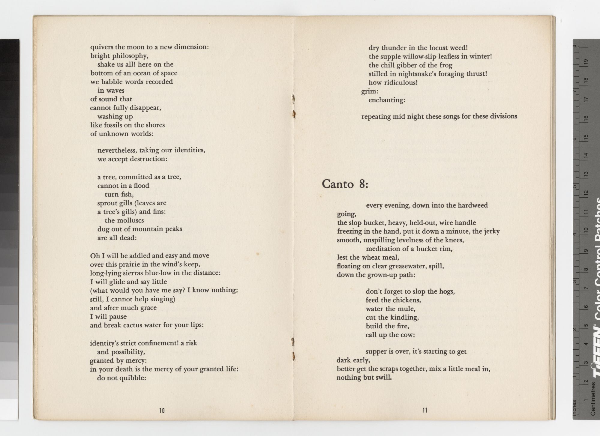 Ten poems, by A.R. Ammons. Reprinted from The Hudson review, vol. XXIII, no. 3, Autumn, 1960. 17 numbered pages. Autographed by A.R. Ammons on front fly-leaf.
