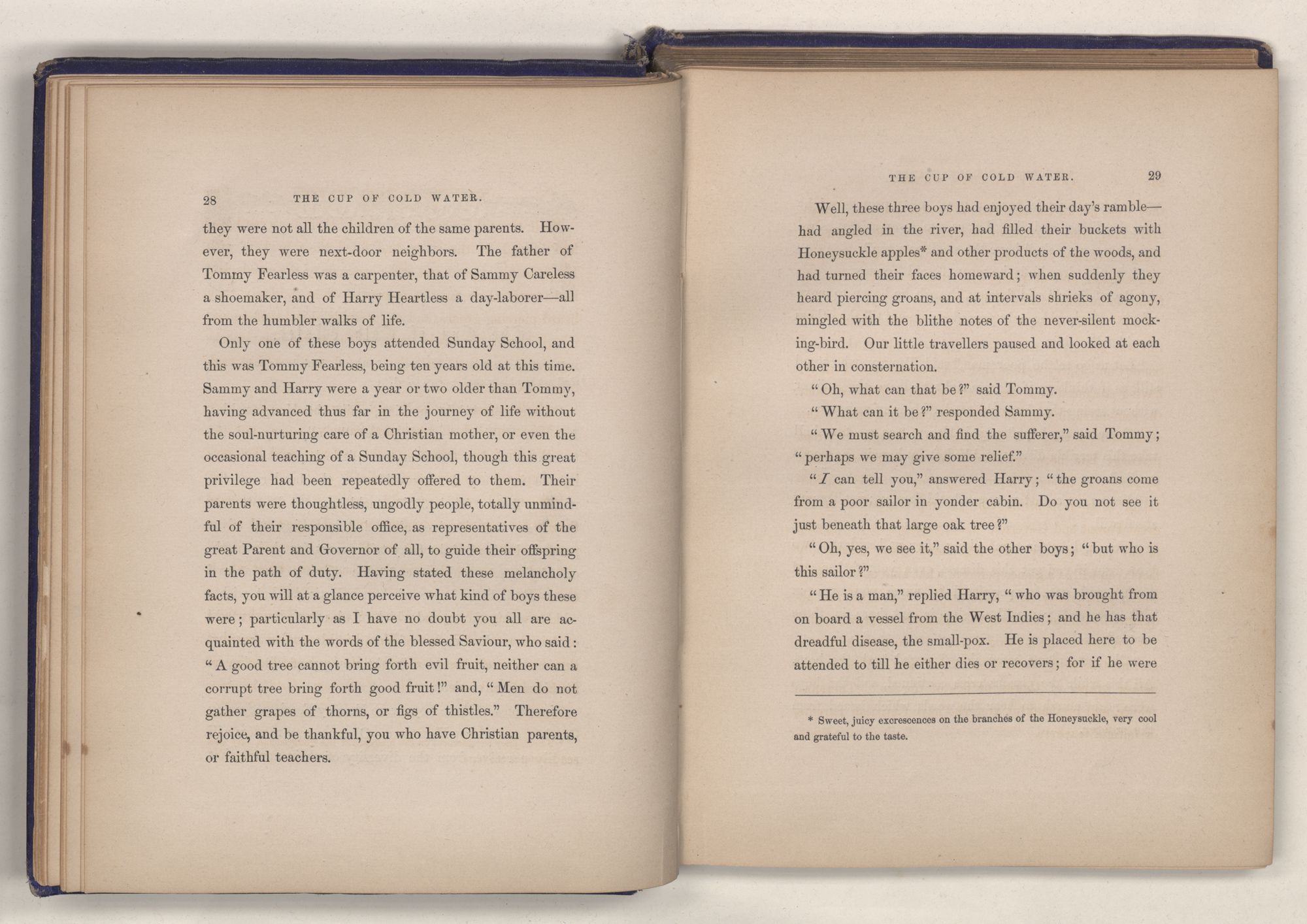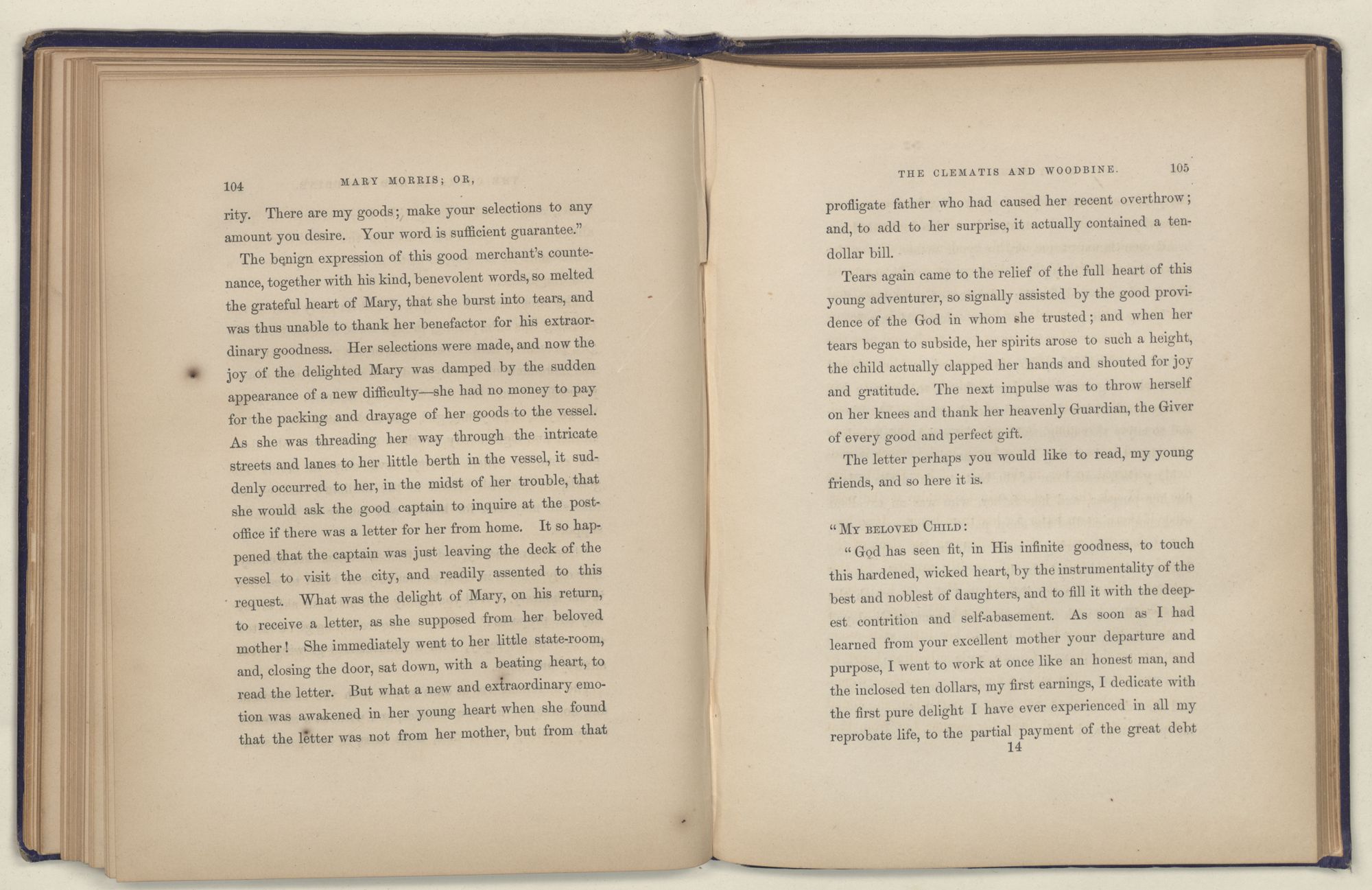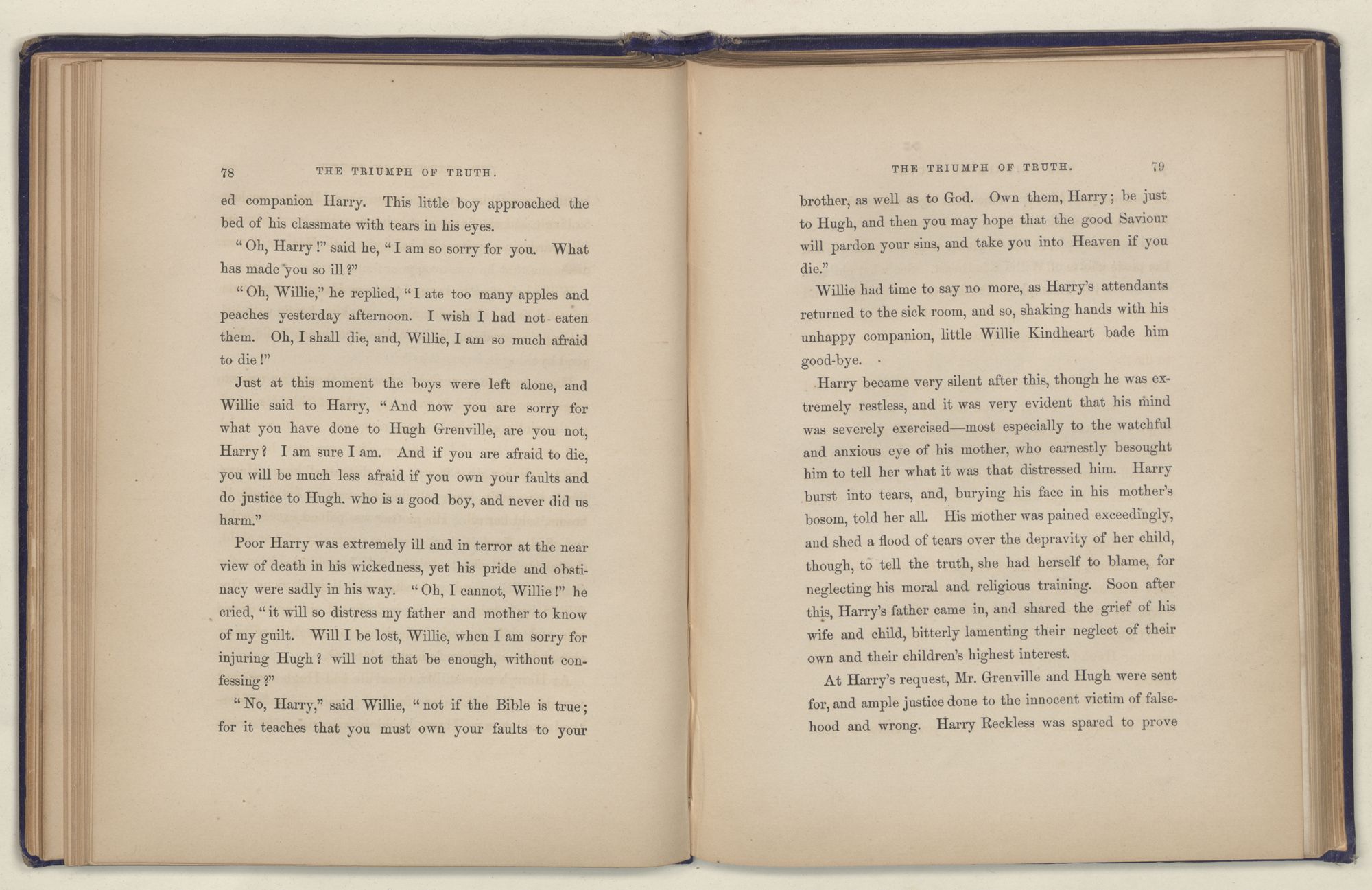 “My little Ellen, ma'am, was a child of wisdom beyond her years, and it was her Bible that made her so. That is the only comfort left me, now that she is gone—that I kept her reading her Bible, while she was with me. It was there she was prepared to die, and made fit for the company of angels.”