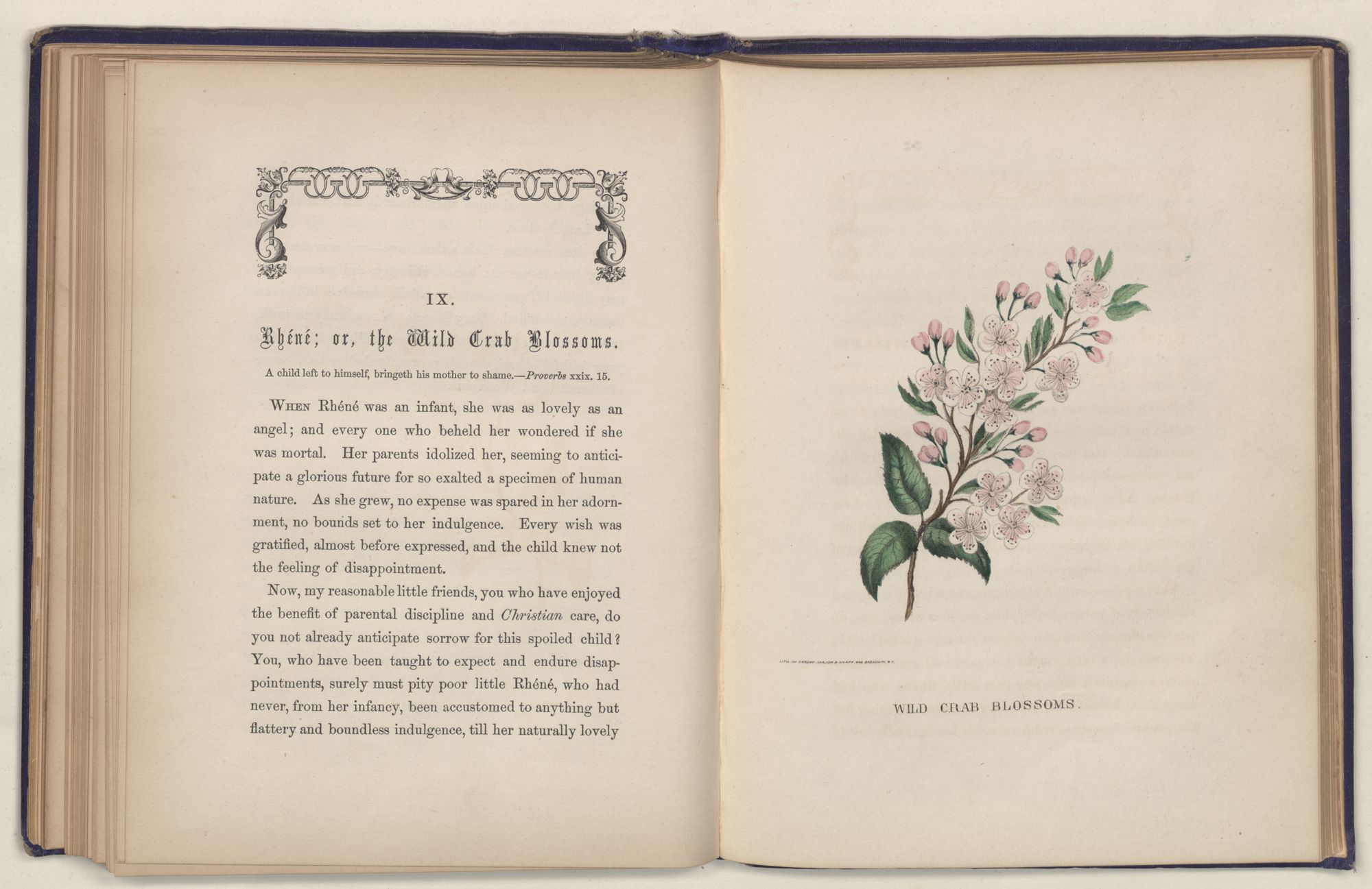 “Is it not strange, aunt,” said Rhéné, “that a blossom so beautiful, and so sweet, should produce so sour and unpleasant a fruit as the Crab? I should think, if I did not know the Crab, that the fruit would be beautiful as well as delicious.”