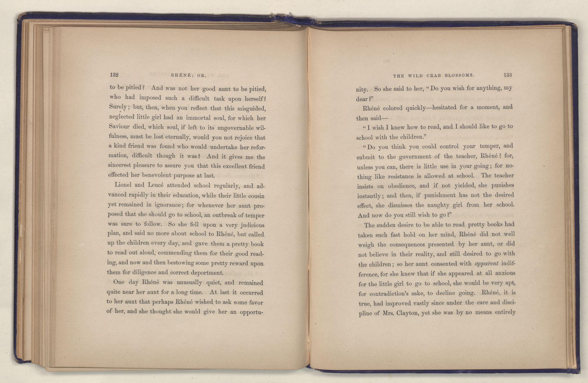 “Do you think you could control your temper, and submit to the government of the teacher, Rhéné? for, unless you can, there is little use in your going; for nothing like resistance is allowed at school. The teacher insists on obedience, and if not yielded, she punishes instantly; and then, if punishment has not the desired effect, she dismisses the naughty girl from her school. And now do you still wish to go?”