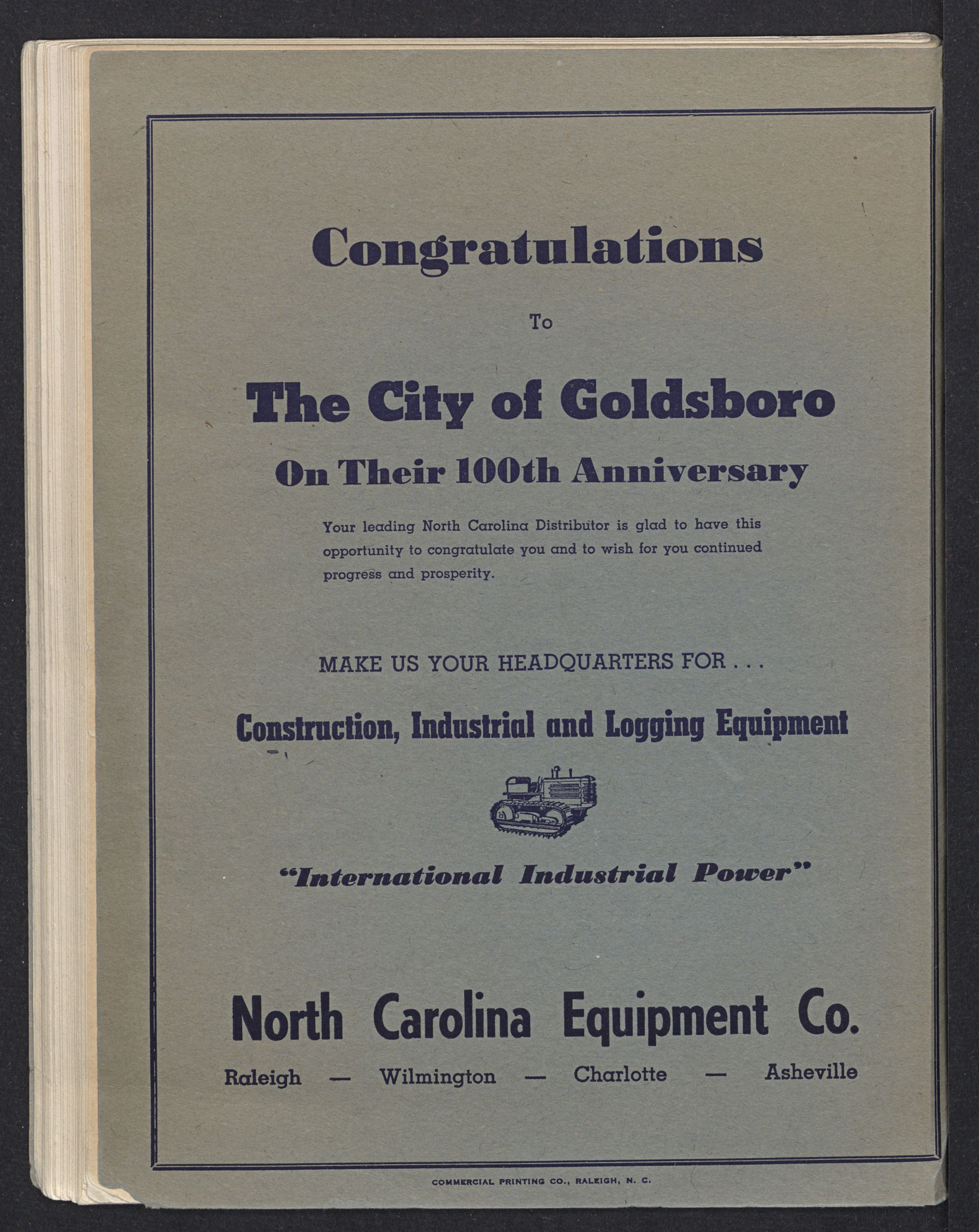 Your leading North Carolina Distributor is glad to have this opportunity to congratulate you and to wish for you continued progress and prosperity.