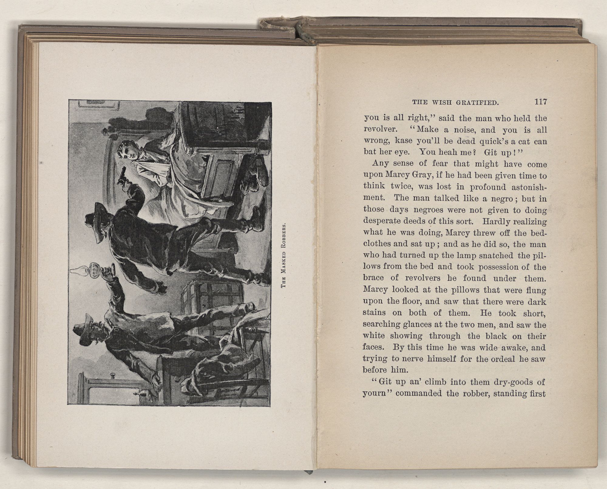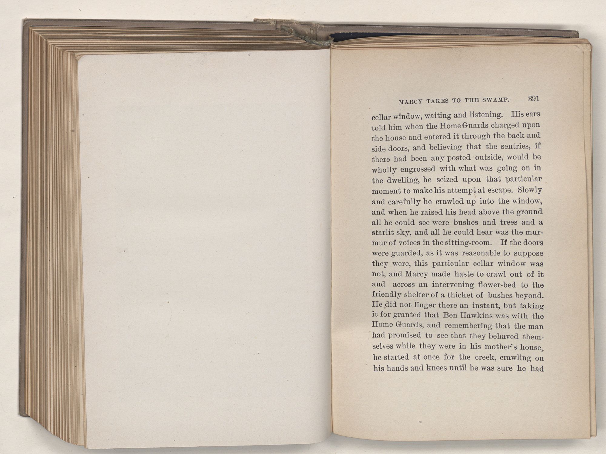 While Marcy was gone to take his brother out to the fleet, a very strange and startling incident happened on Mrs. Gray's plantation. Sailor Jack had predicted that the morning was coming when the negroes would not hear the horn blown to call them to their work, for the very good reason that there would be no overseer on the plantation to blow it, and his prediction had been verified. One dark night, just after Marcy and Jack set out on their perilous voyage, a band of masked men came to the plantation, took Hanson, the overseer, out of his house and carried him away. Where he was now none could tell for certain; but Marcy had heard from Aleck Webster that he had been “turned loose with orders never to show his face in the settlement again.” Perhaps he had gone for good; but the fear that he might some day come back to