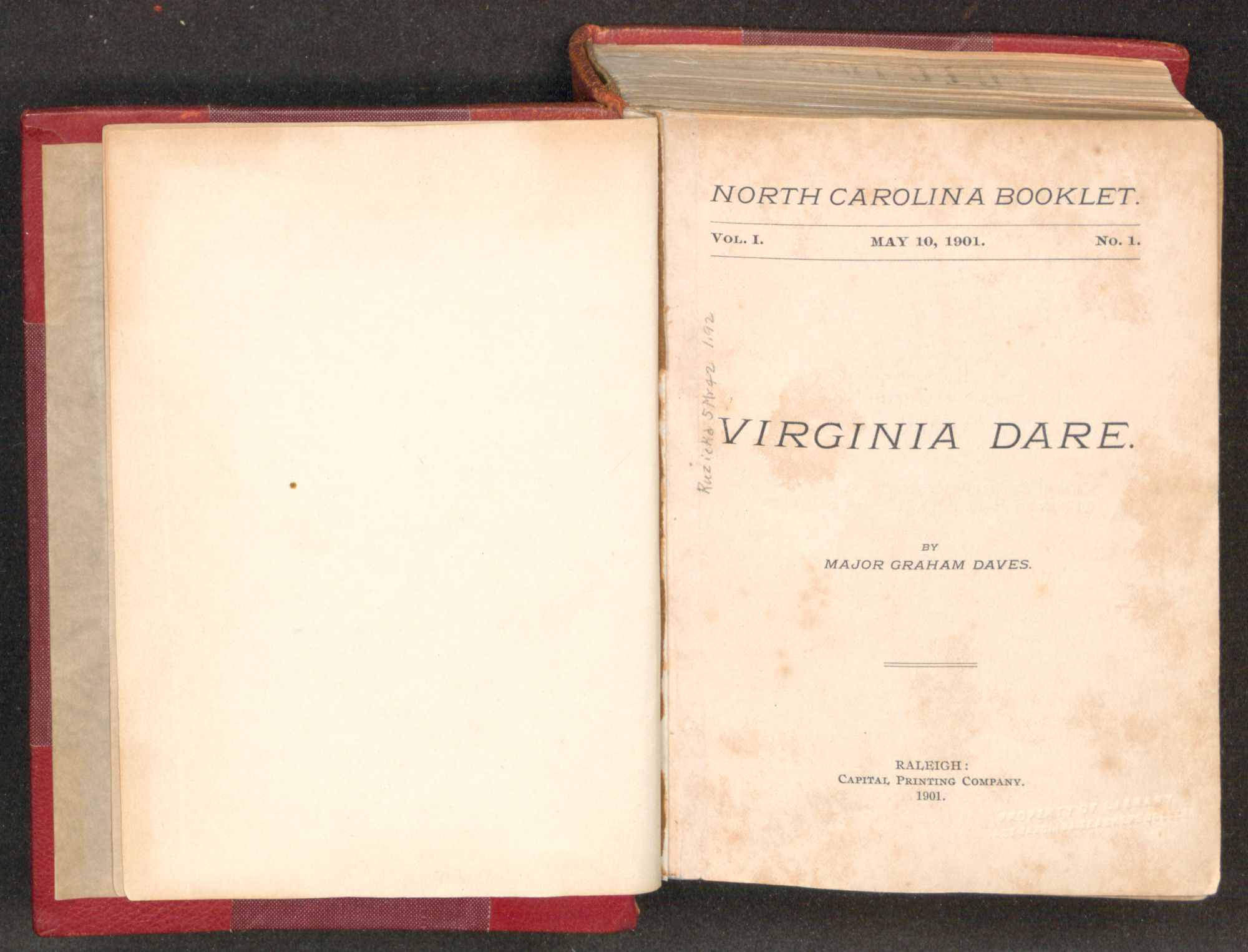 NORTH CAROLINA BOOKLET. VOL. I. MAY 10, 1901. NO. 1.