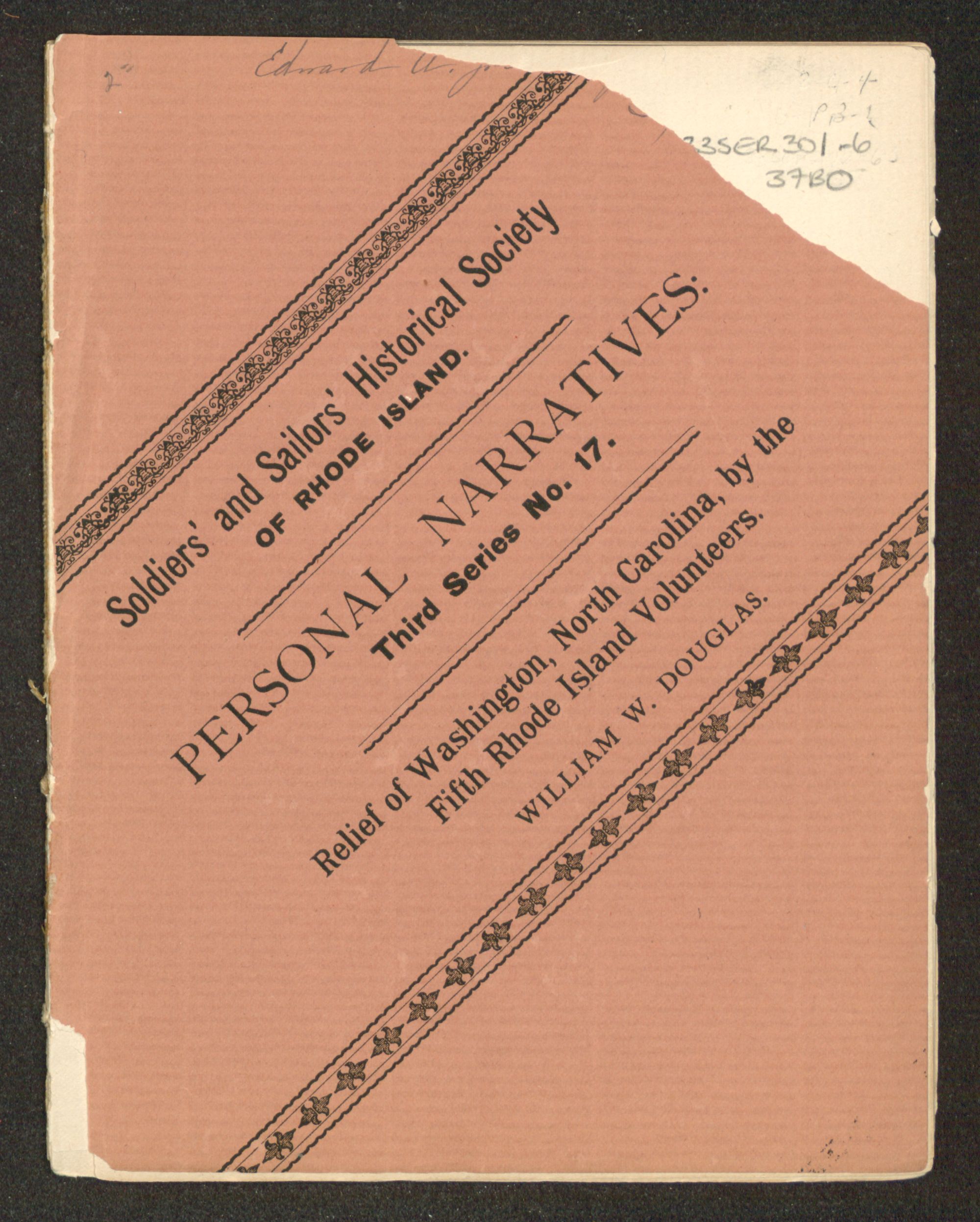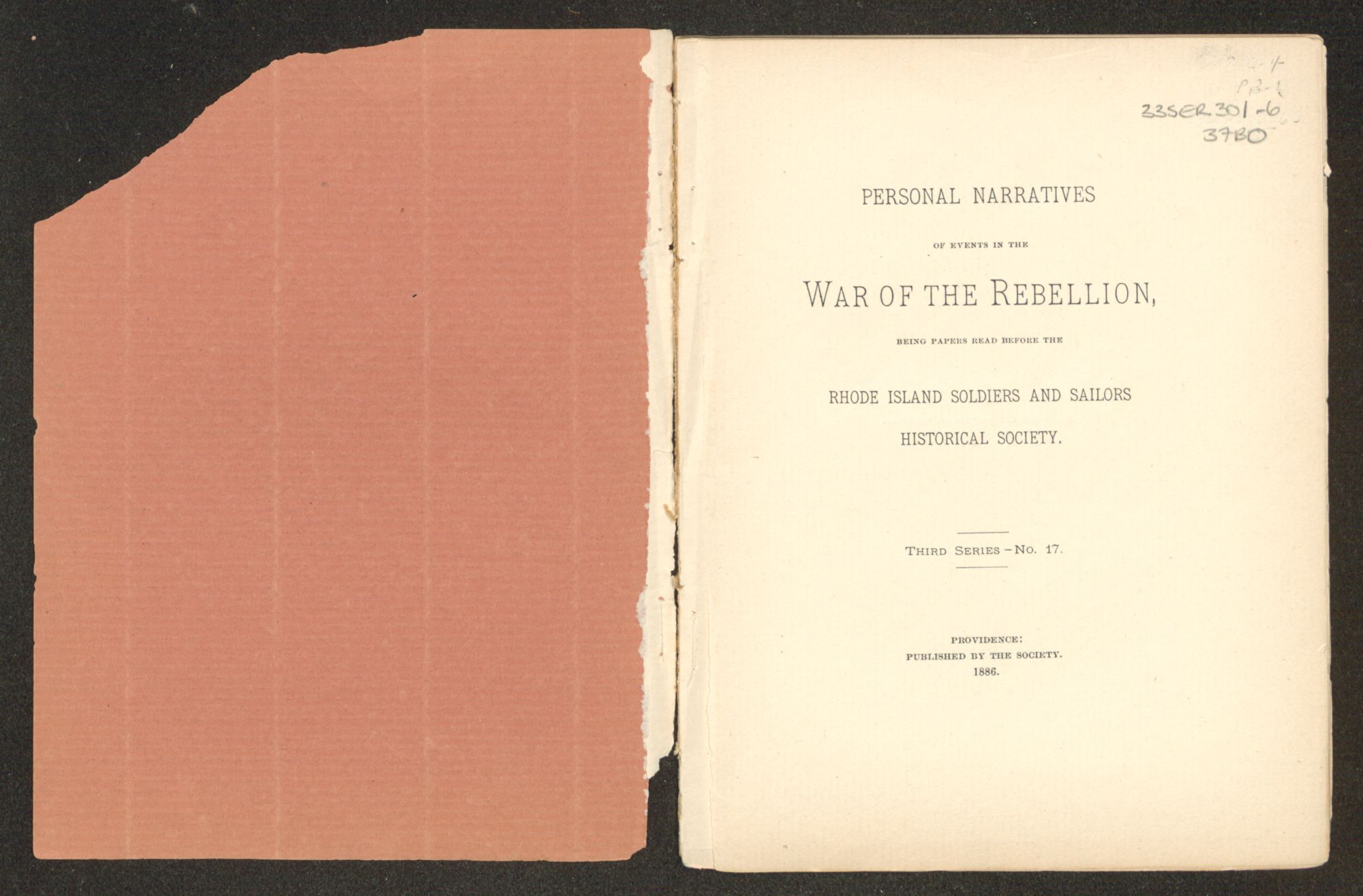 PERSONAL NARRATIVES OF EVENTS IN THE War of the Rebellion, BEING PAPERS READ BEFORE THE RHODE ISLAND SOLDIERS AND SAILORS HISTORICAL SOCIETY.