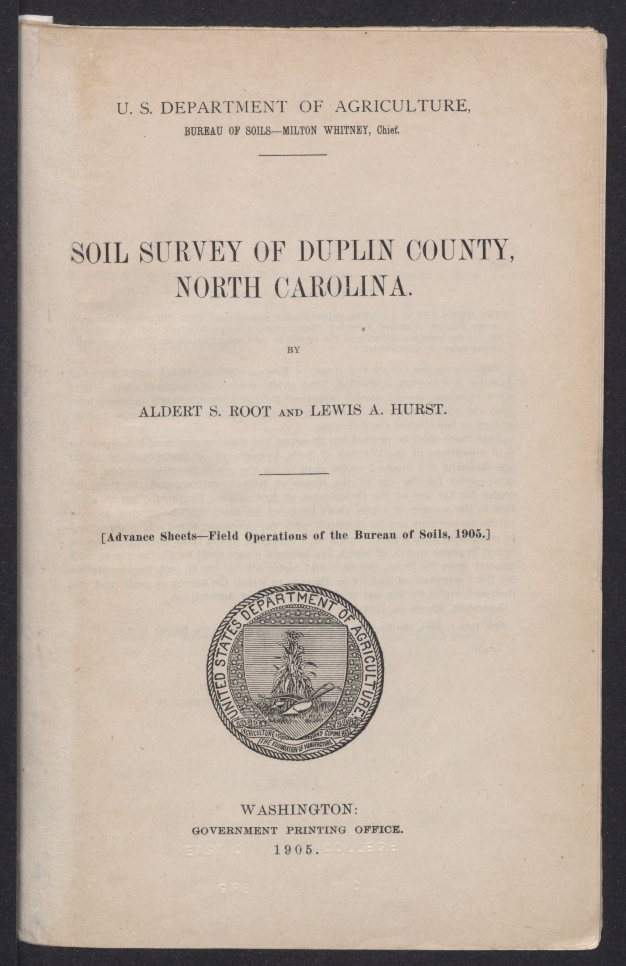 | Soil Survey ofDUPLIN COUNTY, NORTH CAROLINA. By ALDERT S. ROOT and LEWIS A. HURST | 5 |