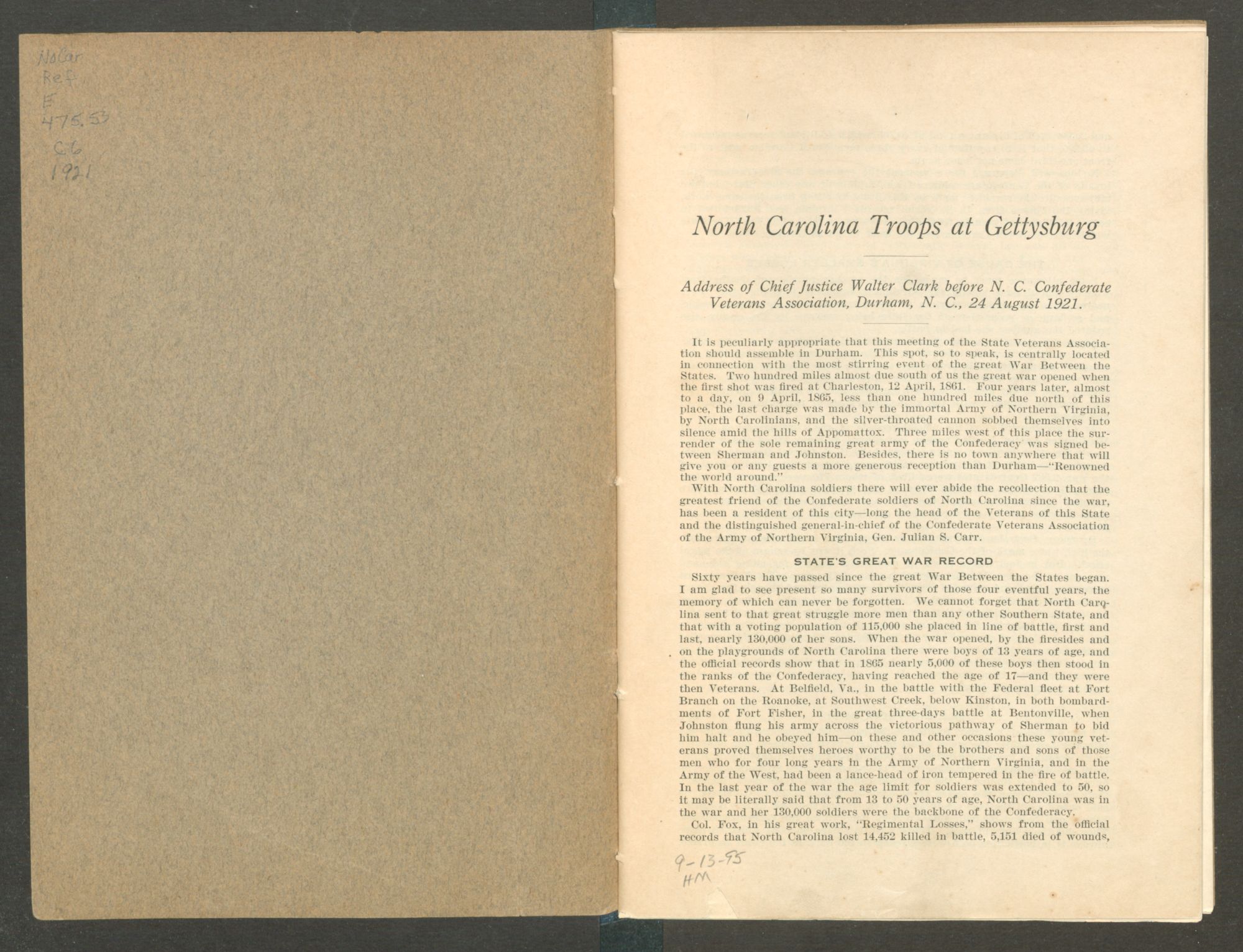 Address of Chief Justice Walter Clark before N. C. Confederate Veterans Association, Durham, N. C., 24 August 1921.