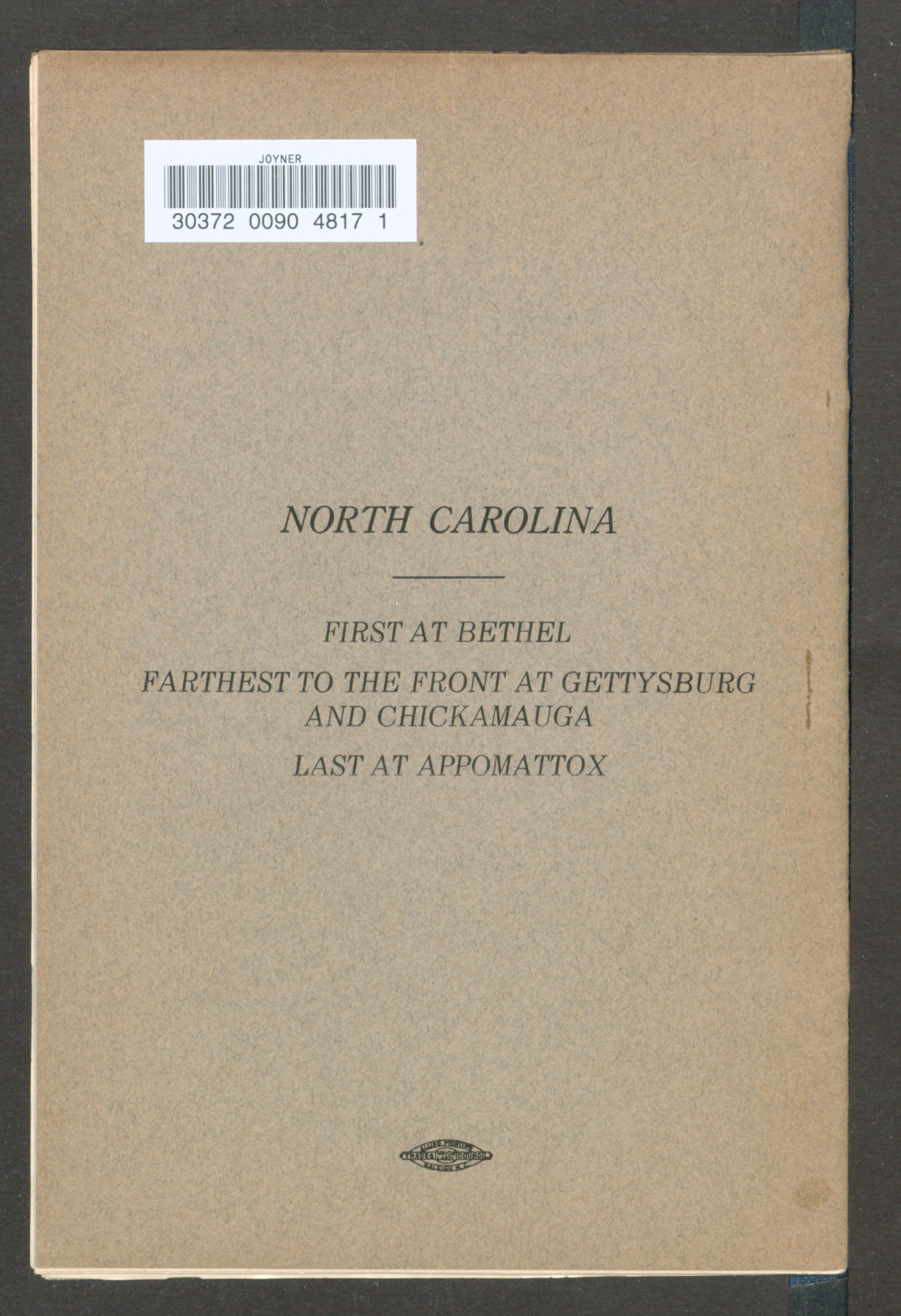 These things are from the official records and are not given as any reflection upon Virginia, whose soldiers, as all the world knows, did their full and complete duty. But it is proper to recall the facts here, in your hearing, that your children and your children's children may remember that in that supreme test of war and battle North Carolina and her soldiers did their full duty and can compare with the noblest sacrifices of patriotism recorded of any people.