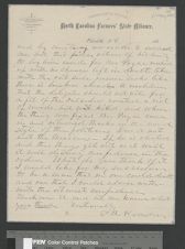 Correspondence and Receipts: including National Farmers' Alliance and Co-operative Union of America Communication, Progressive Farmer Circular [article] Proclamation. Call for an Important Meeting, and signatures of S. B. Alexander [3], L. L. Polk, Herbert Bemerton Battle, William Henry Whitehead [2], William Alexander Graham [2], Charles William Macune, and George W. Sanderlin (February-July, 1889).