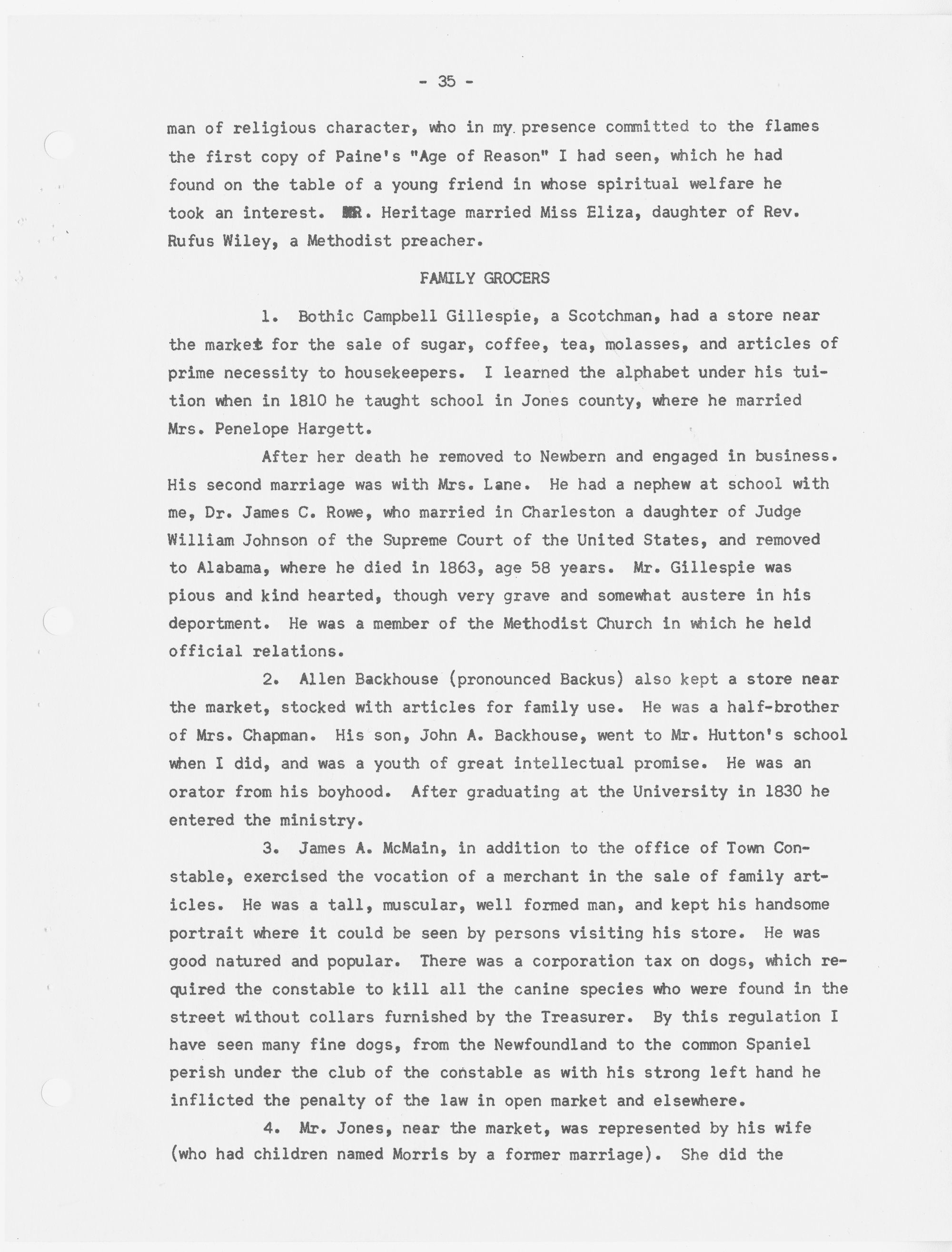 North Carolina, and was occupied on a farm until my seventeenth year, when, in 1822, I went as a clerk to reside in Newborn. by "Recollections" that commenced (not on paper) and they will now be arranged, for the most part, under separate heads, for more convenient reference to trades and professions.