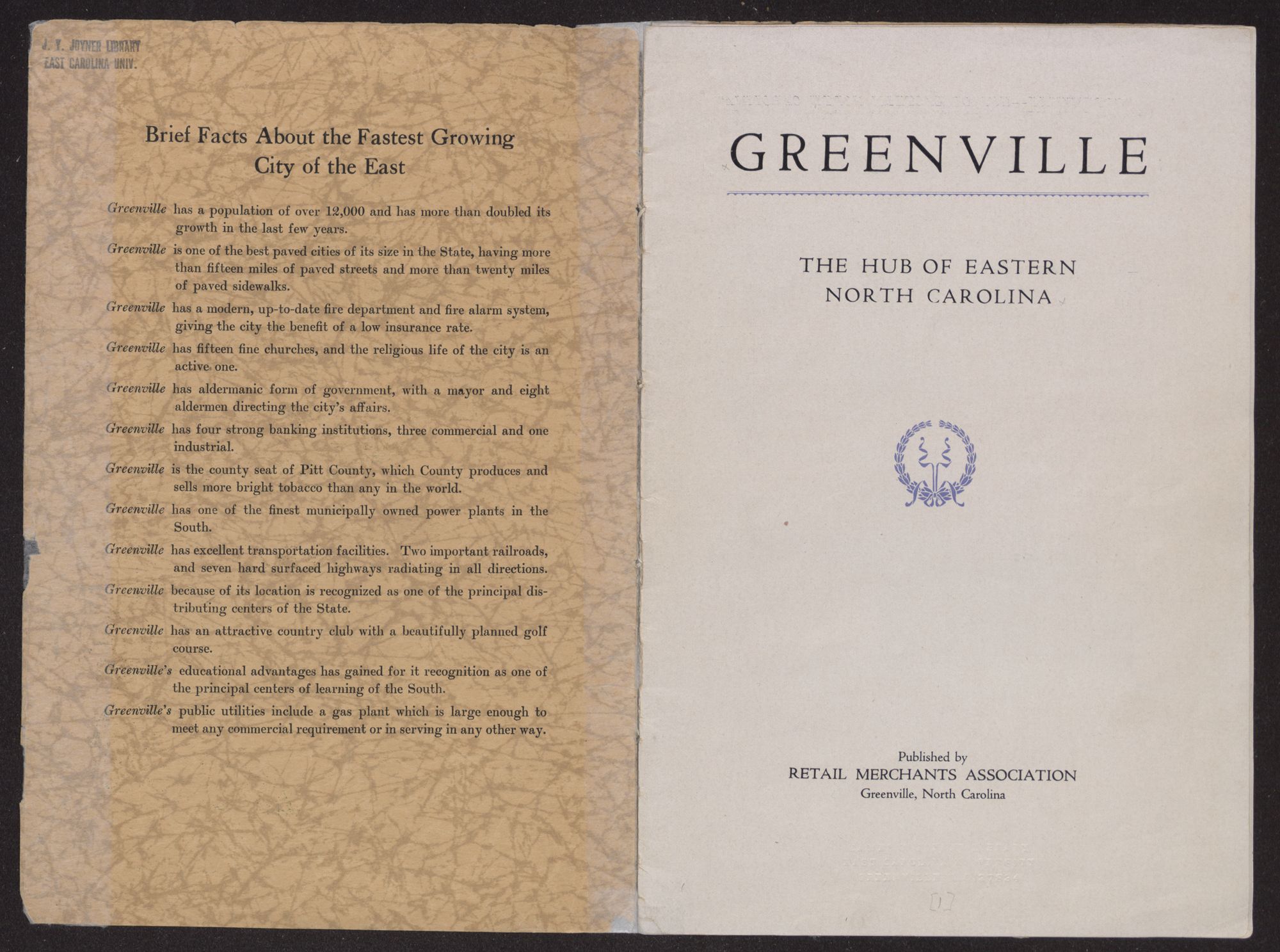 GREENVILLETHE HUB OF EASTERN NORTH CAROLINAdecorationPublished by RETAIL MERCHANTS ASSOCIATIONGreenville, North Carolina