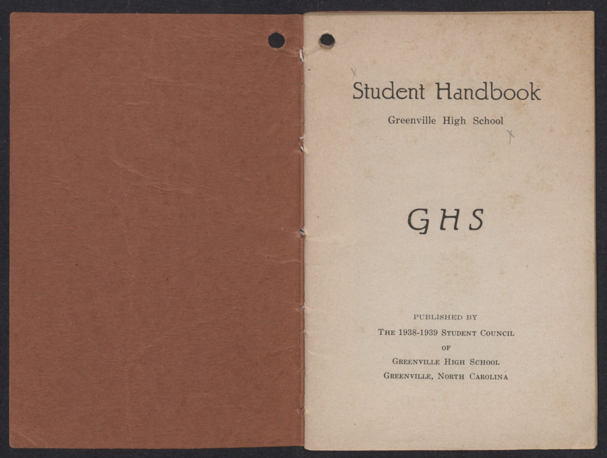 Student HandbookGreenville High SchoolGHSPUBLISHED BY THE 1938-1939 STUDENT COUNCIL OF GREENVILLE HIGH SCHOOLGREENVILLE, NORTH CAROLINA