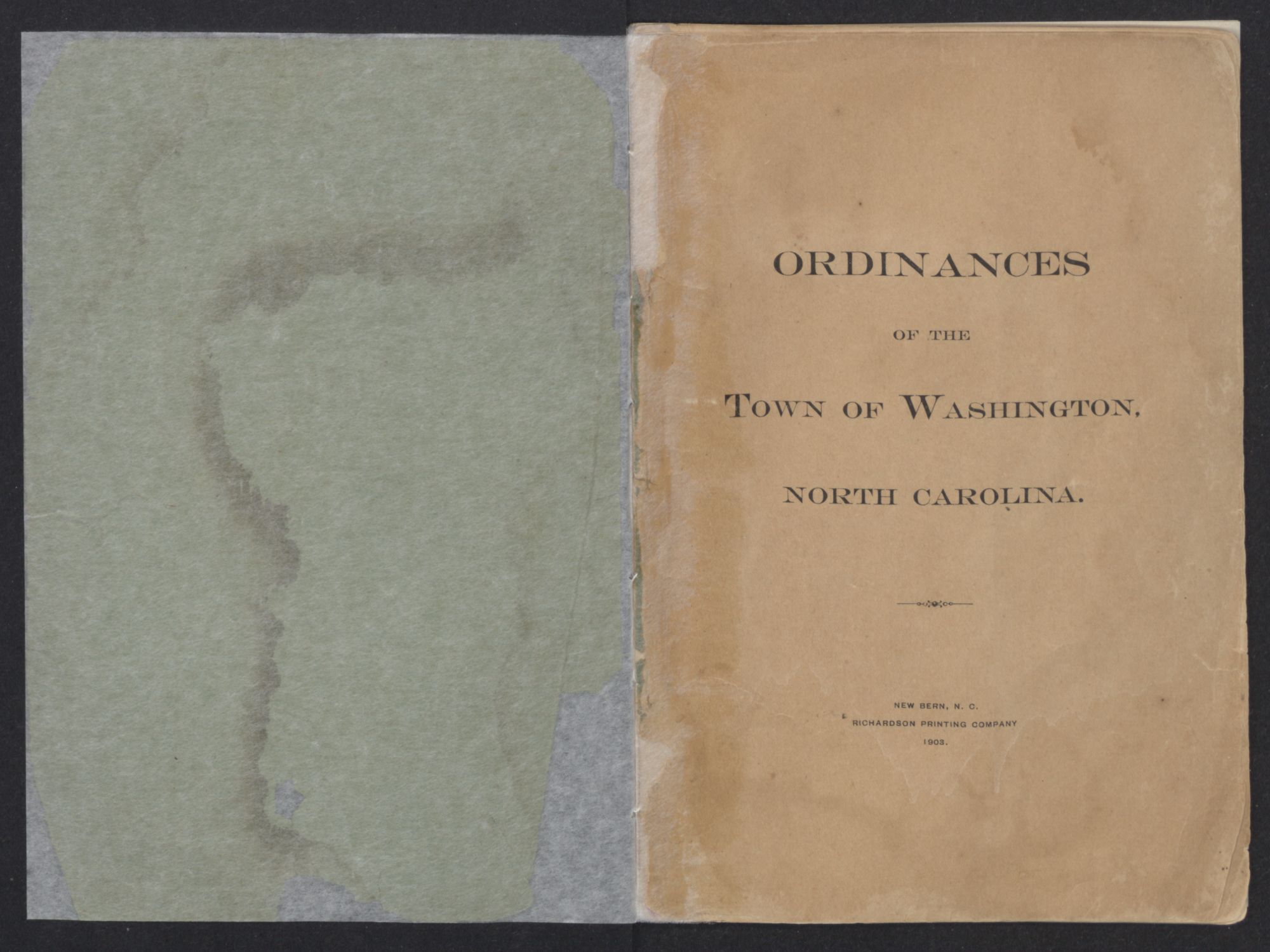 ORDINANCES OF THE TOWN OF WASHINGTON, NORTH CAROLINA.NEW BERN, N. C.RICHARDSON PRINTING COMPANY1903.
