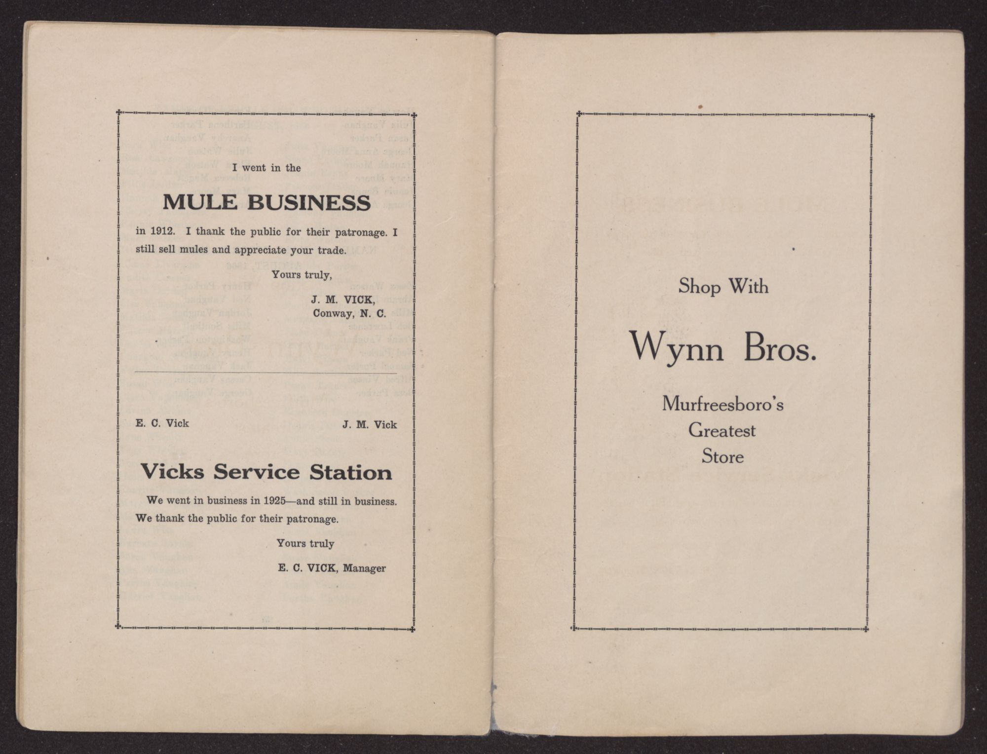 We went in business in 1925—and still in business. We thank the public for their patronage.