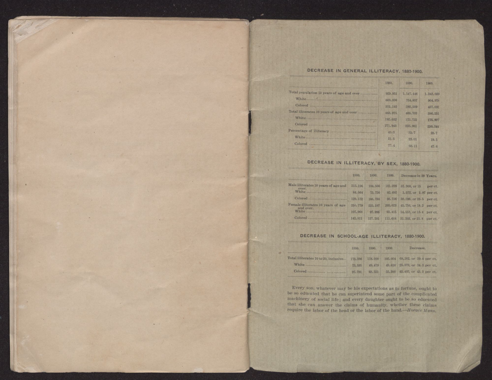 | Total illiterates 10 to 20, inclusive | 173,386 | 118,000 | 105,004 | 68,382, or 39.4 per ct. |