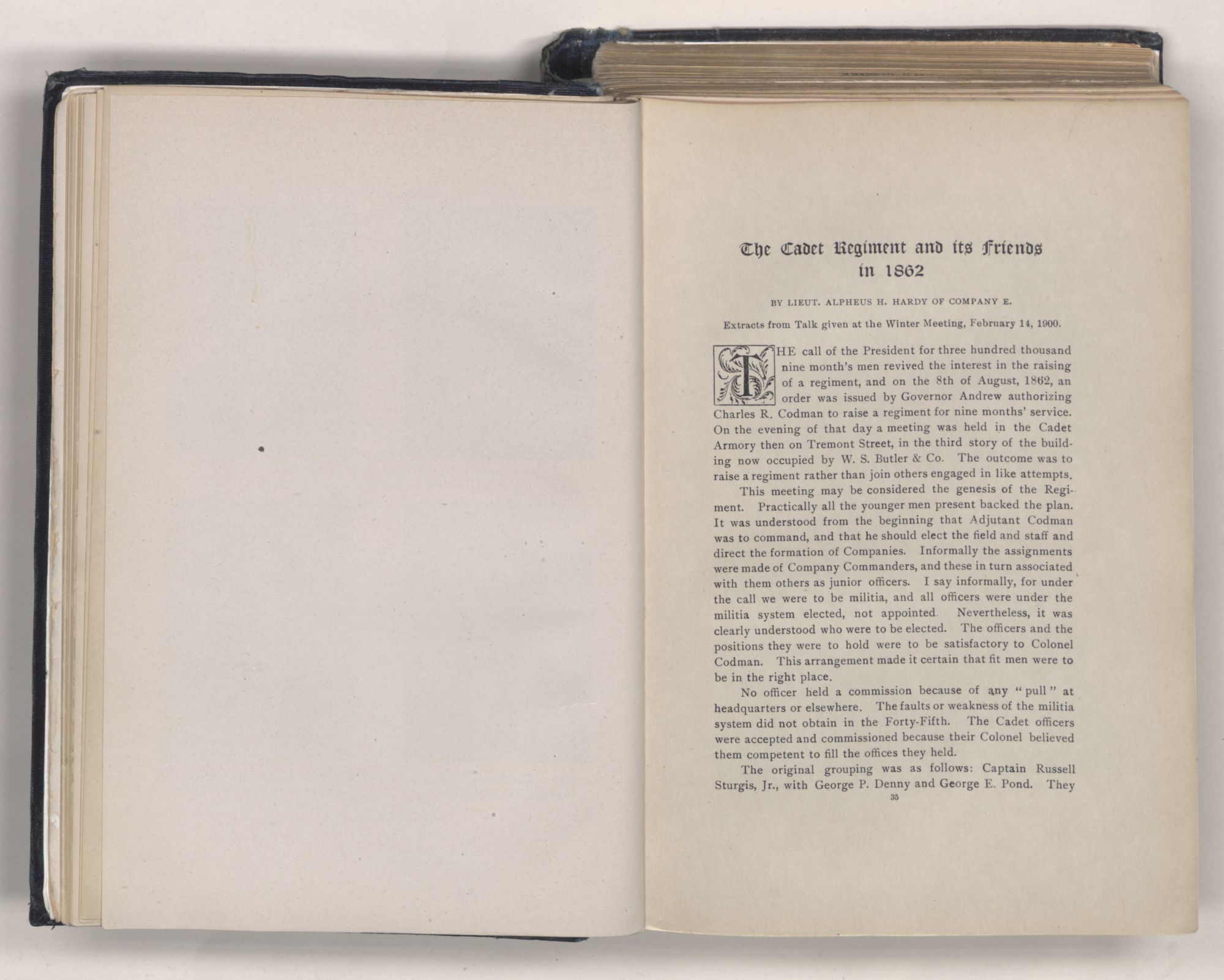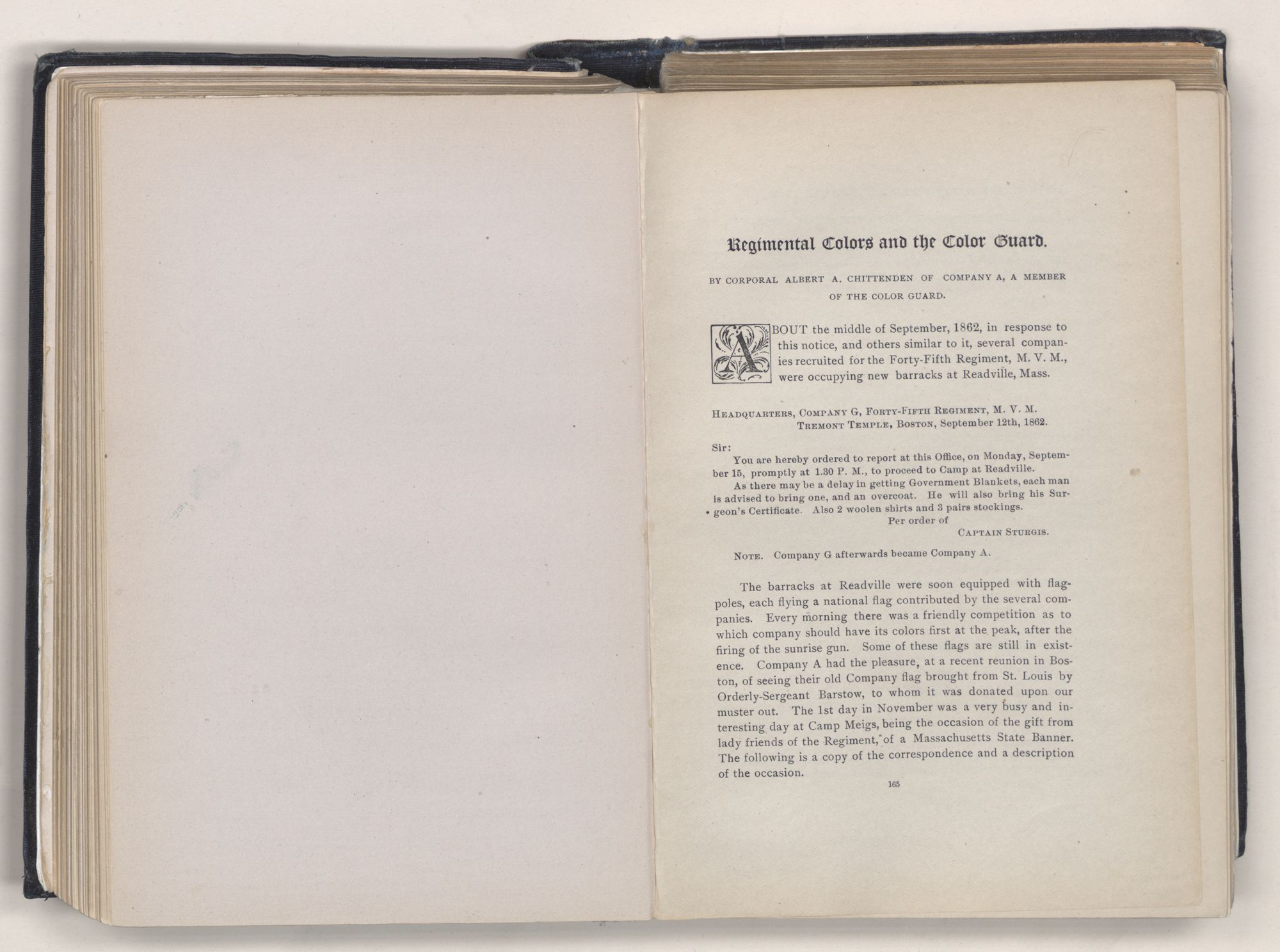 Authorization of DistoryWhereas, Comrade Albert W. Mann, having been-selected and appointed by the Executive Committee of the Association of the 45th Mass. Regiment as Historian of the Regiment, by the adoption of this preamble said appointment by the Executive Committee is confirmed, and it is