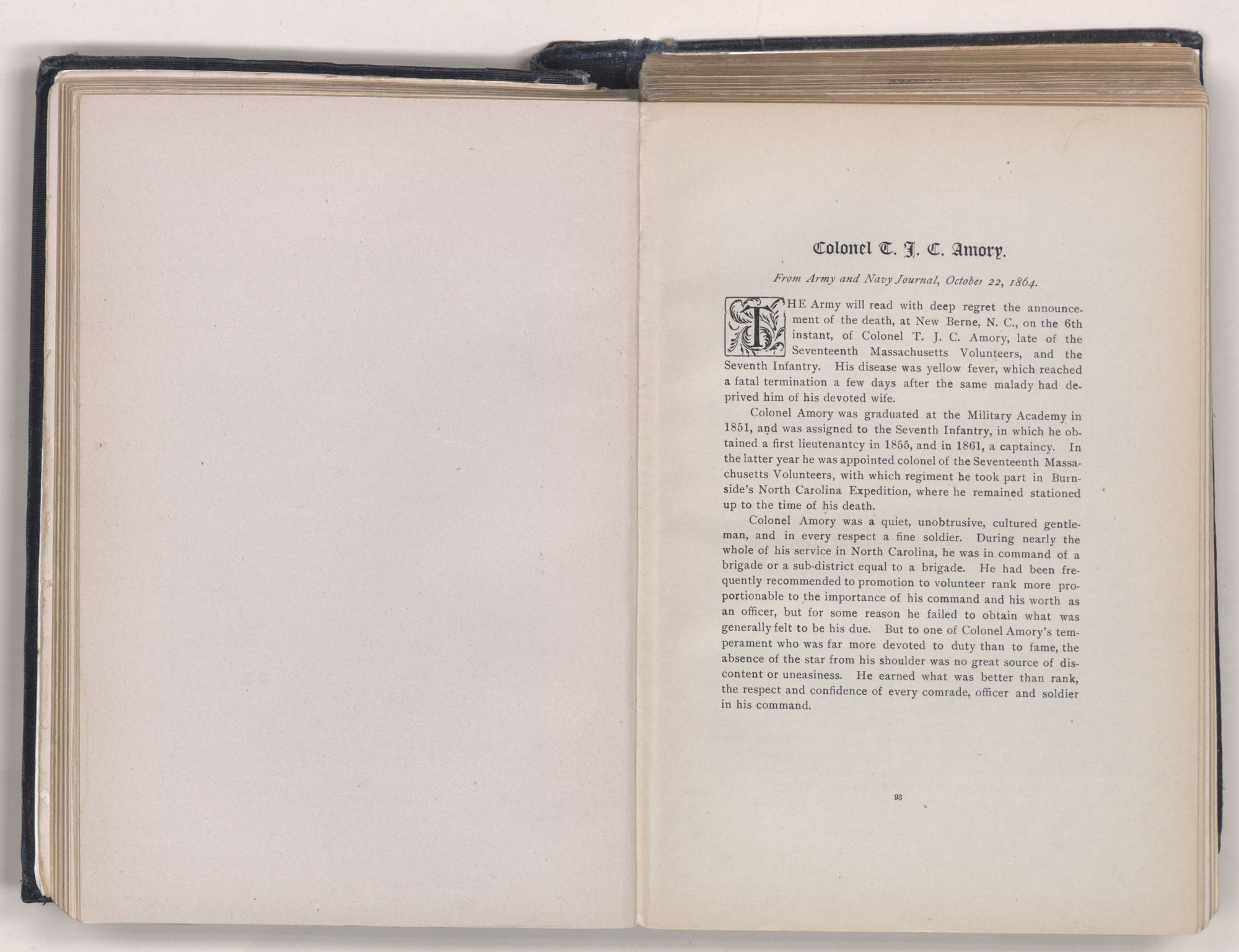 Perfect in his drill, firm in his discipline, yet free from all severity; brave in the hour of danger, yet without rashness; loved, and yet respected, he was truly a model officer. In these later years, it is the pride and boast of every member of the Forty-fifth Massachusetts, that he served for such a country, in such a cause, from such a State, in such a regiment, and under such a Commander.”