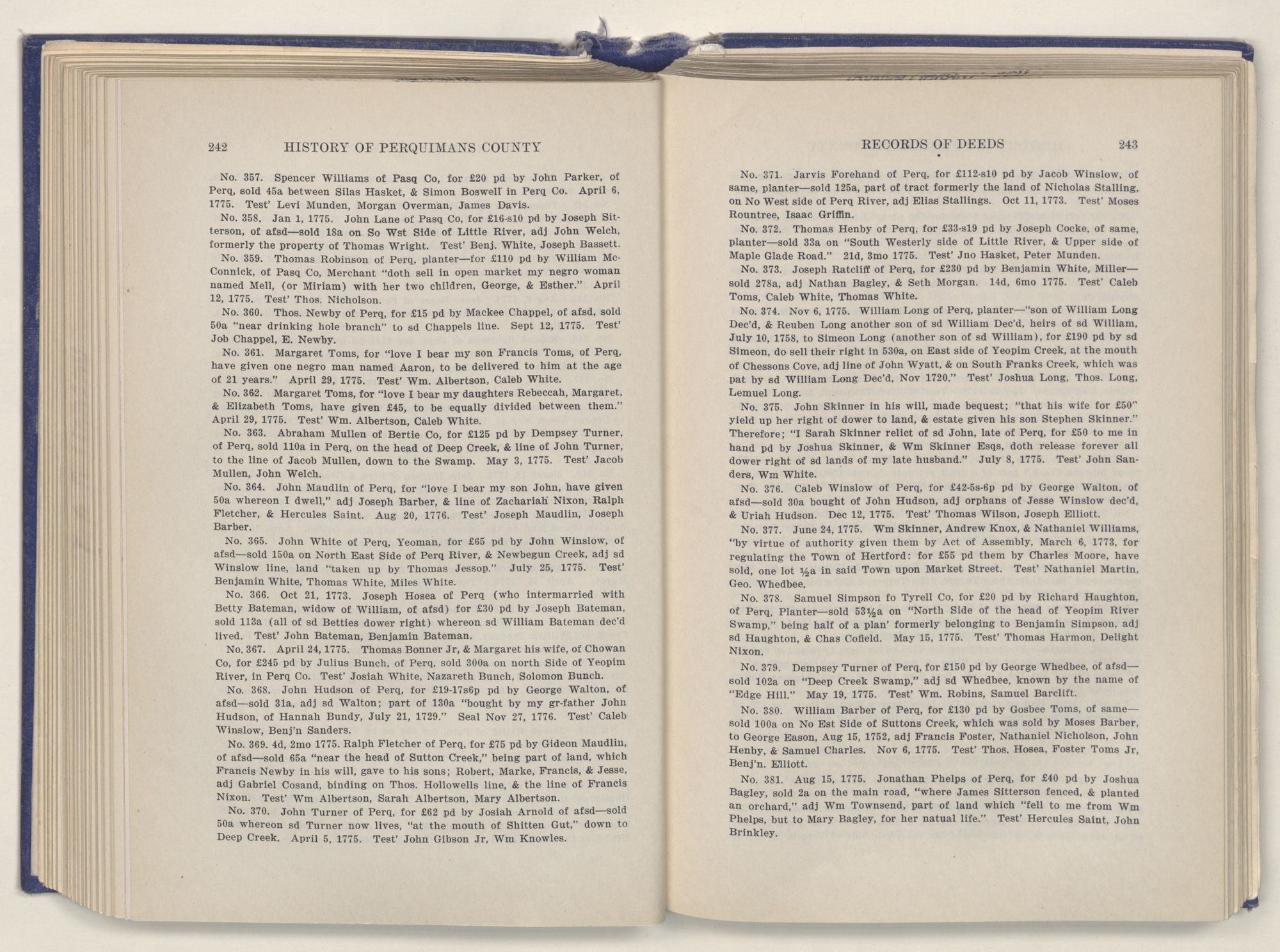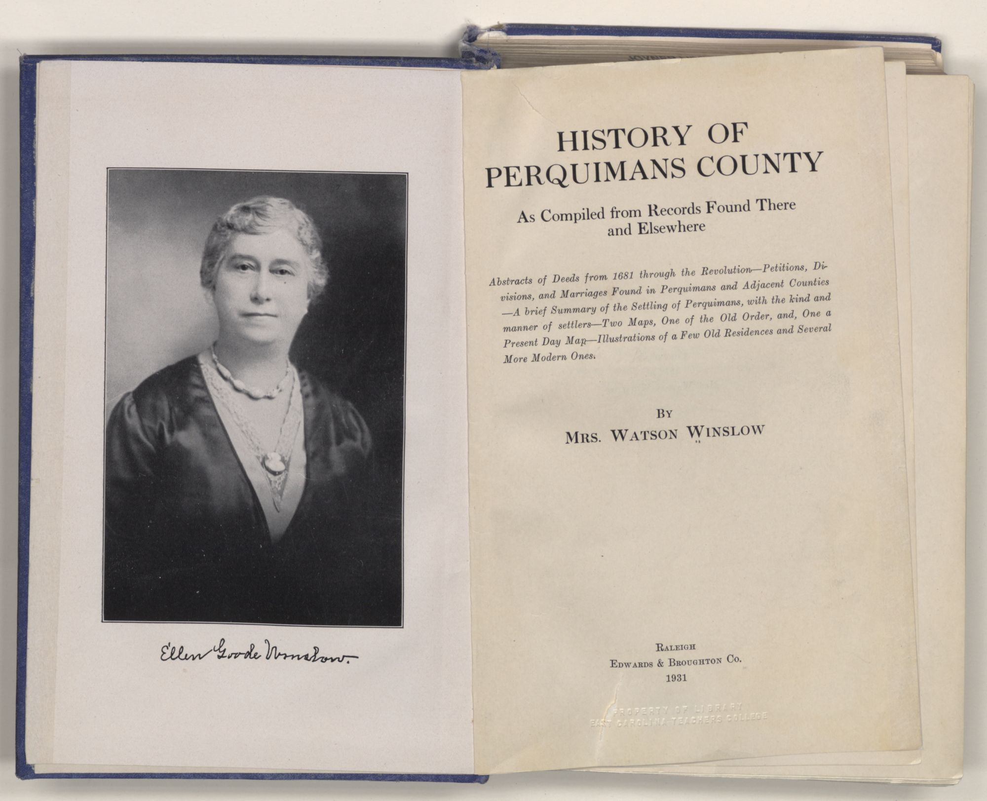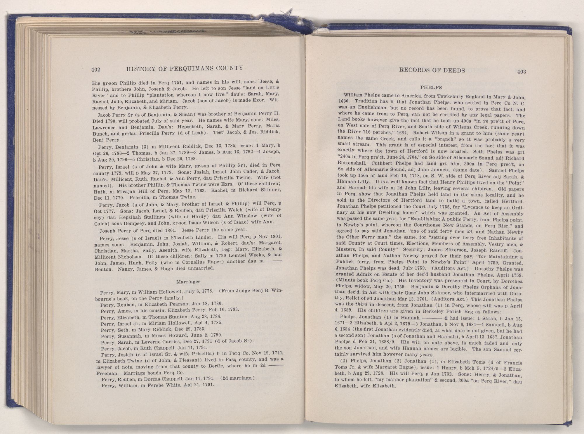 In writing a history of any county, the first consideration should be the perpetuation of valuable data found in the records, of which there can be no doubt, that Perquimans County possesses one of the richest fields of investigation in the State of North Carolina.