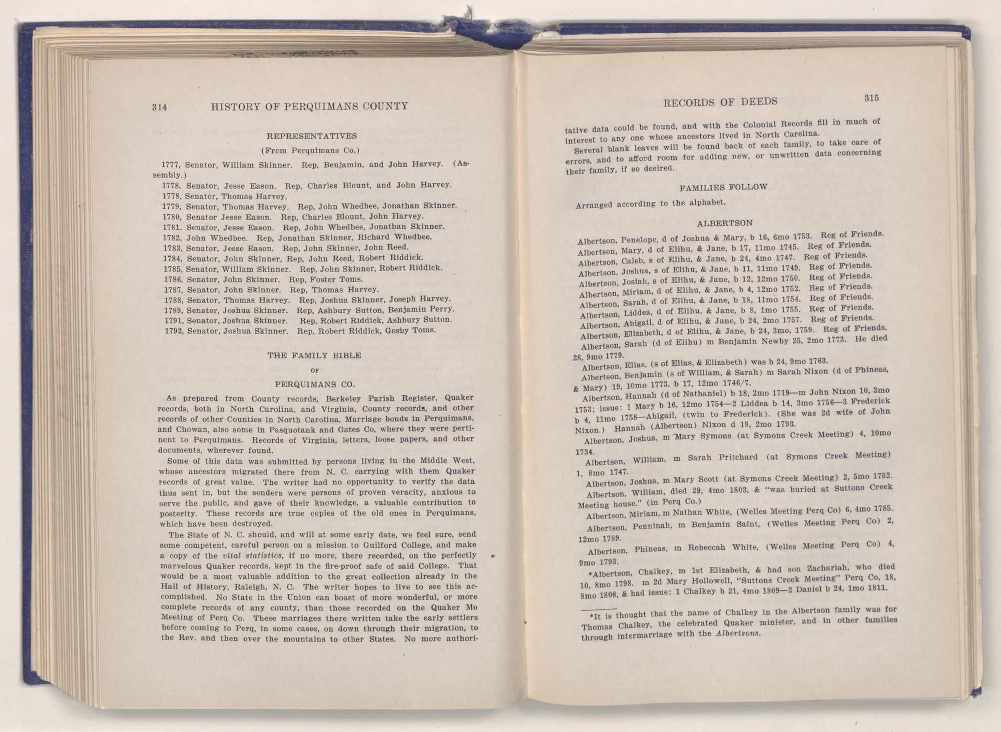 | The Family Bible of Perquimans County | 314 |