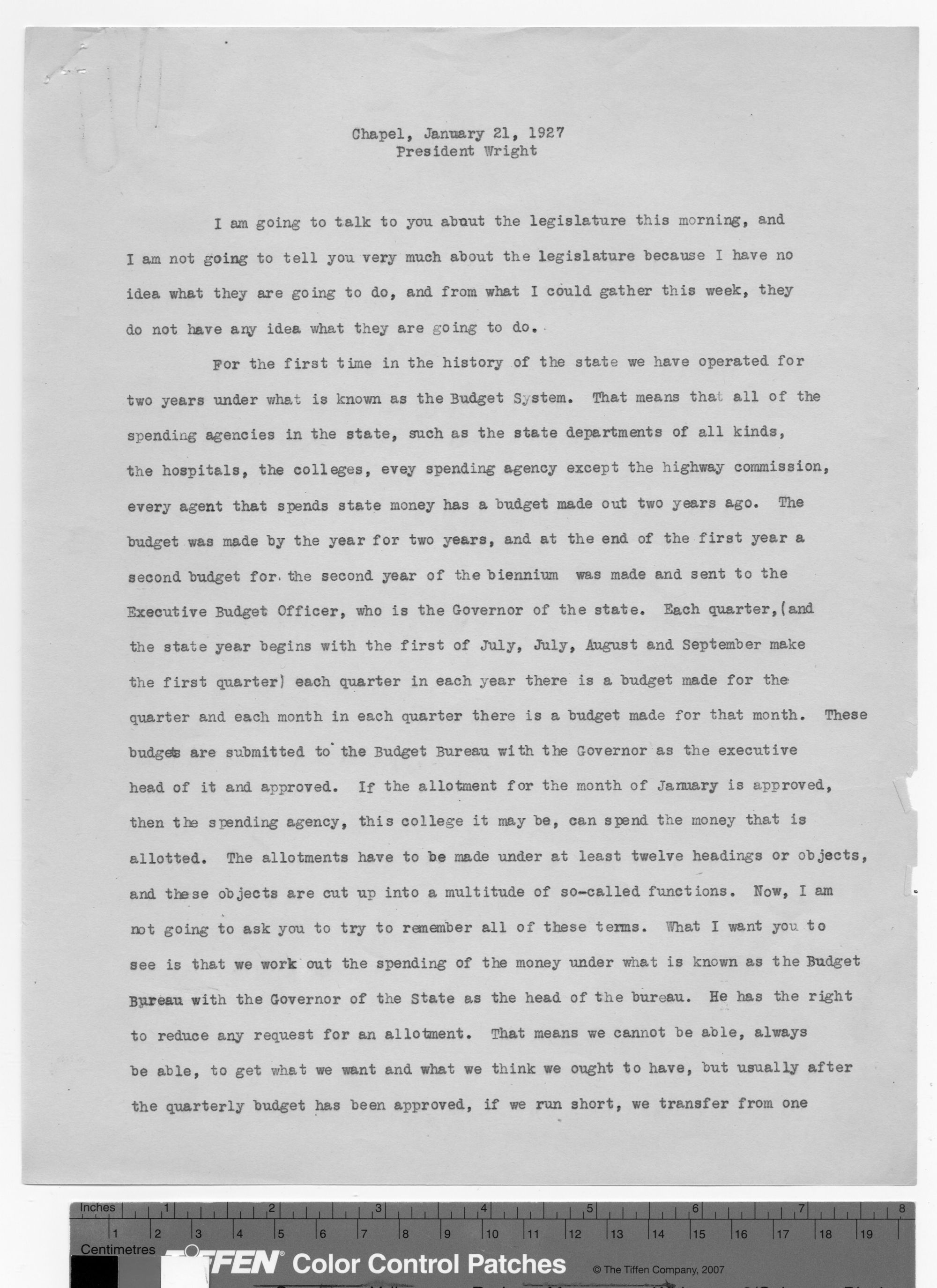 from one object to another except by written request and approval from the Governor. I think the Board of Trustees of an institution know best when to make a transfer from one object to another, because they are better informed and know more of the urgent needs of an institution than the Executive Head of a great state can possibly give the time to learn.