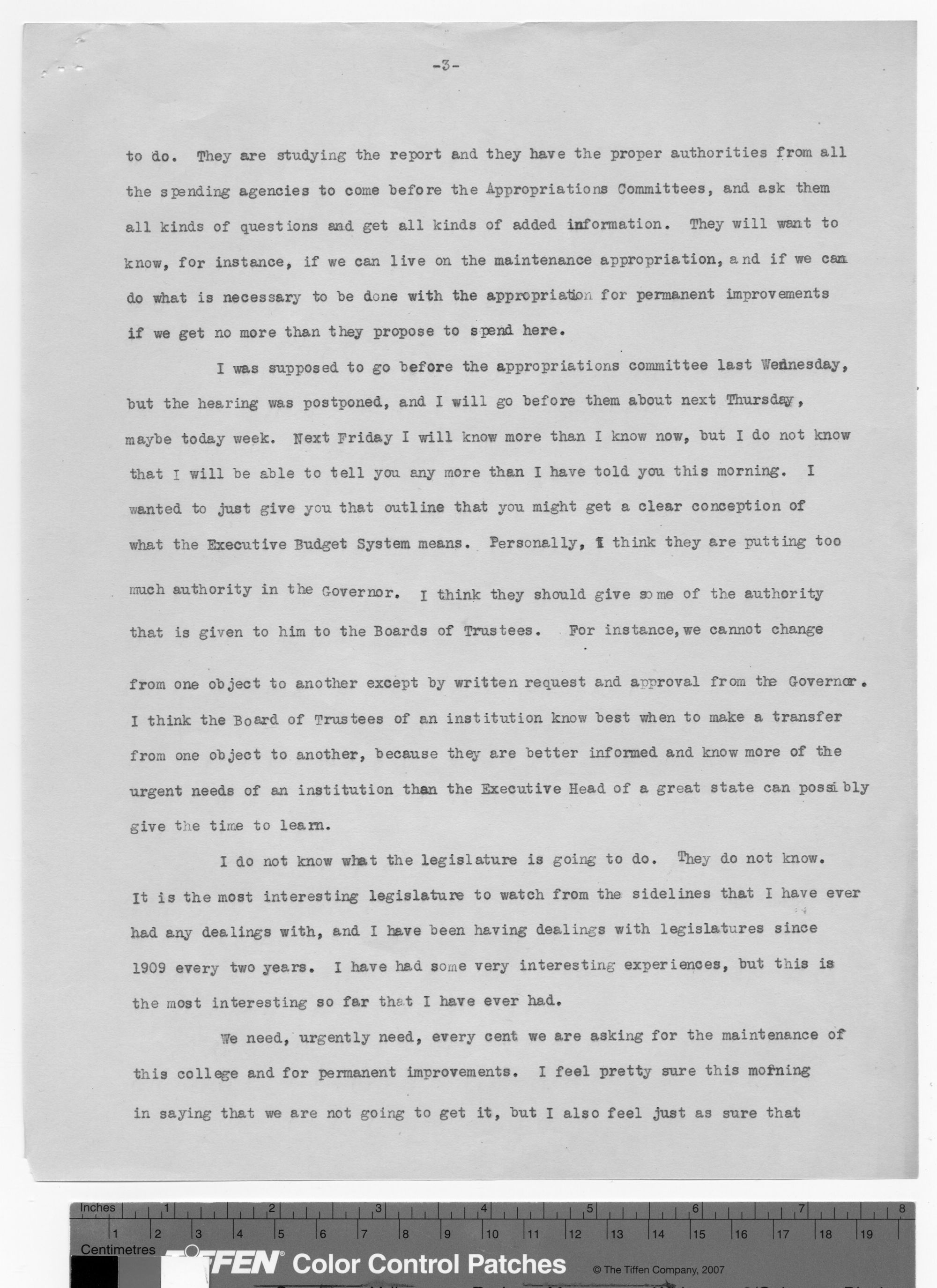 We need, urgently need, every cent we are asking for the maintenance of this college and for permanent improvements. I feel pretty sure this morning