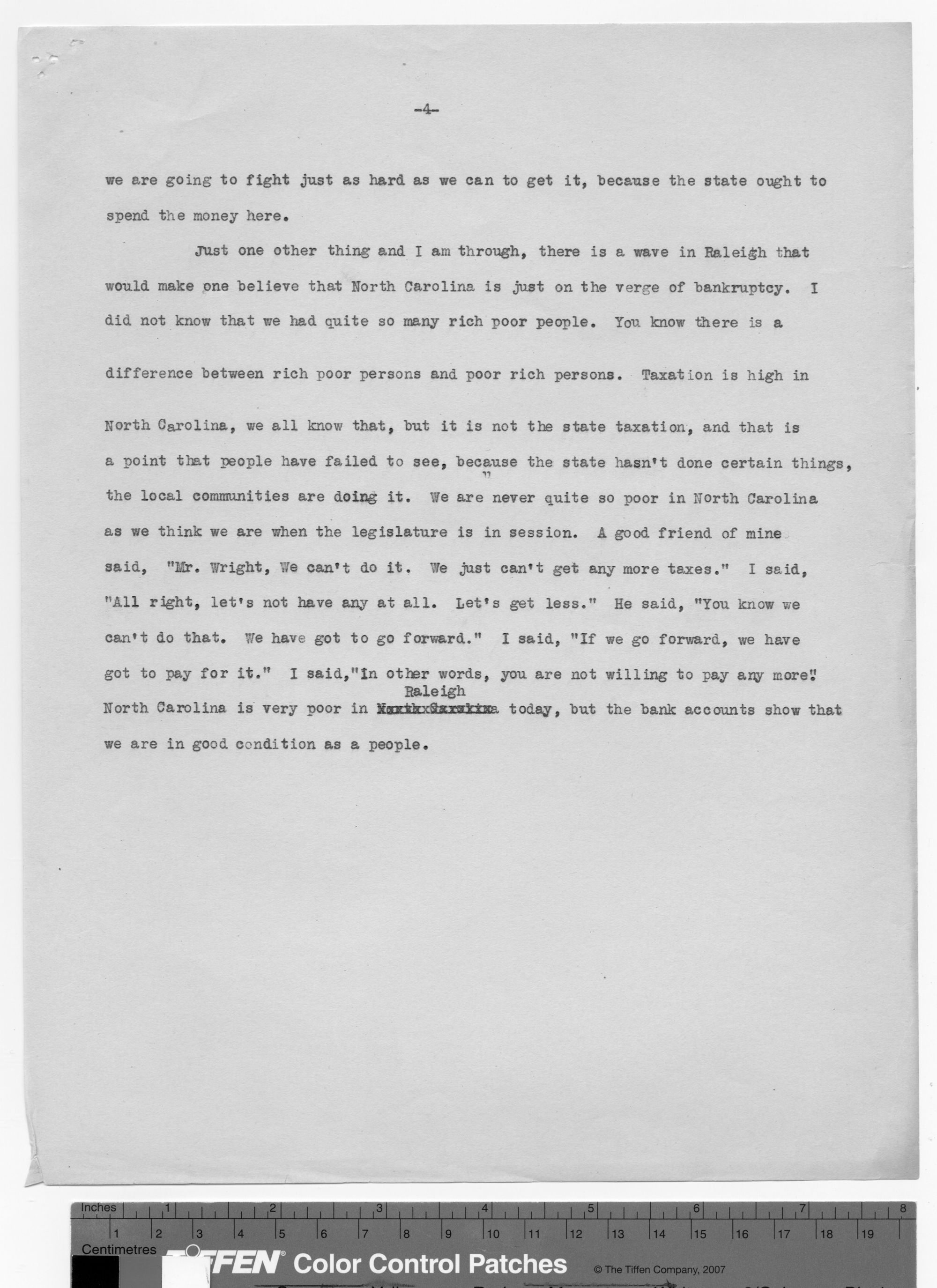 Just one other thing and I an through, there is a wave in Raleigh that would make one believe that North Carolina is just on the verge of bankruptcy. I did not know that me had quite so many rich poor people. You know there is a