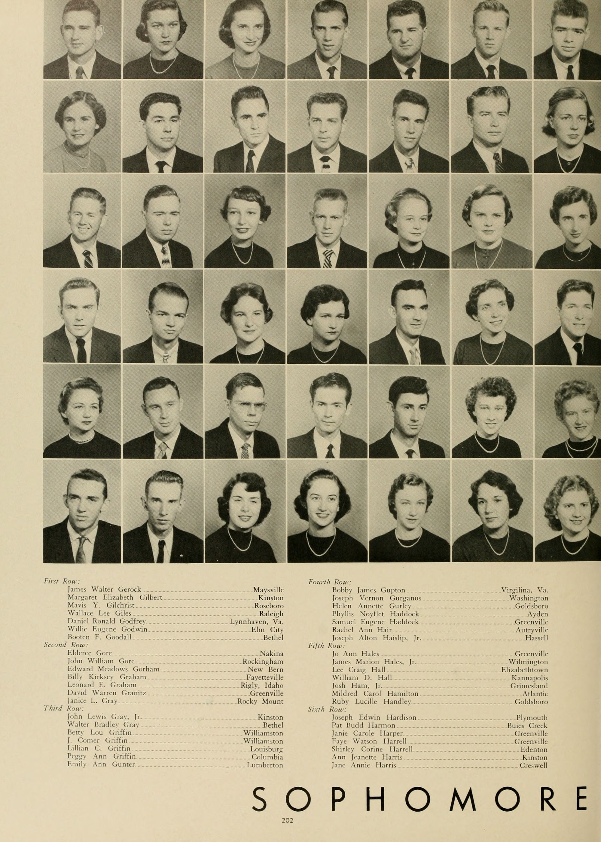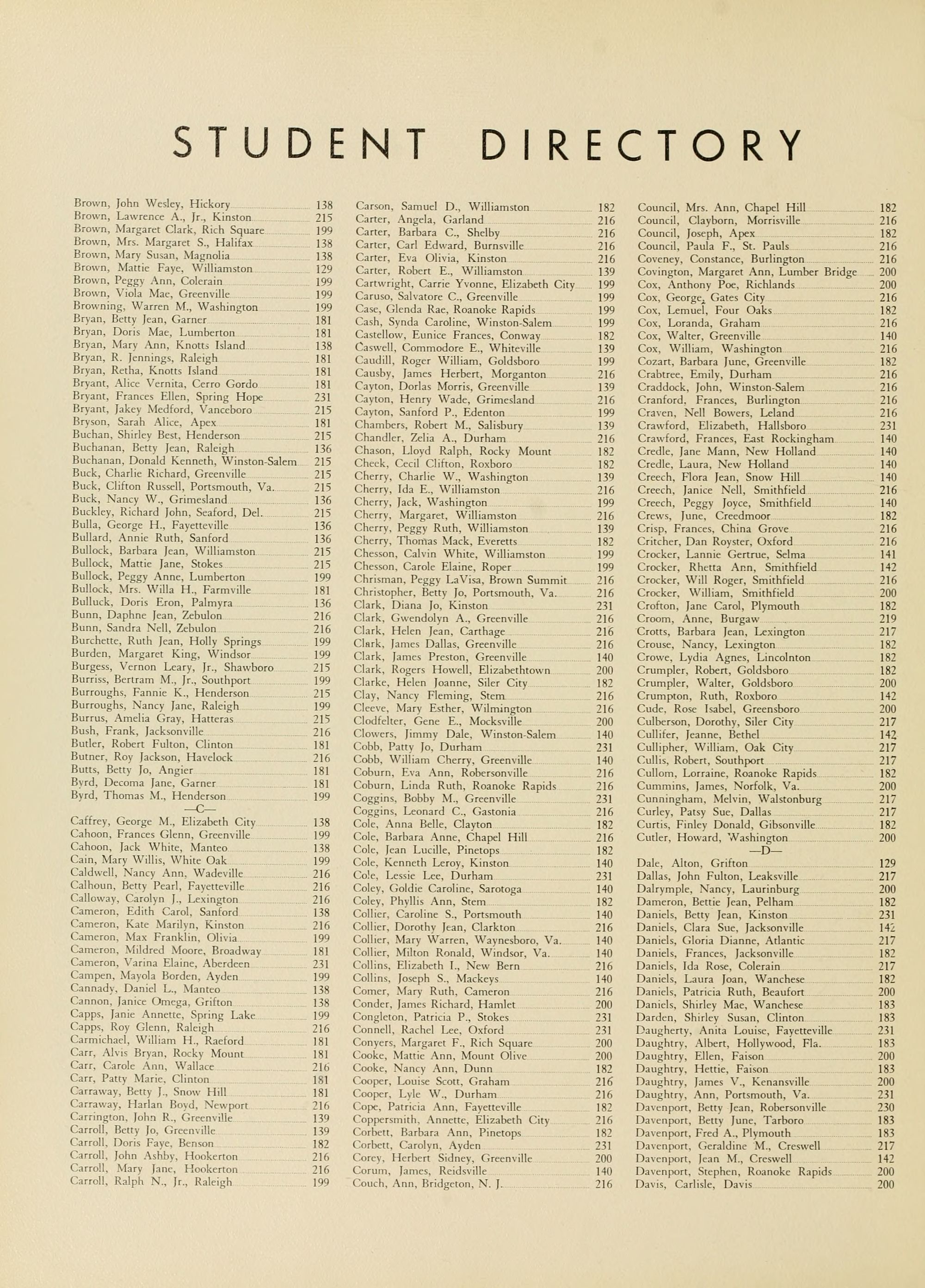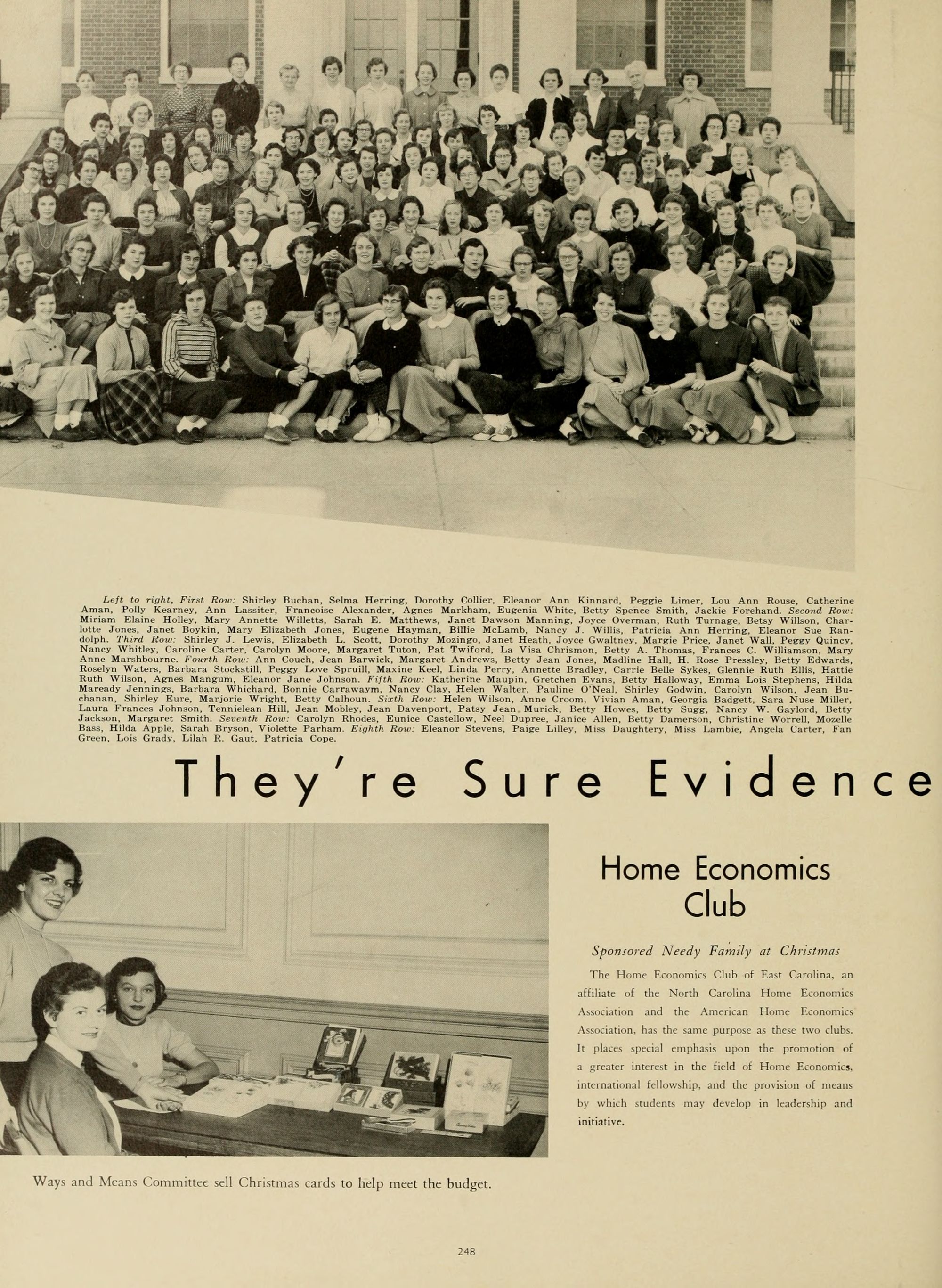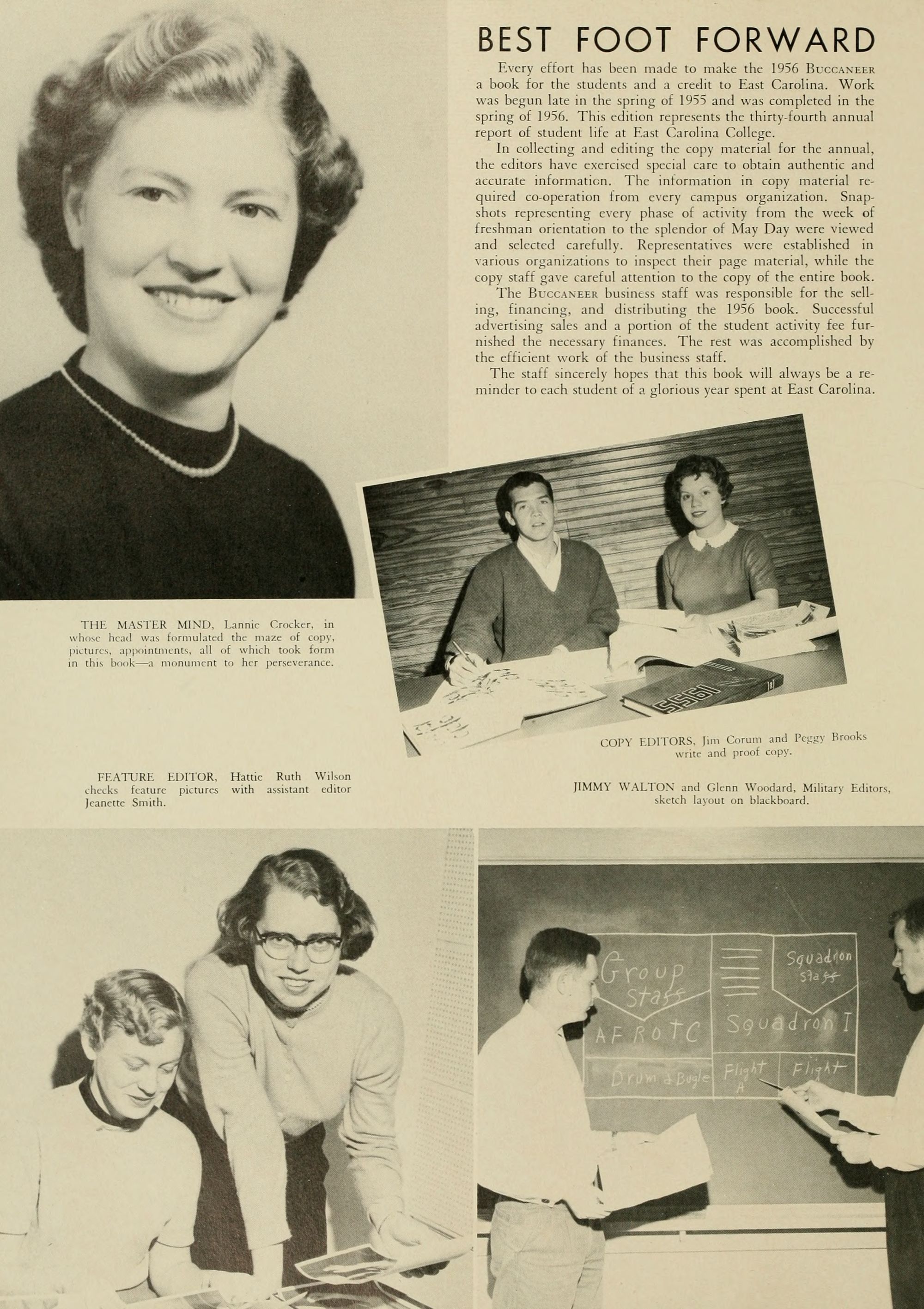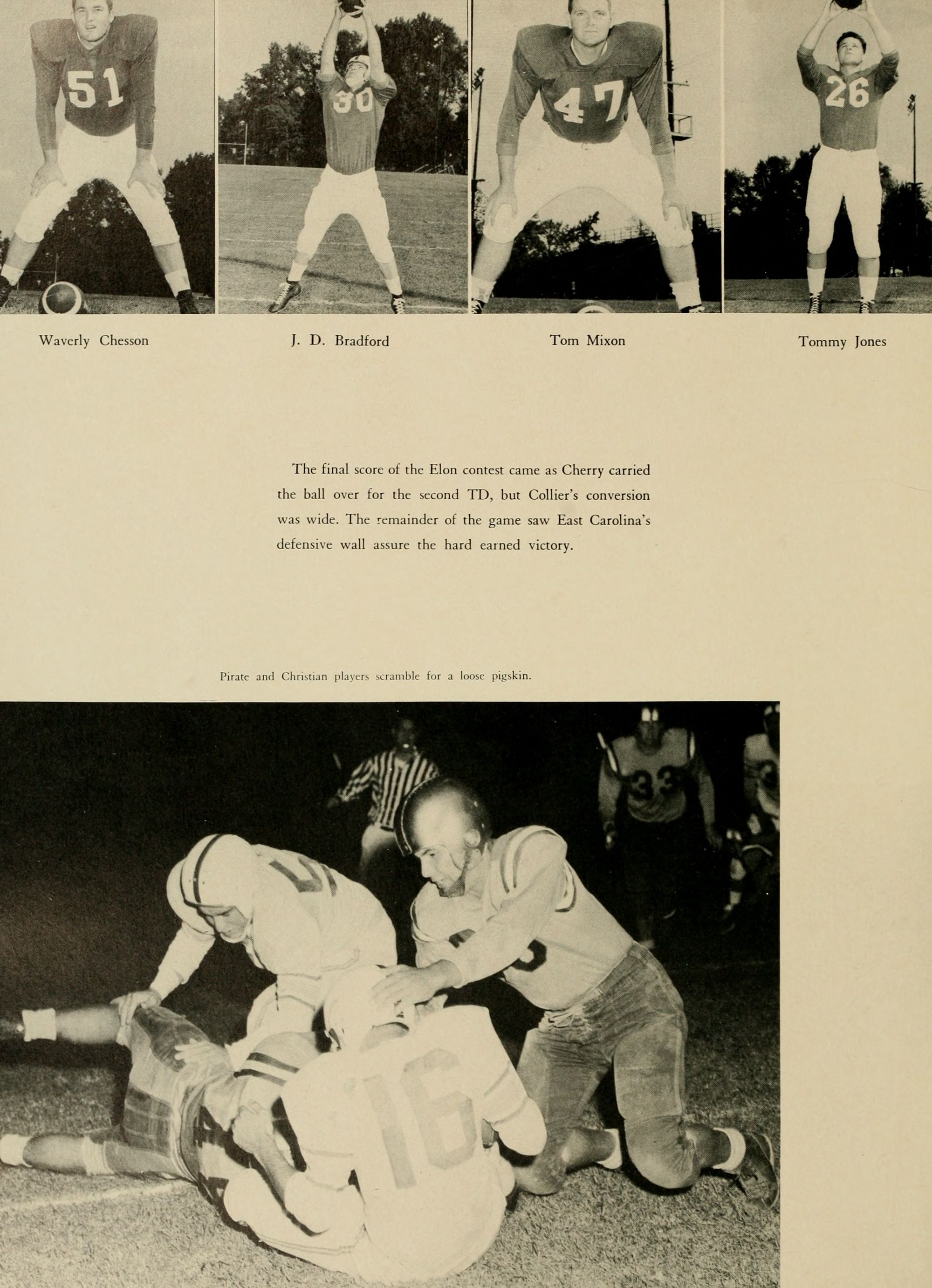 The spirit of EAST CAROLINA results from the spontaneous expression of social, educa-tional, spiritual, and sportsmanship activities of the college students, as they work toward the double goal of adulthood and graduation. In college a student finds a wide selection of cultural and social opportunities which are correlated with the curriculum. While living with contemporaries, college students estab-lish for themselves a set of values and learn to select the best from life with an aim toward living it. Graduation is the culmination of a successful college life; the student emerges into his place in the world, equipped with the best upon which to build a worthy life.