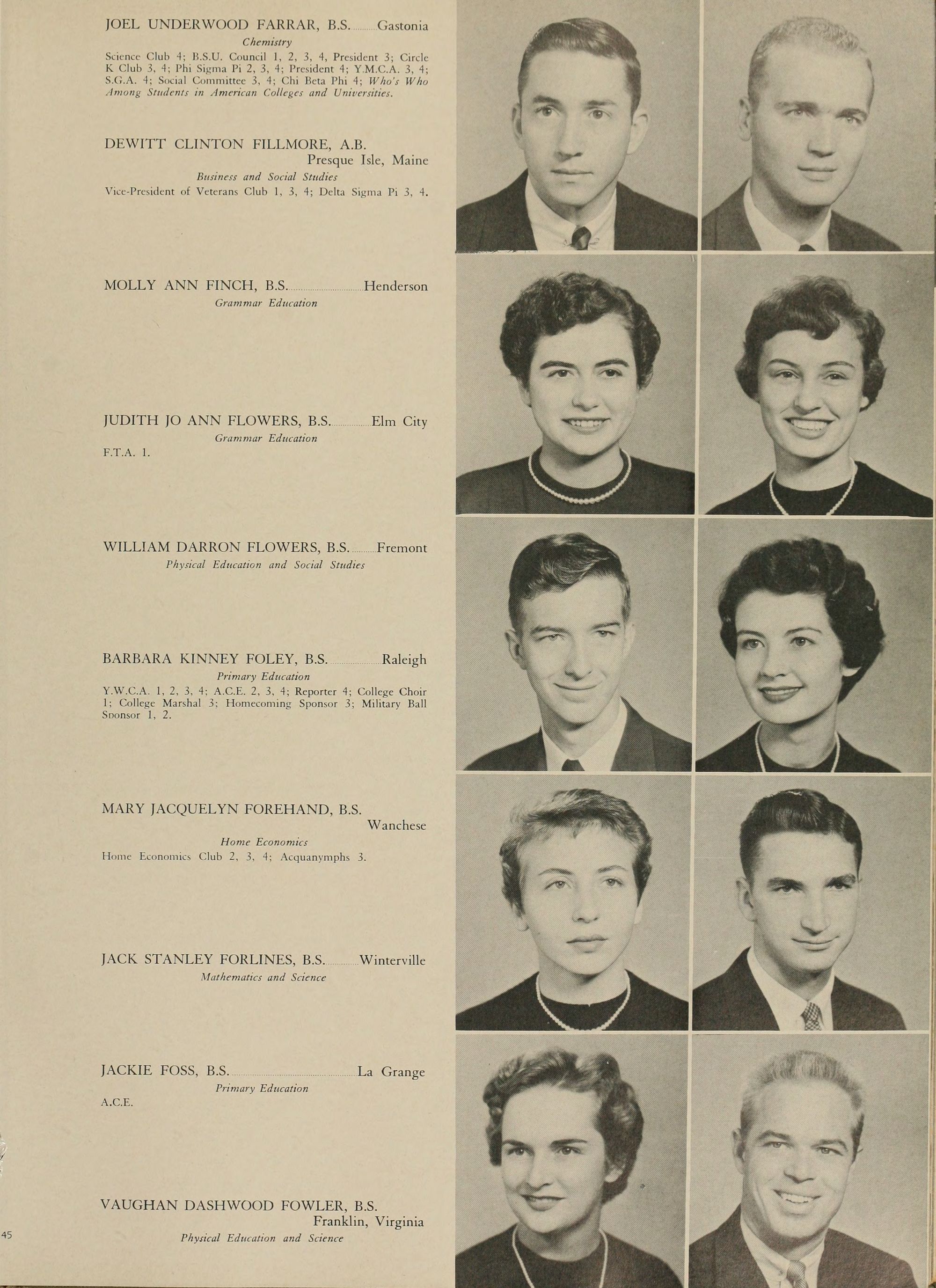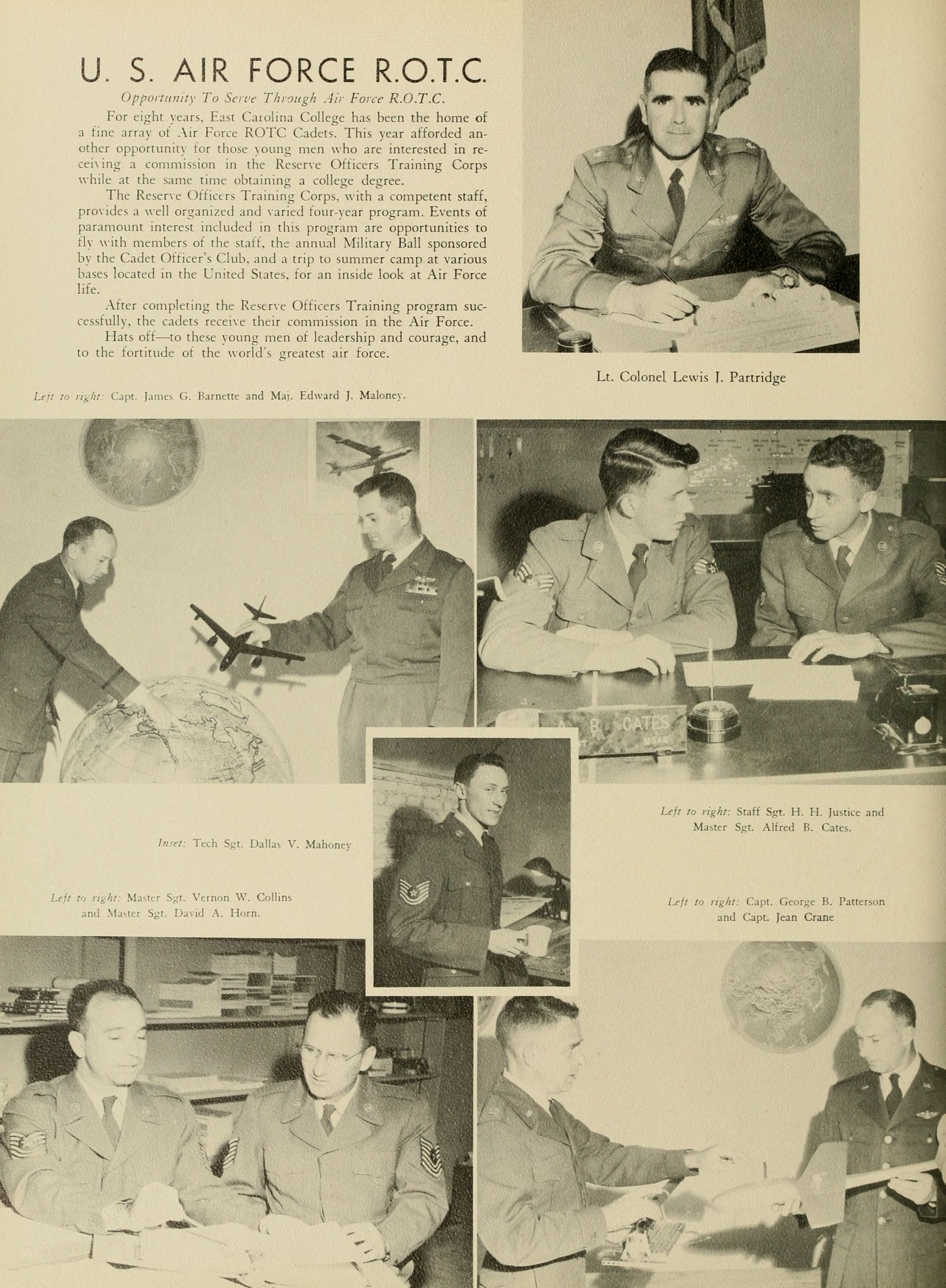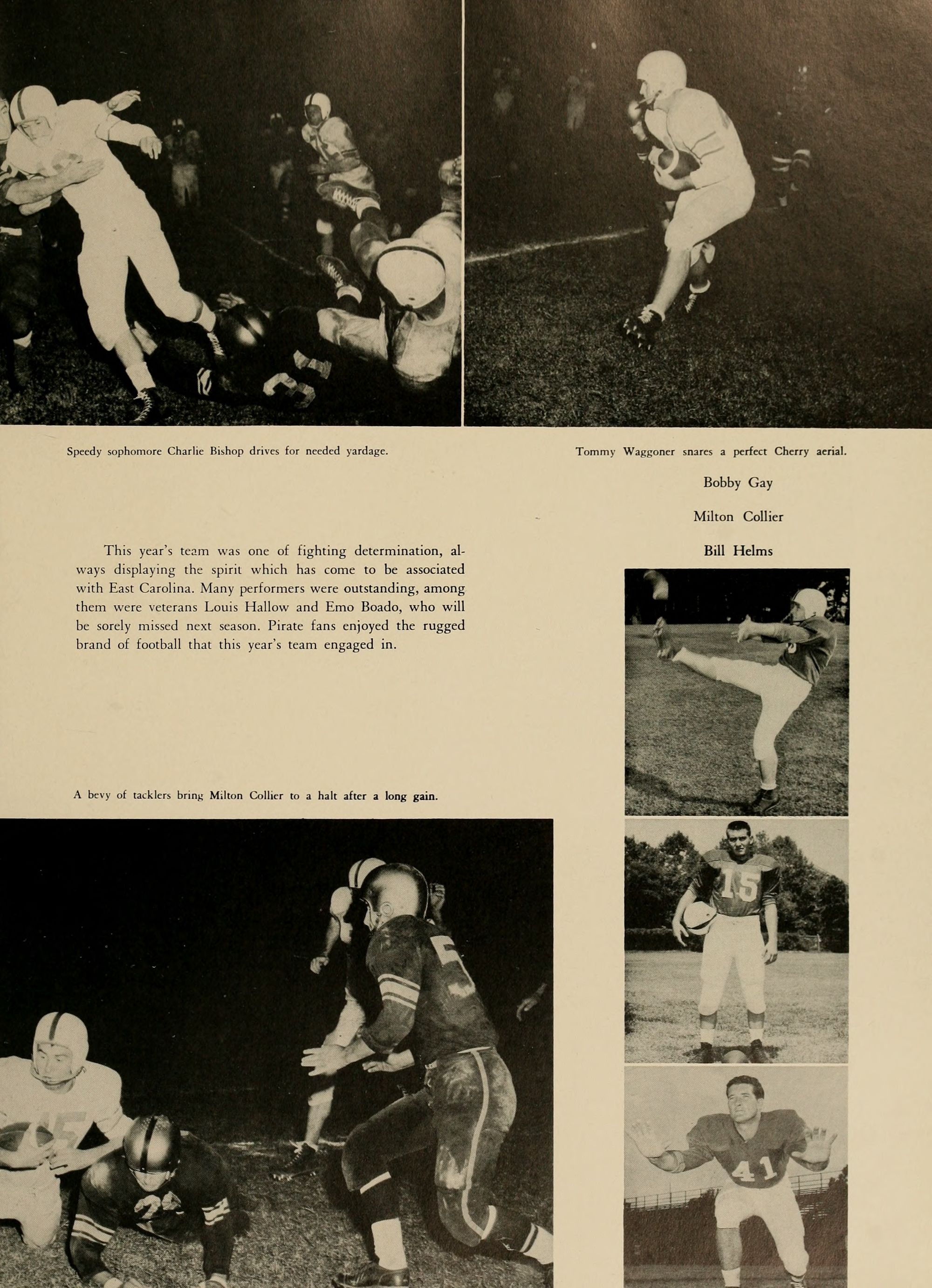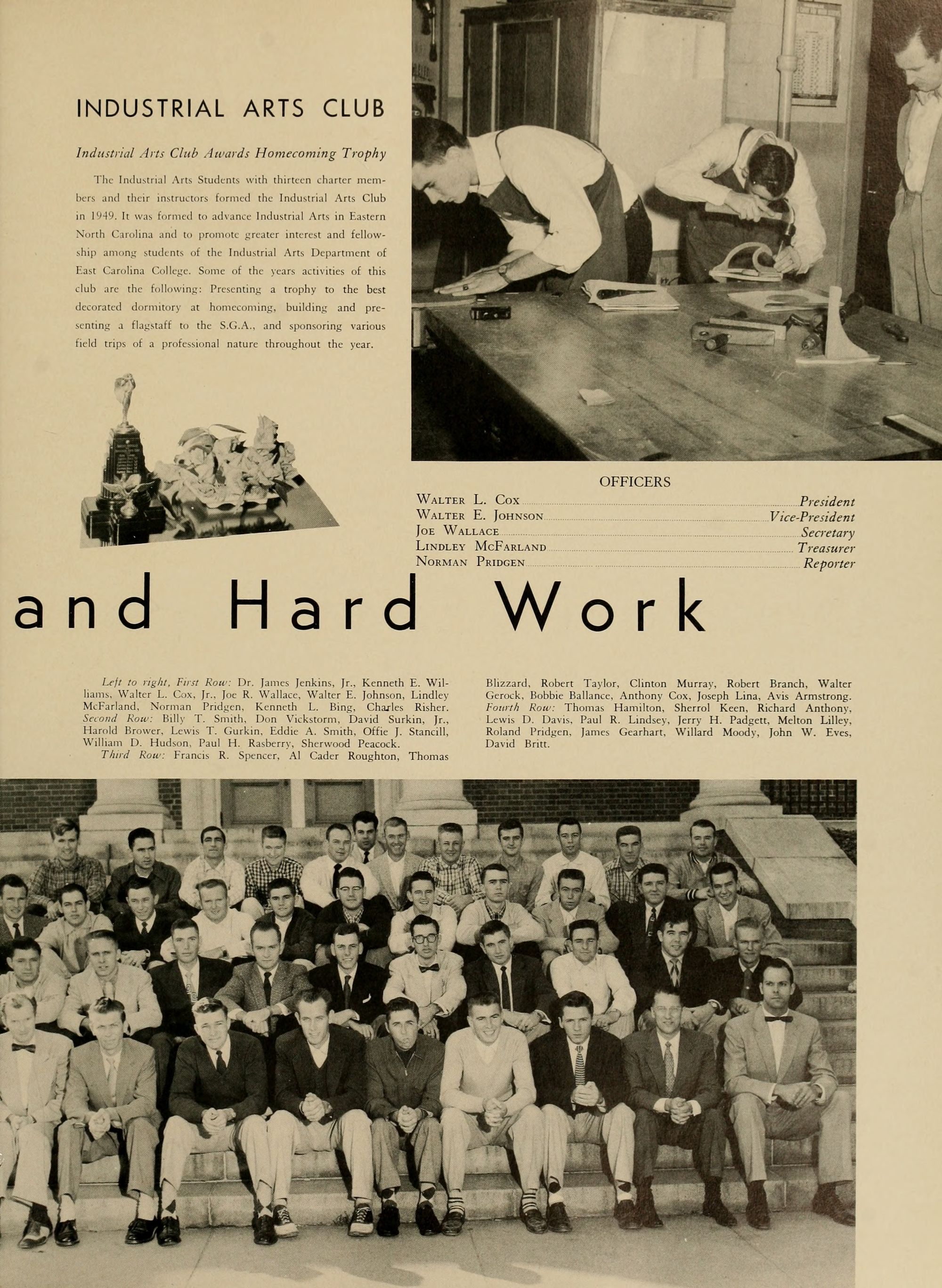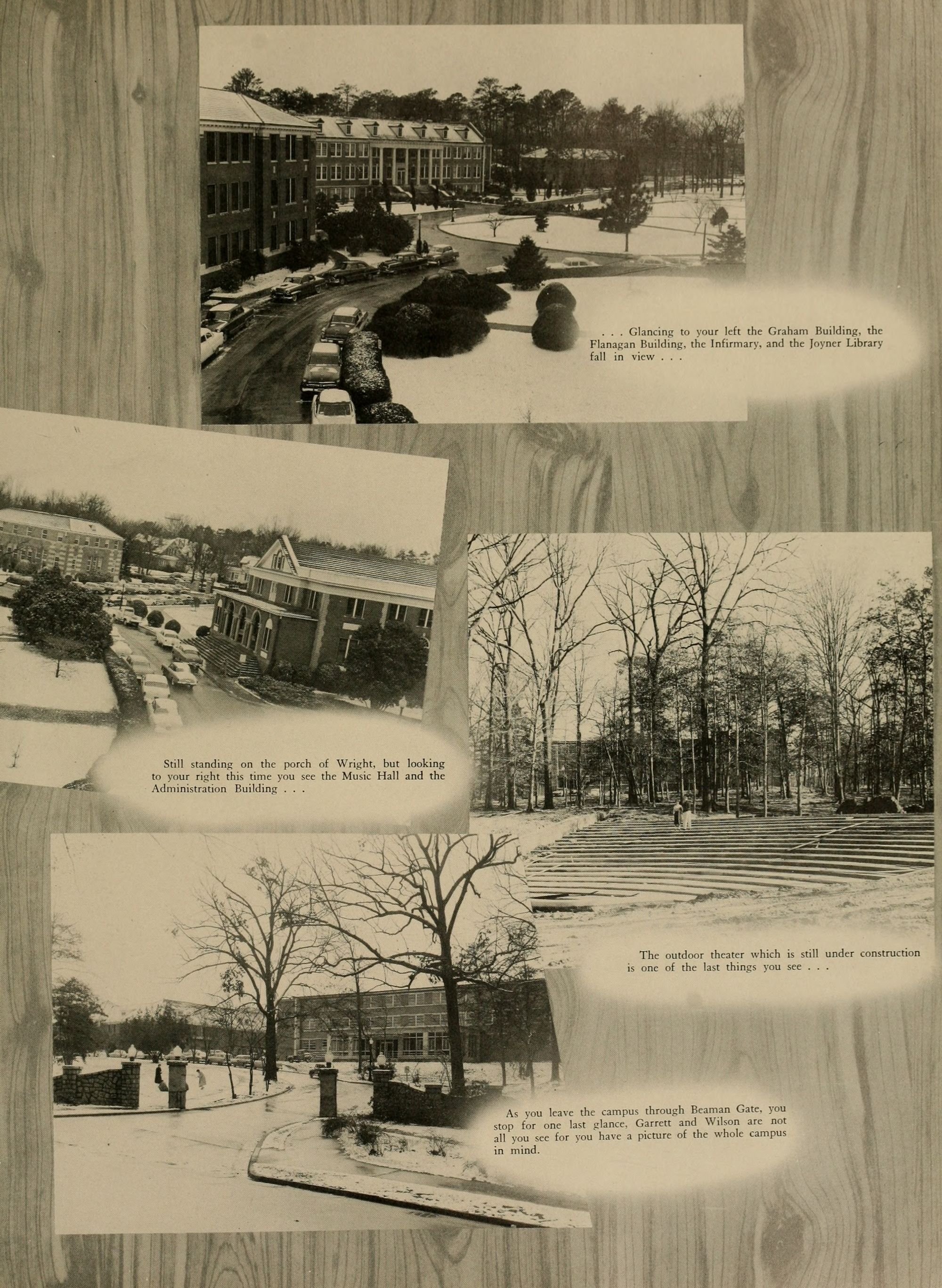 The spirit of EAST CAROLINA results from the spontaneous expression of social, educa-tional, spiritual, and sportsmanship activities of the college students, as they work toward the double goal of adulthood and graduation. In college a student finds a wide selection of cultural and social opportunities which are correlated with the curriculum. While living with contemporaries, college students estab-lish for themselves a set of values and learn to select the best from life with an aim toward living it. Graduation is the culmination of a successful college life; the student emerges into his place in the world, equipped with the best upon which to build a worthy life.