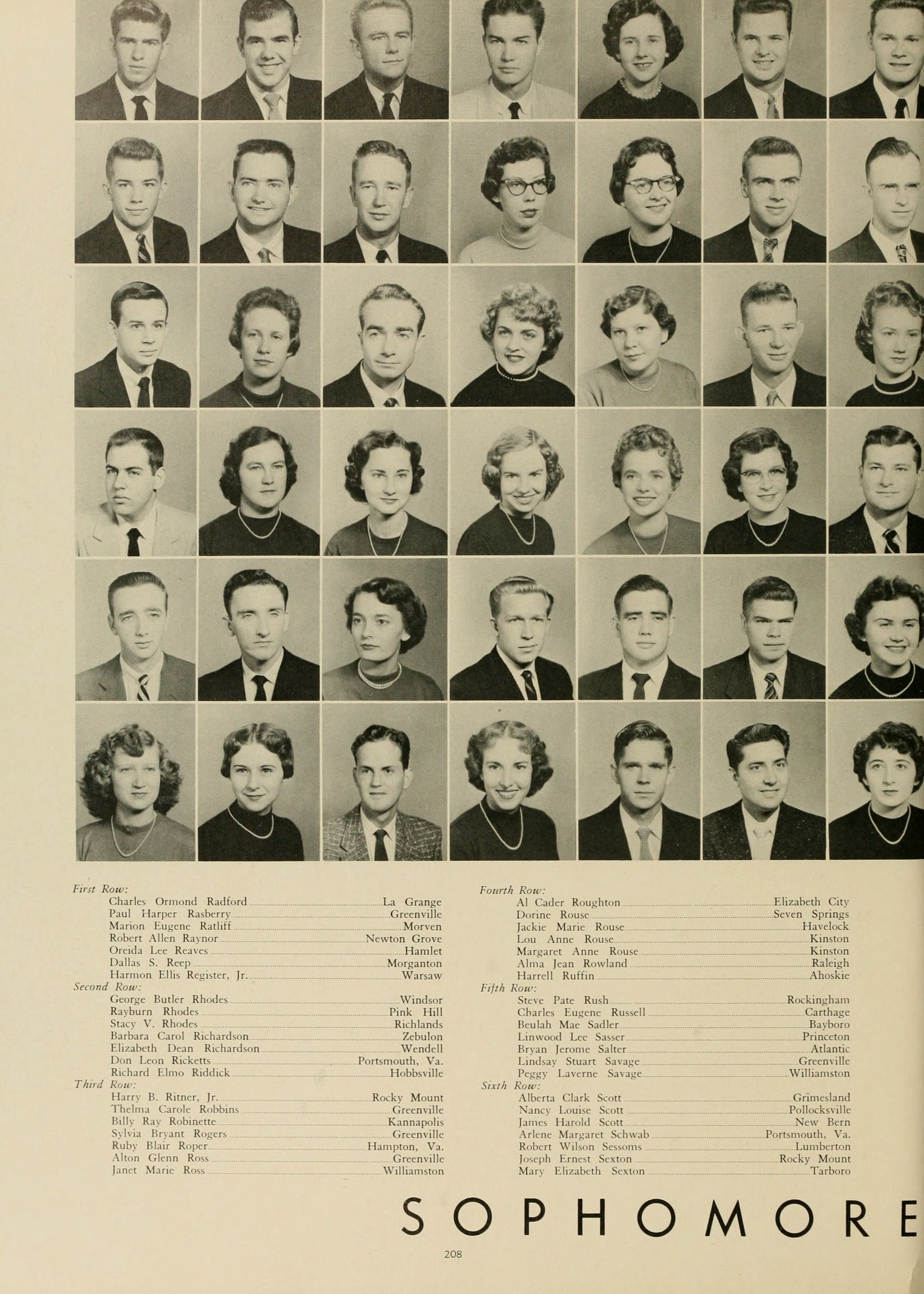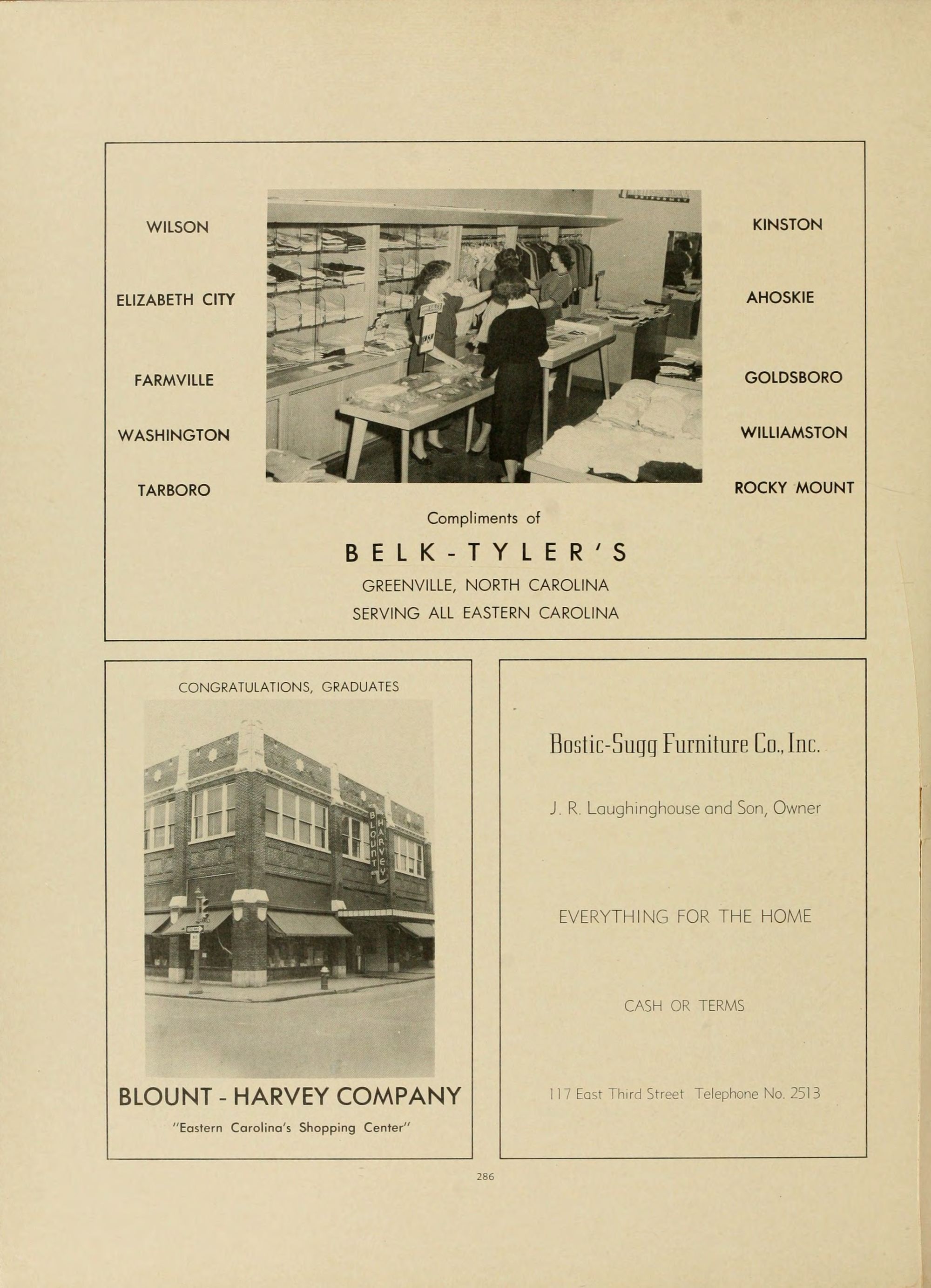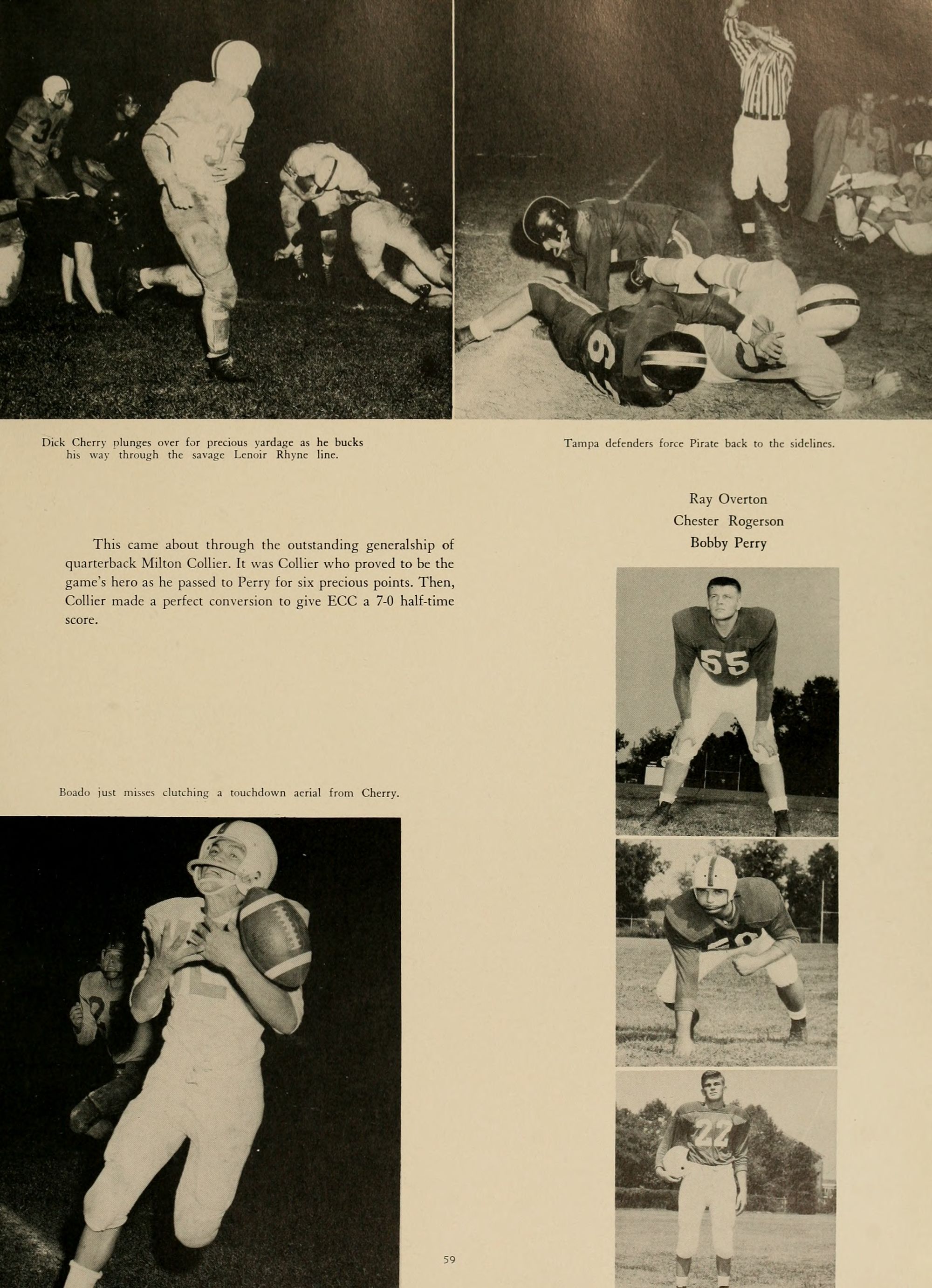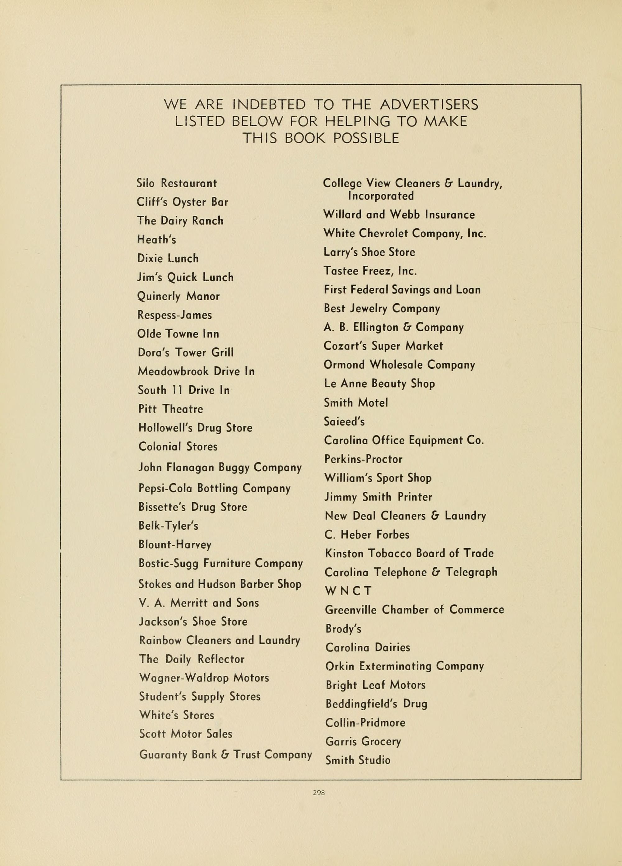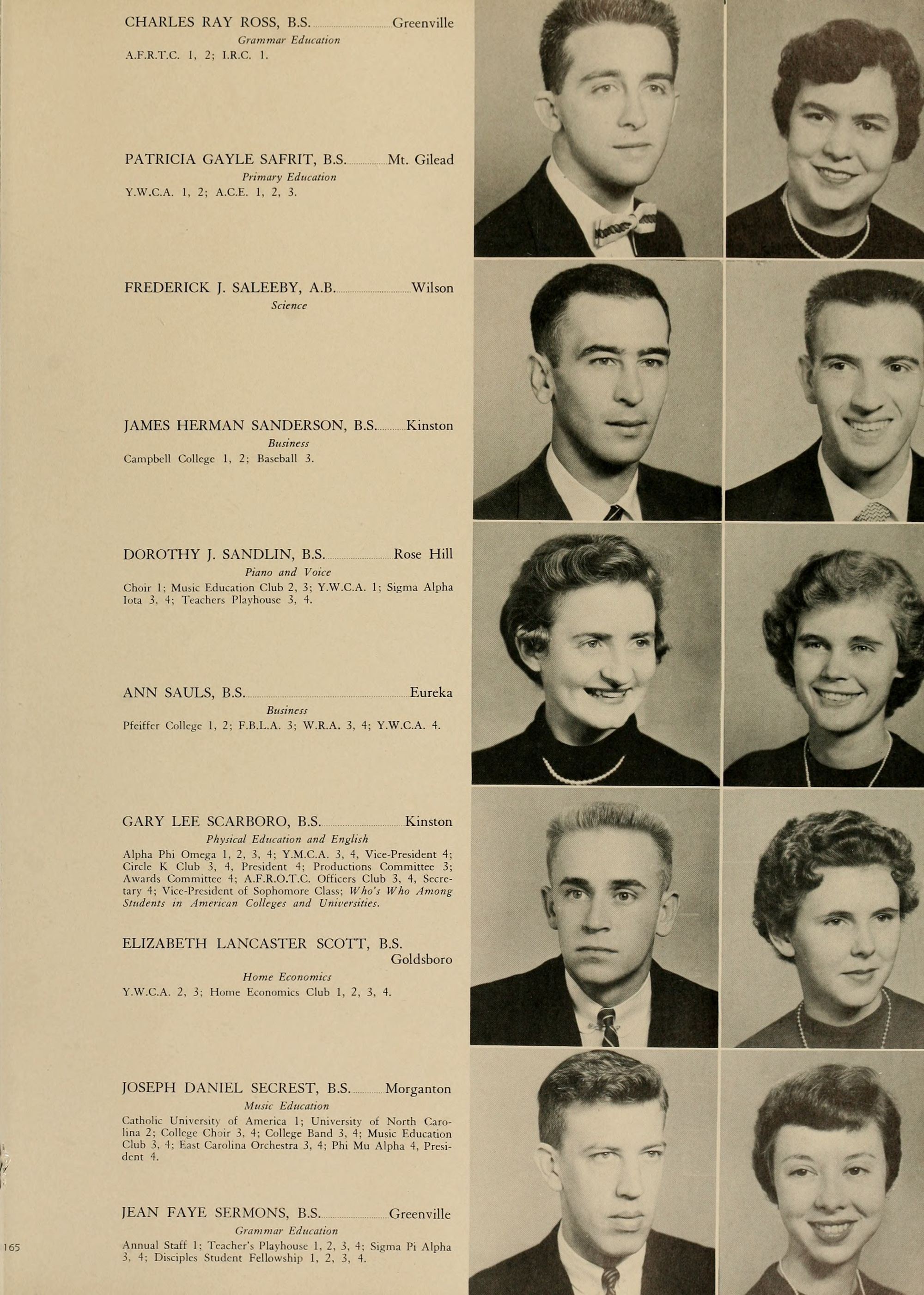 The spirit of EAST CAROLINA results from the spontaneous expression of social, educa-tional, spiritual, and sportsmanship activities of the college students, as they work toward the double goal of adulthood and graduation. In college a student finds a wide selection of cultural and social opportunities which are correlated with the curriculum. While living with contemporaries, college students estab-lish for themselves a set of values and learn to select the best from life with an aim toward living it. Graduation is the culmination of a successful college life; the student emerges into his place in the world, equipped with the best upon which to build a worthy life.