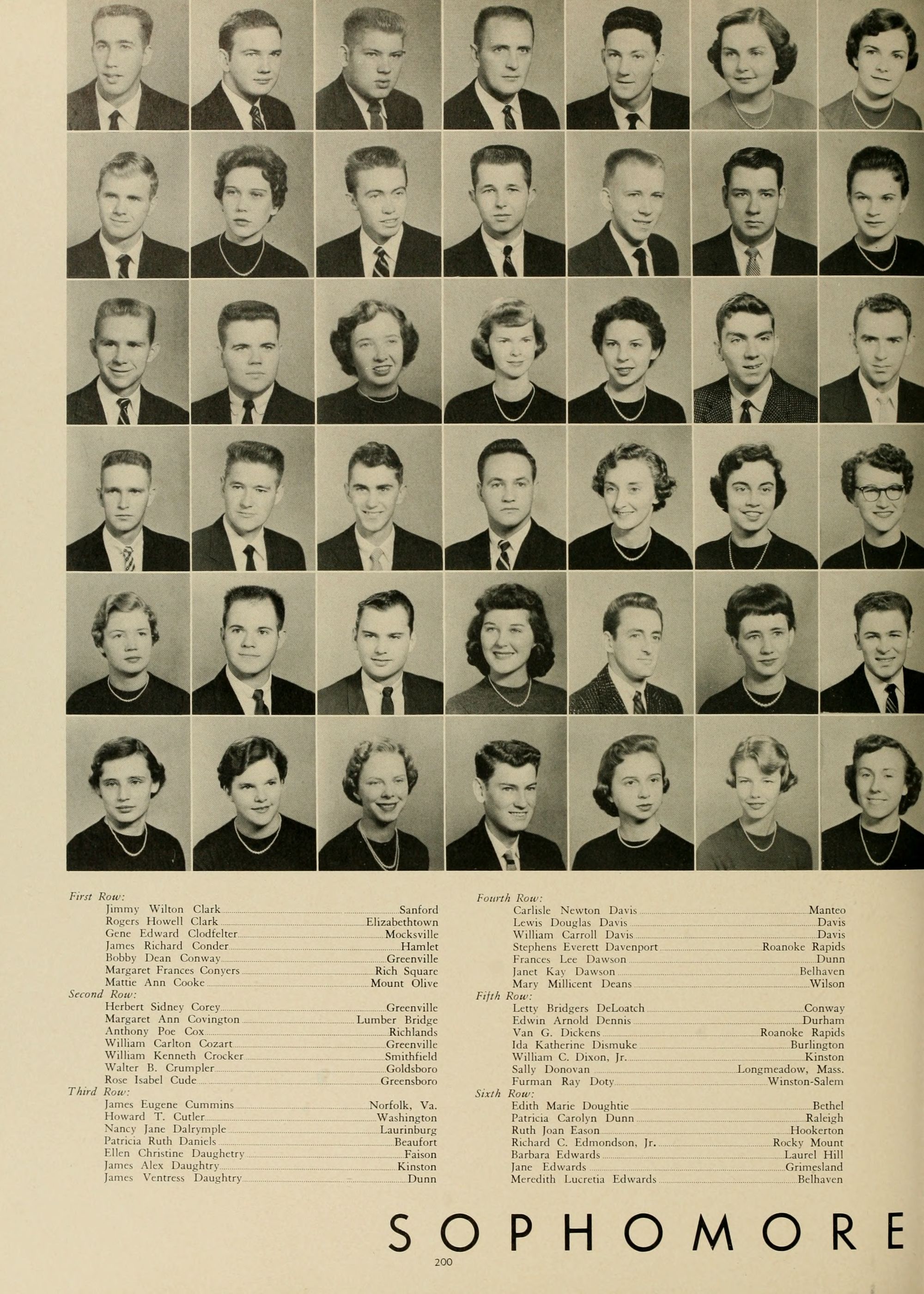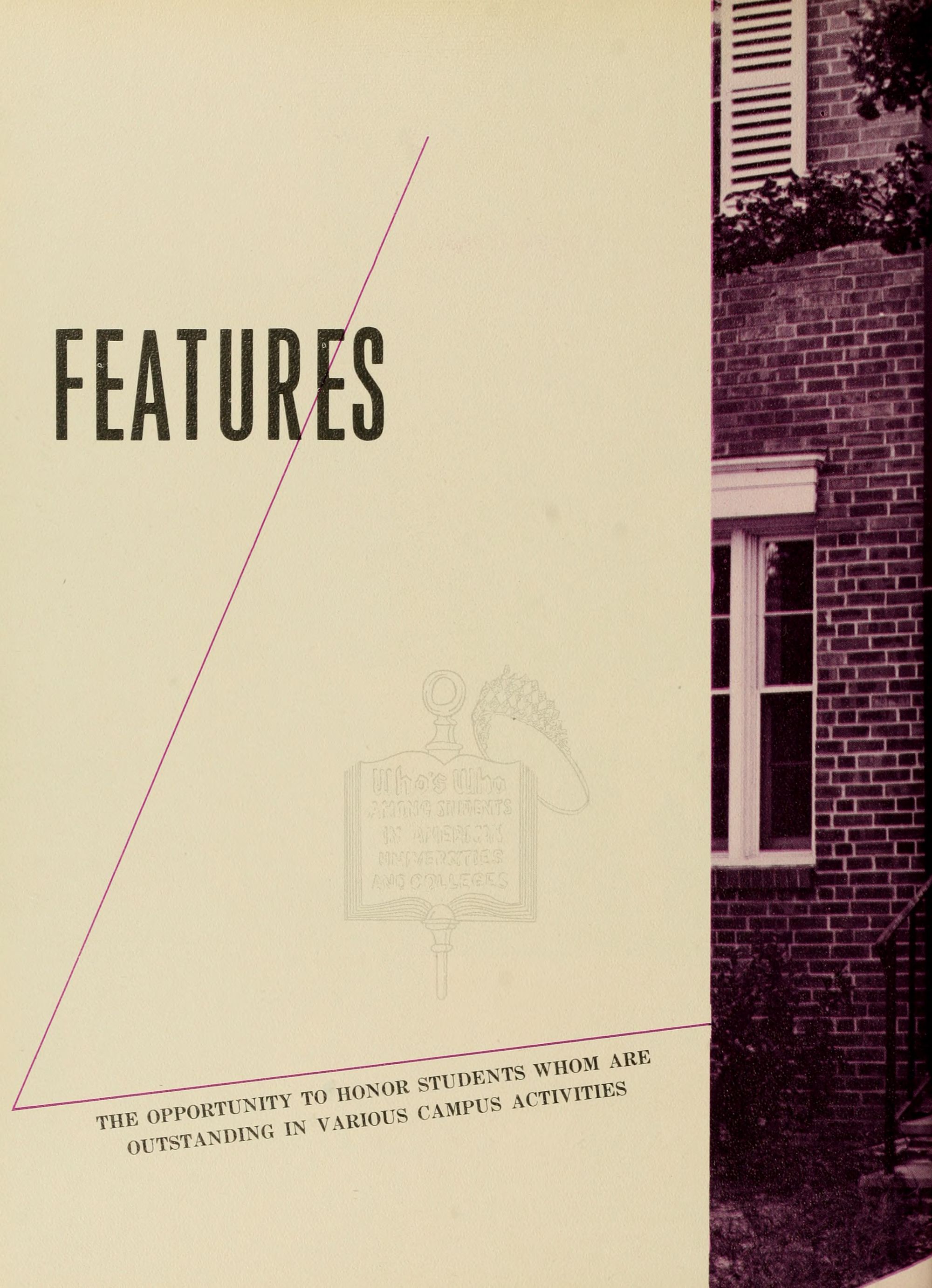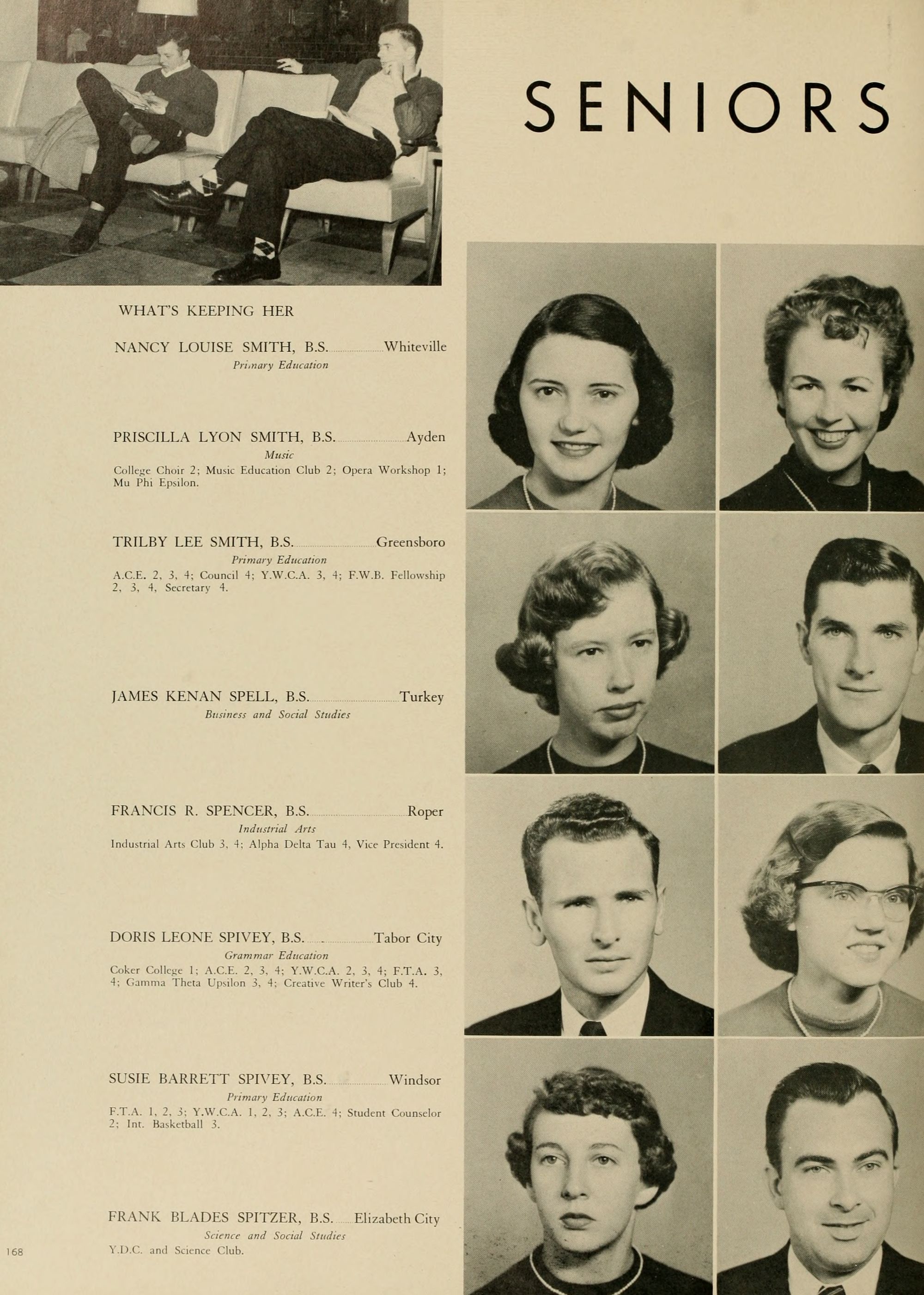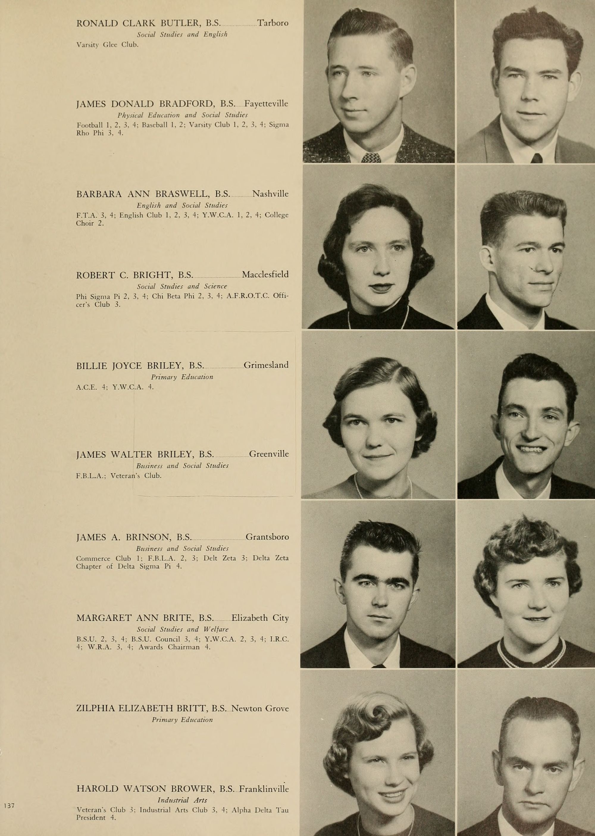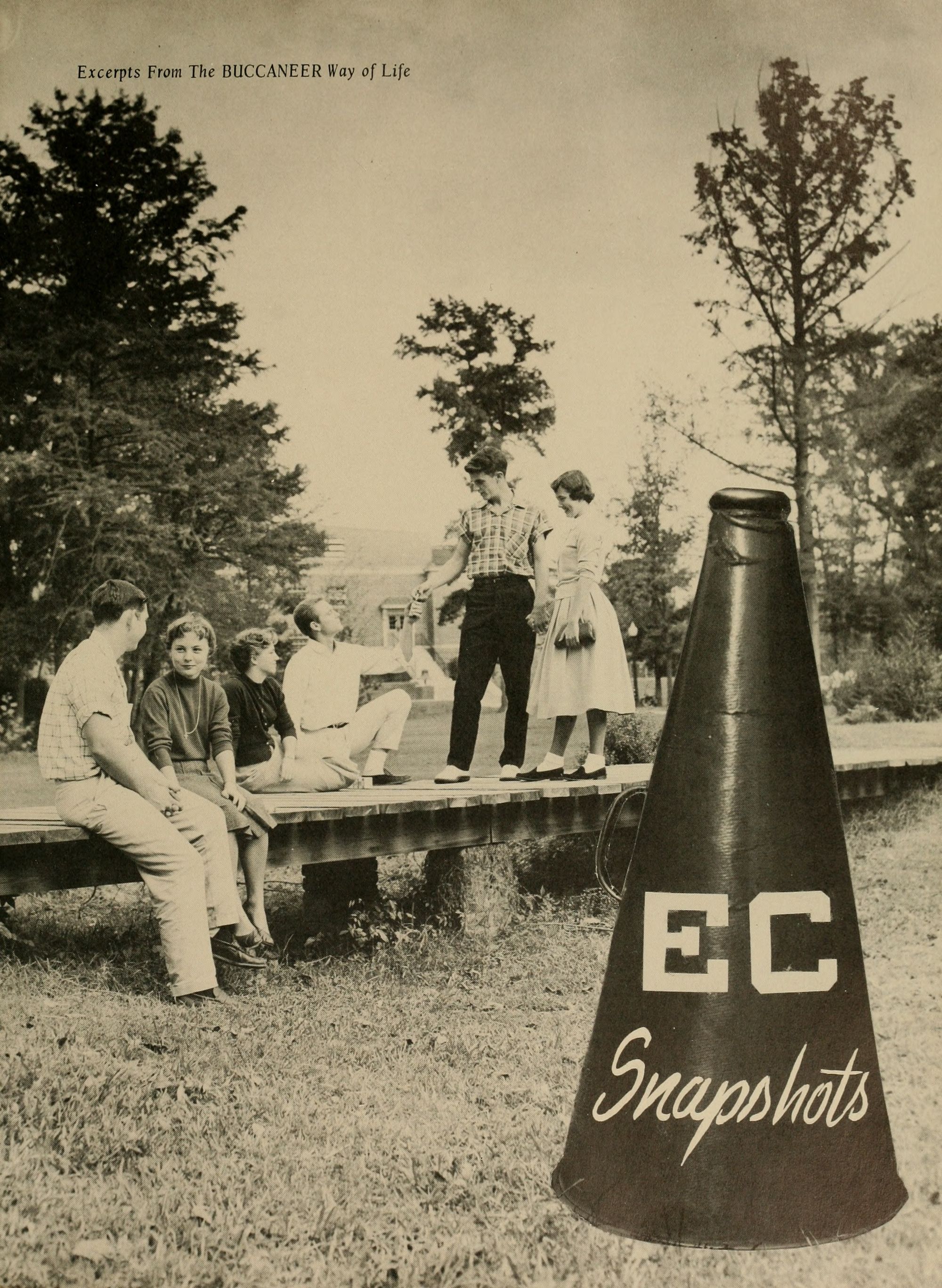 The spirit of EAST CAROLINA results from the spontaneous expression of social, educa-tional, spiritual, and sportsmanship activities of the college students, as they work toward the double goal of adulthood and graduation. In college a student finds a wide selection of cultural and social opportunities which are correlated with the curriculum. While living with contemporaries, college students estab-lish for themselves a set of values and learn to select the best from life with an aim toward living it. Graduation is the culmination of a successful college life; the student emerges into his place in the world, equipped with the best upon which to build a worthy life.