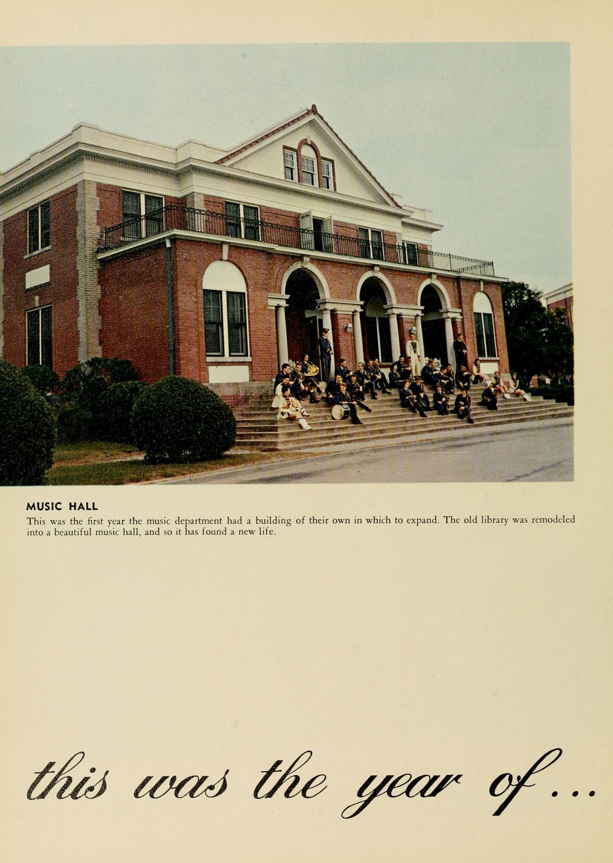 This was the first year the music department had a building of their own in which to expand. The old library was remodeled into a beautiful music hall, and so it has found a new life.