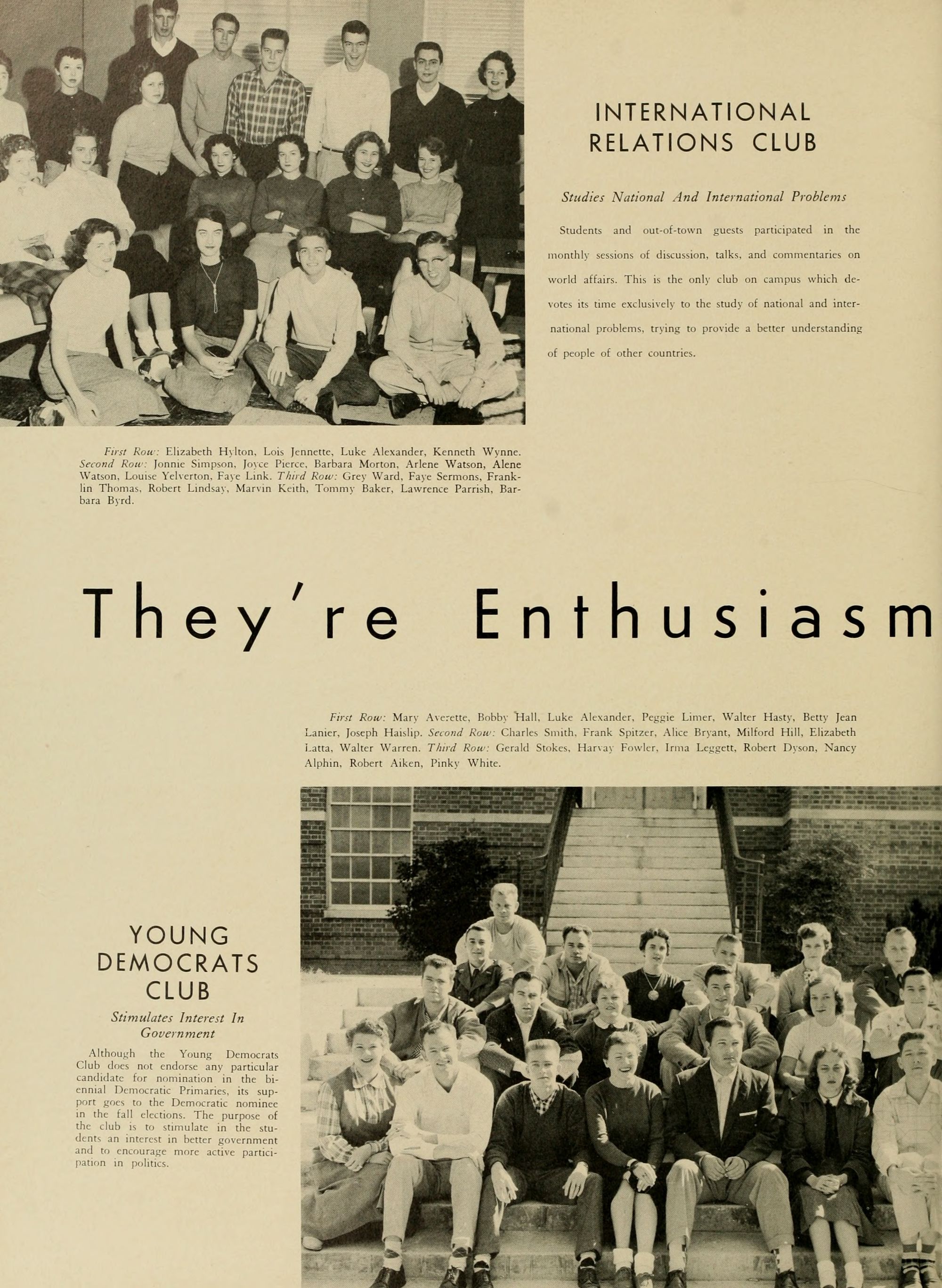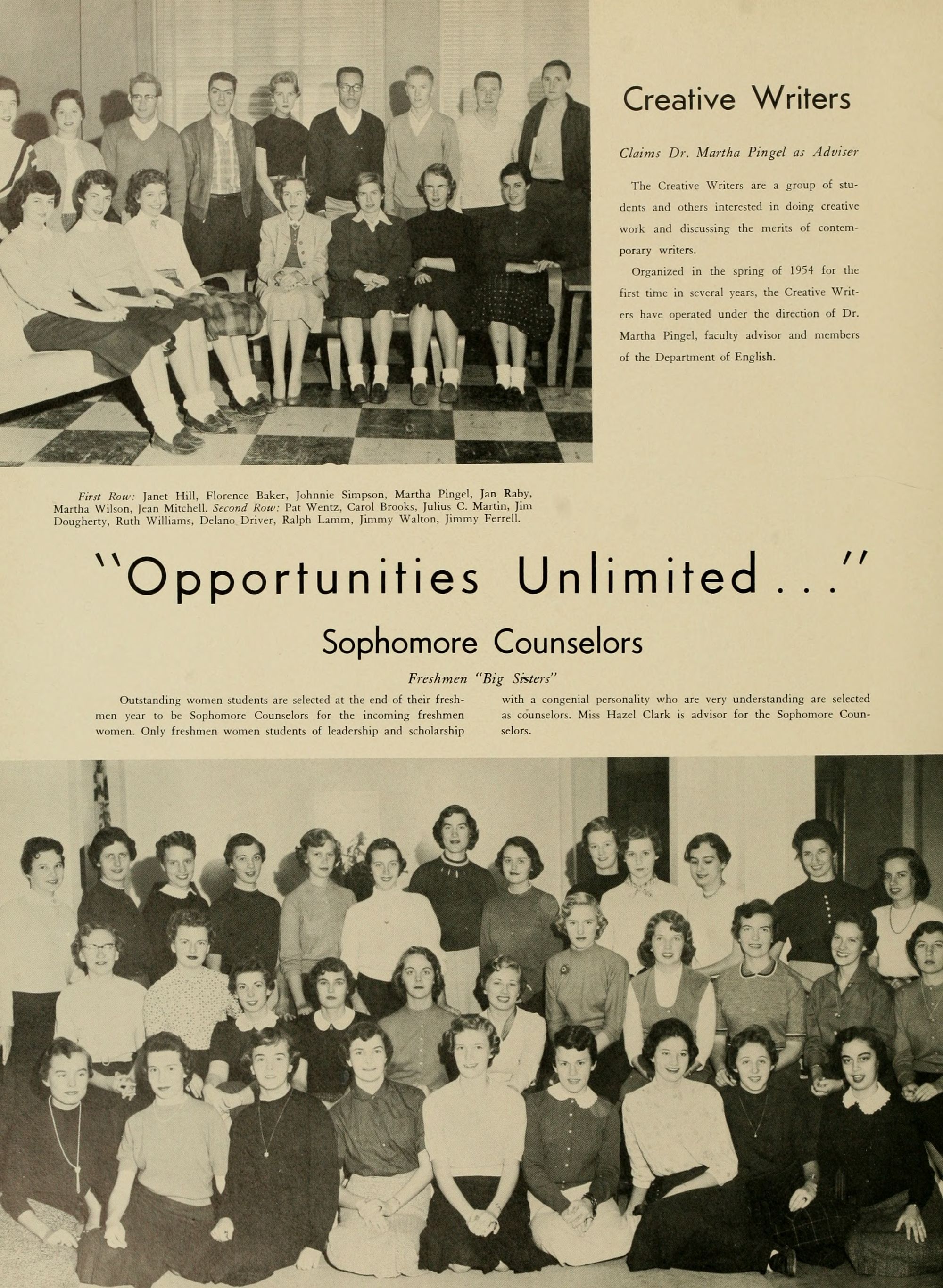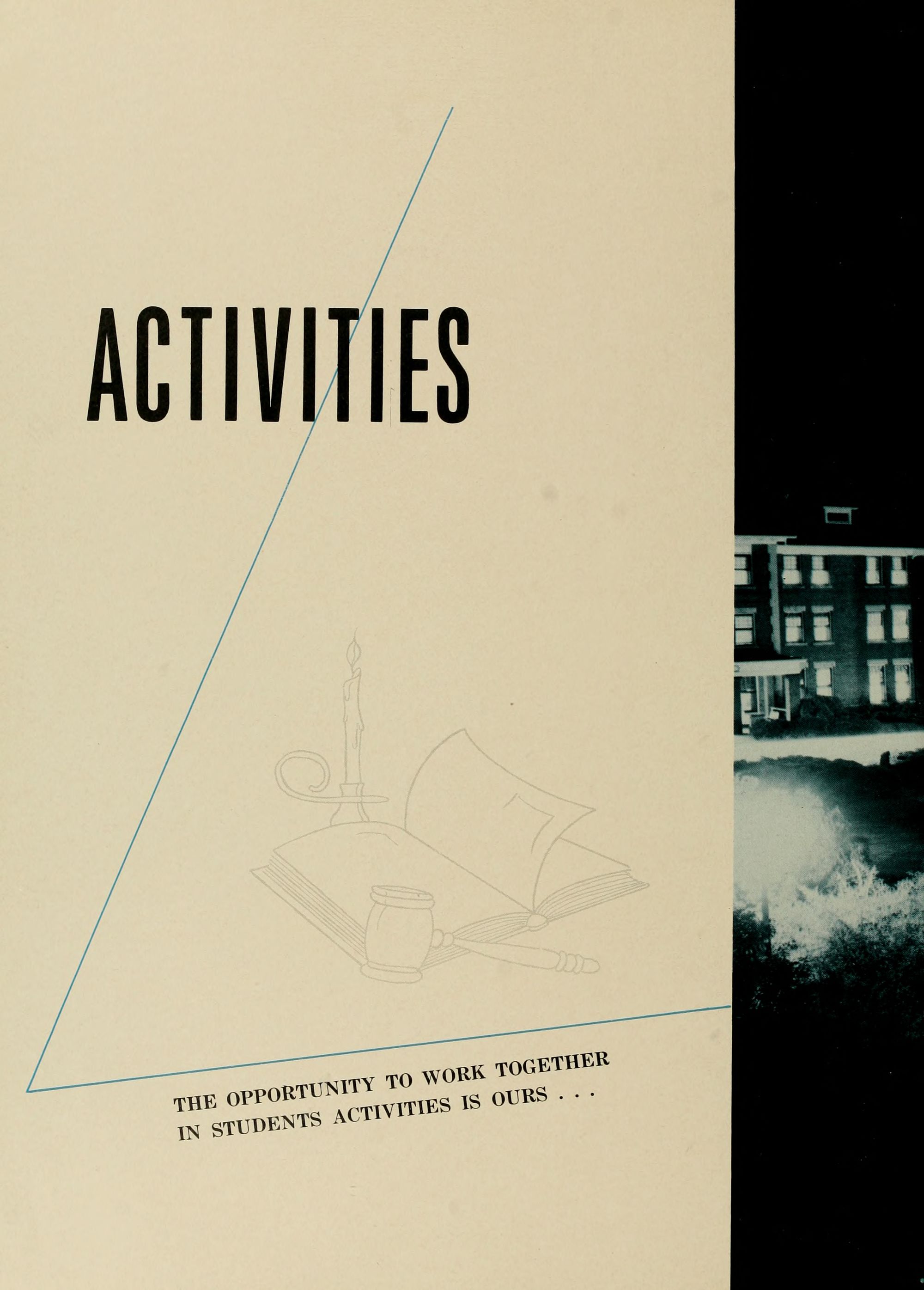 Organizations are the builders of leaders; they're cooperation and sharing a task; they're oppor-tunity to learn through experience; they're enthusiasm and hard work; they're sure evidence of college spirit.