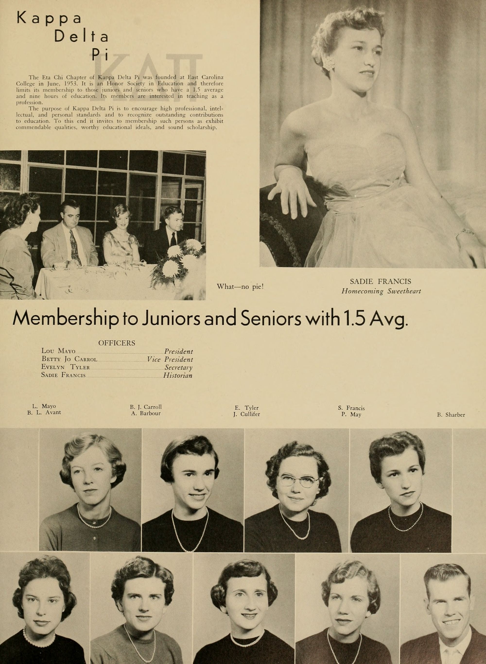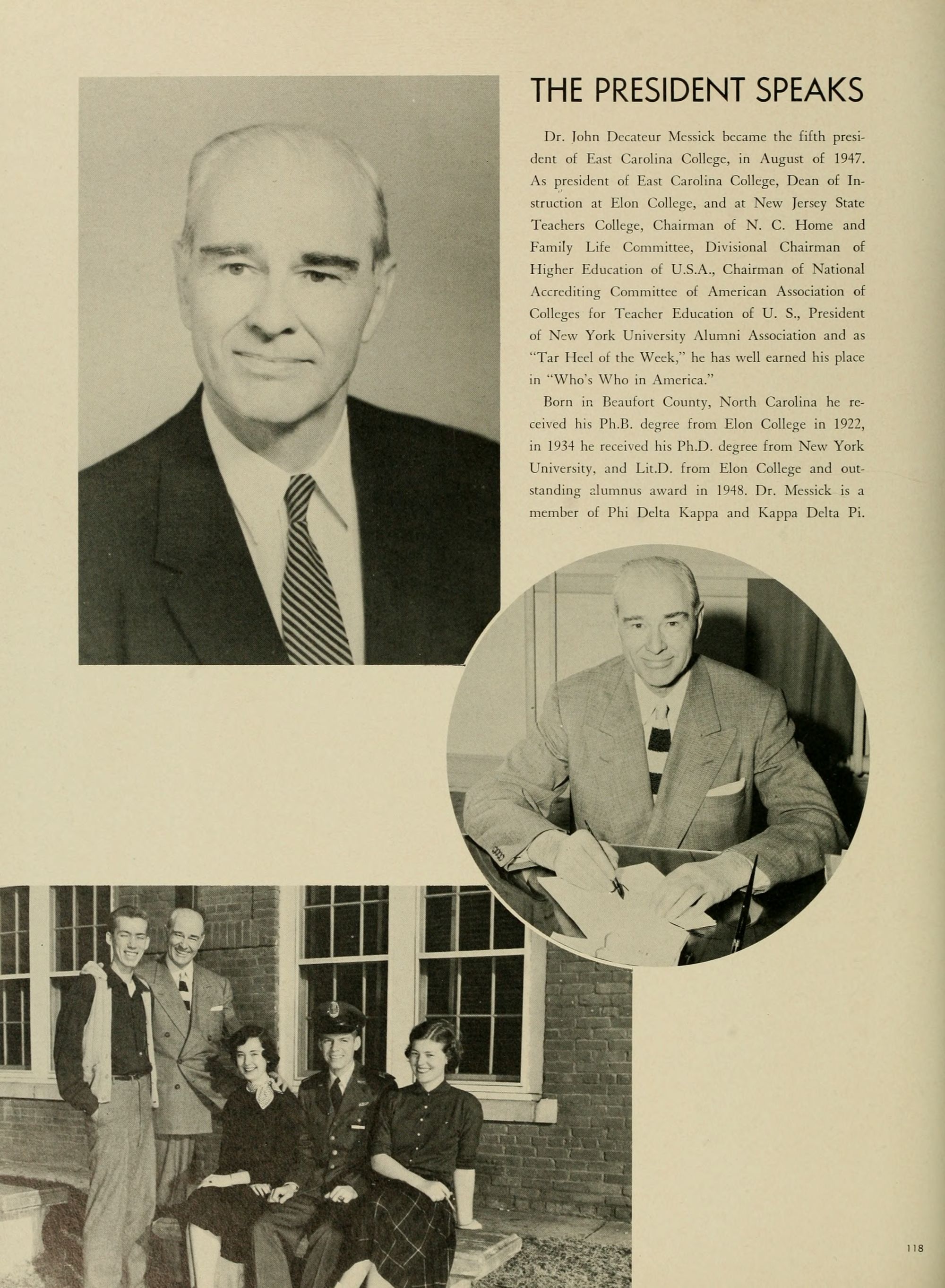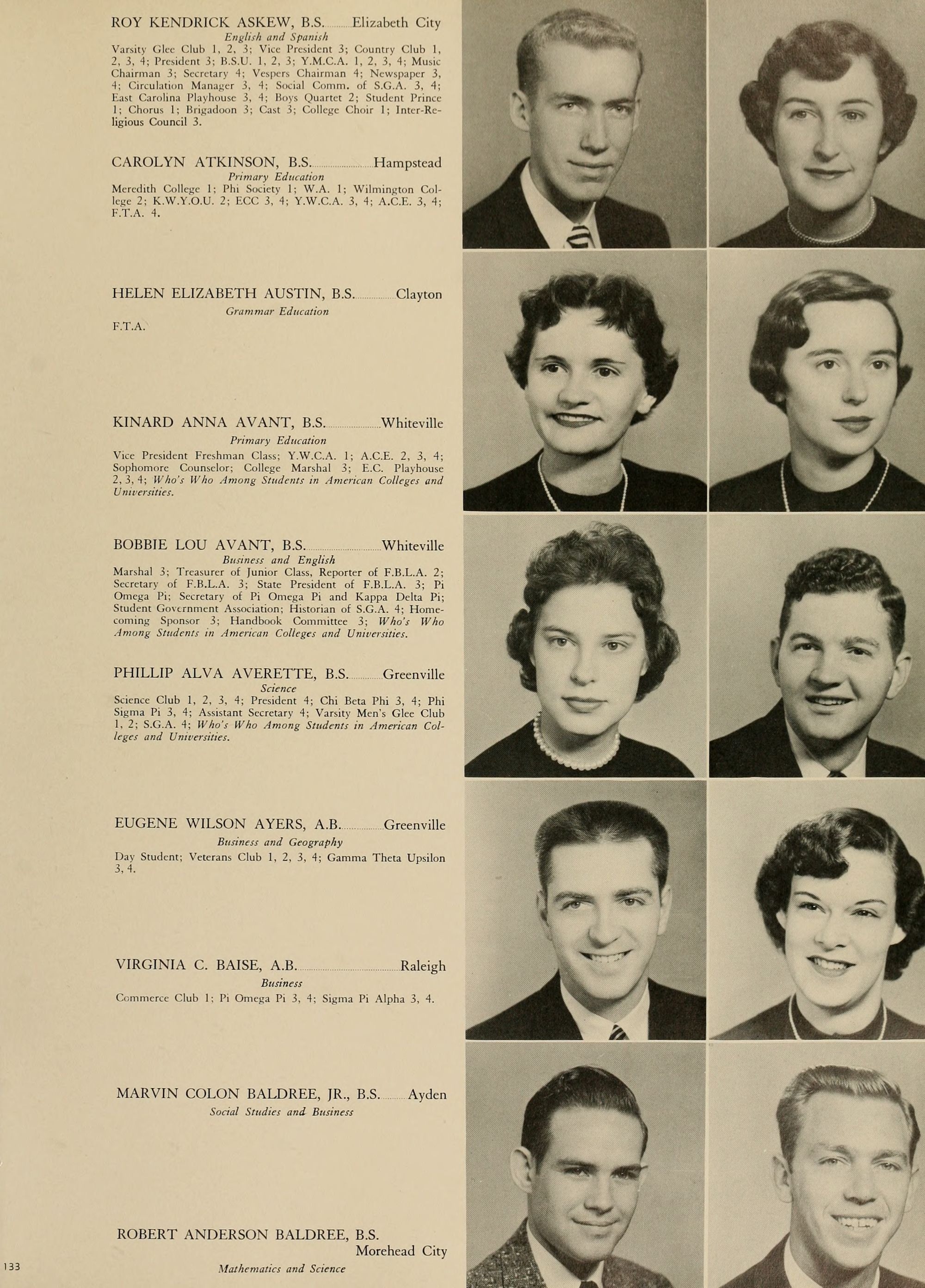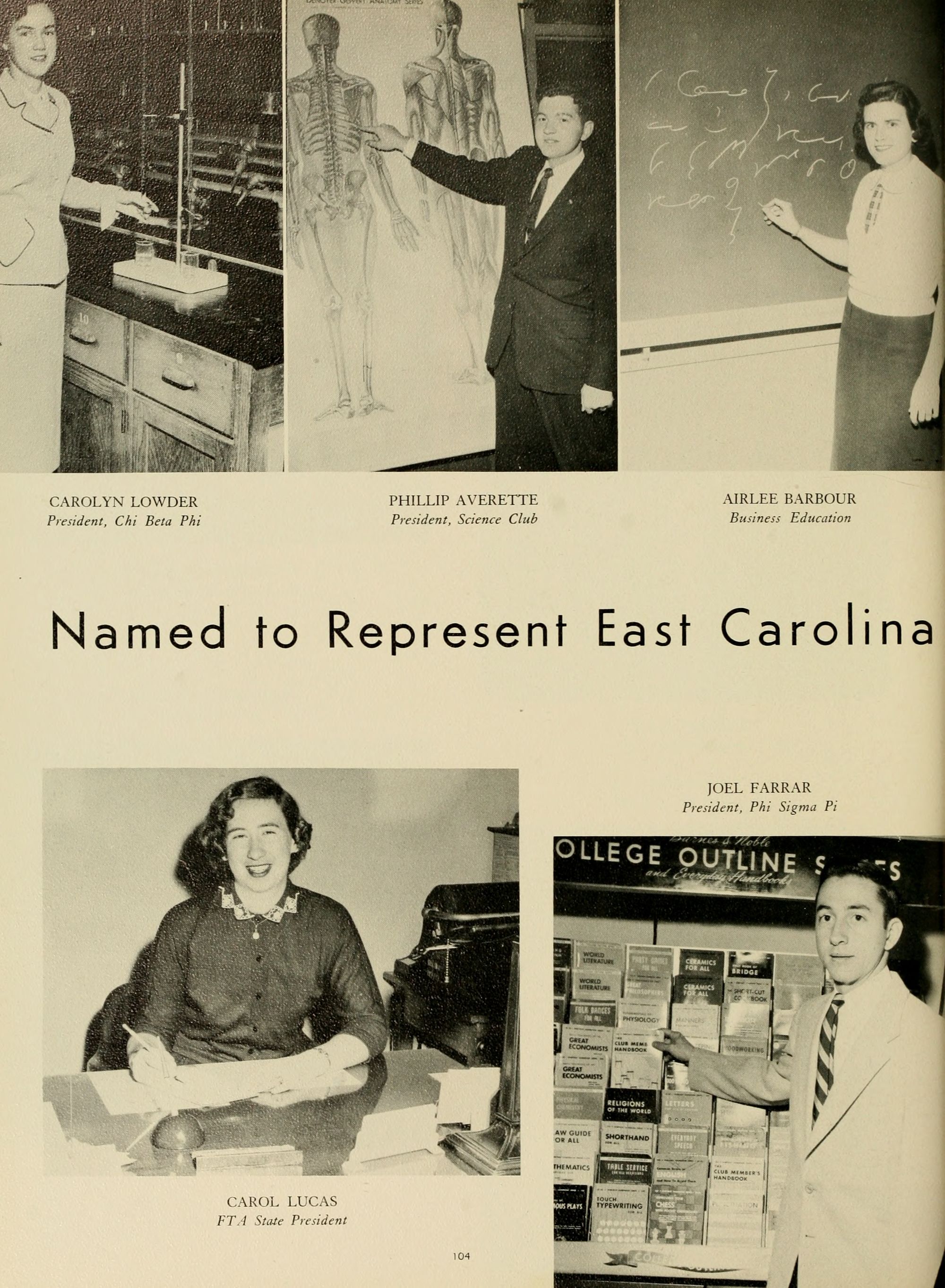 East Carolina has opened its doors to this fine man in the five years he has taught here. He is not only an advisor for the college annual and Circle K Club; but he is Secretary of Eastern North Carolina Scholarship Foundation, President of the College English Associa- tion of North Carolina, Virginia and West Virginia, and a member of A. A. U. P. and Kiwanis Club.
