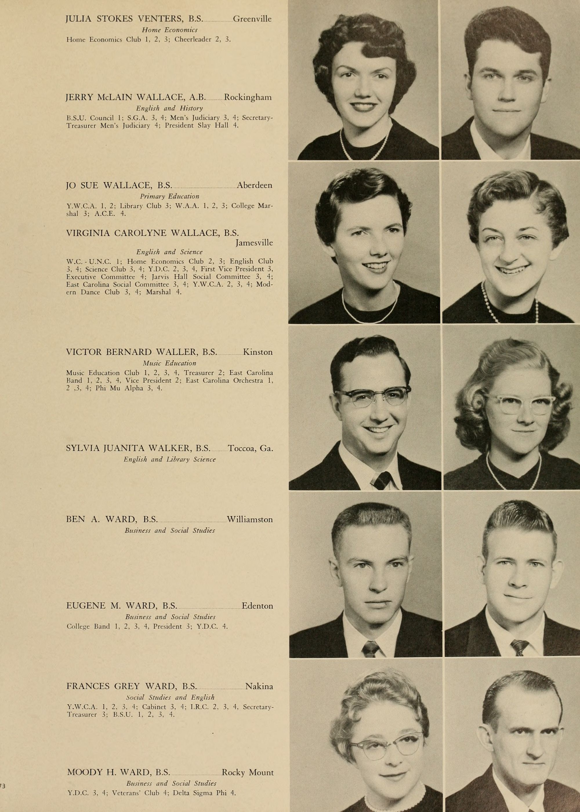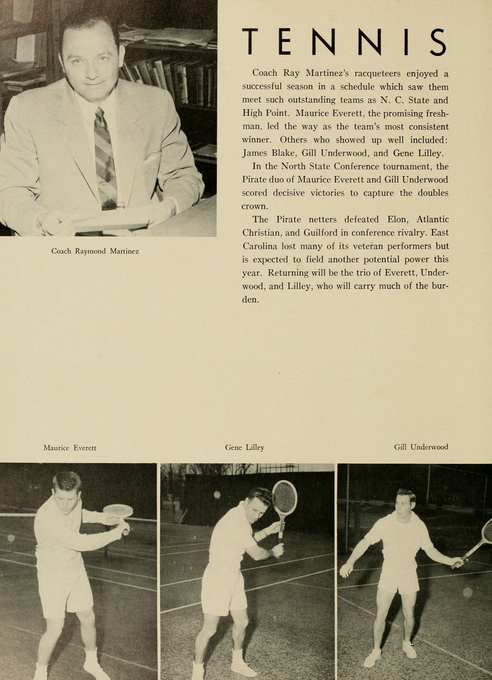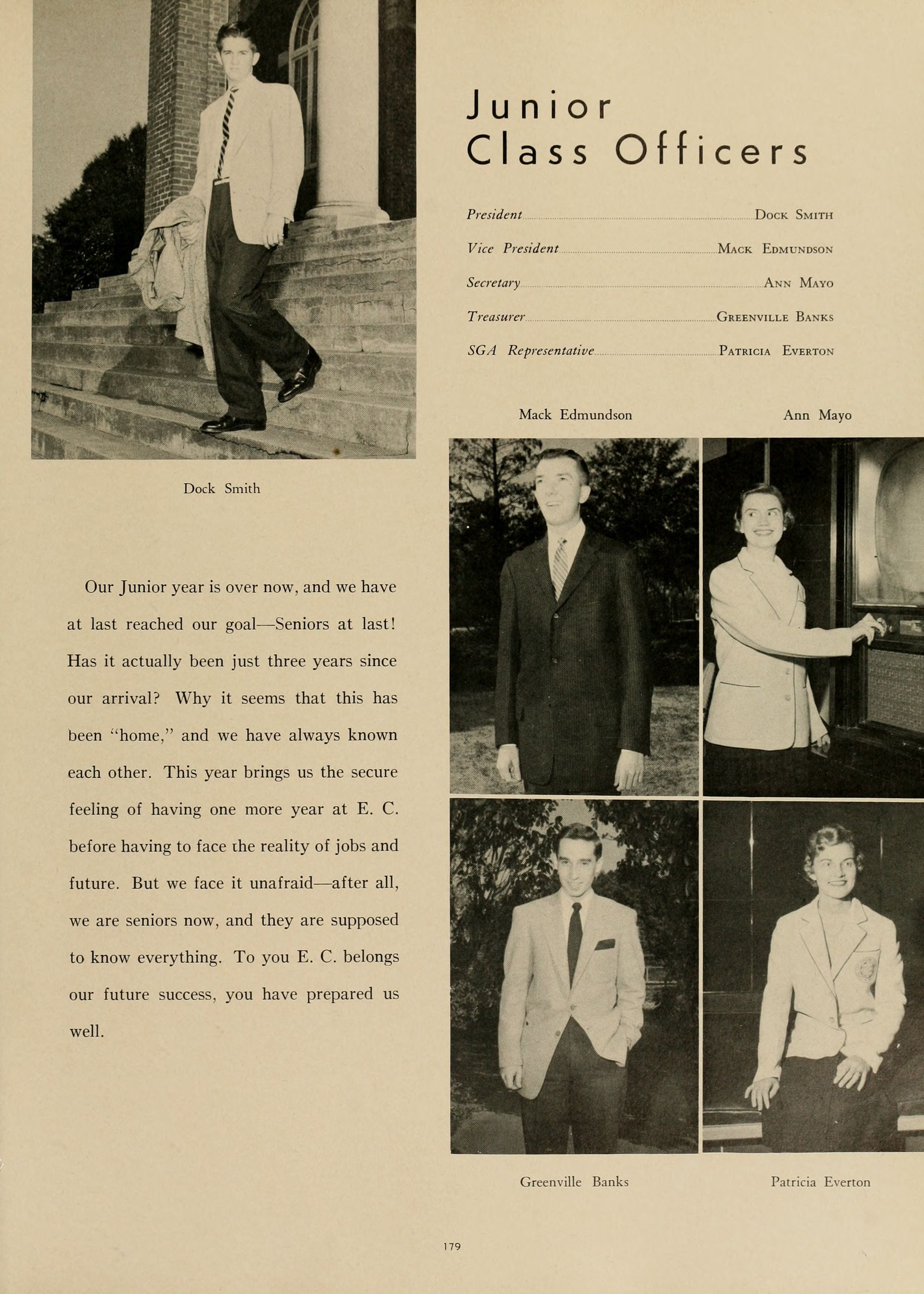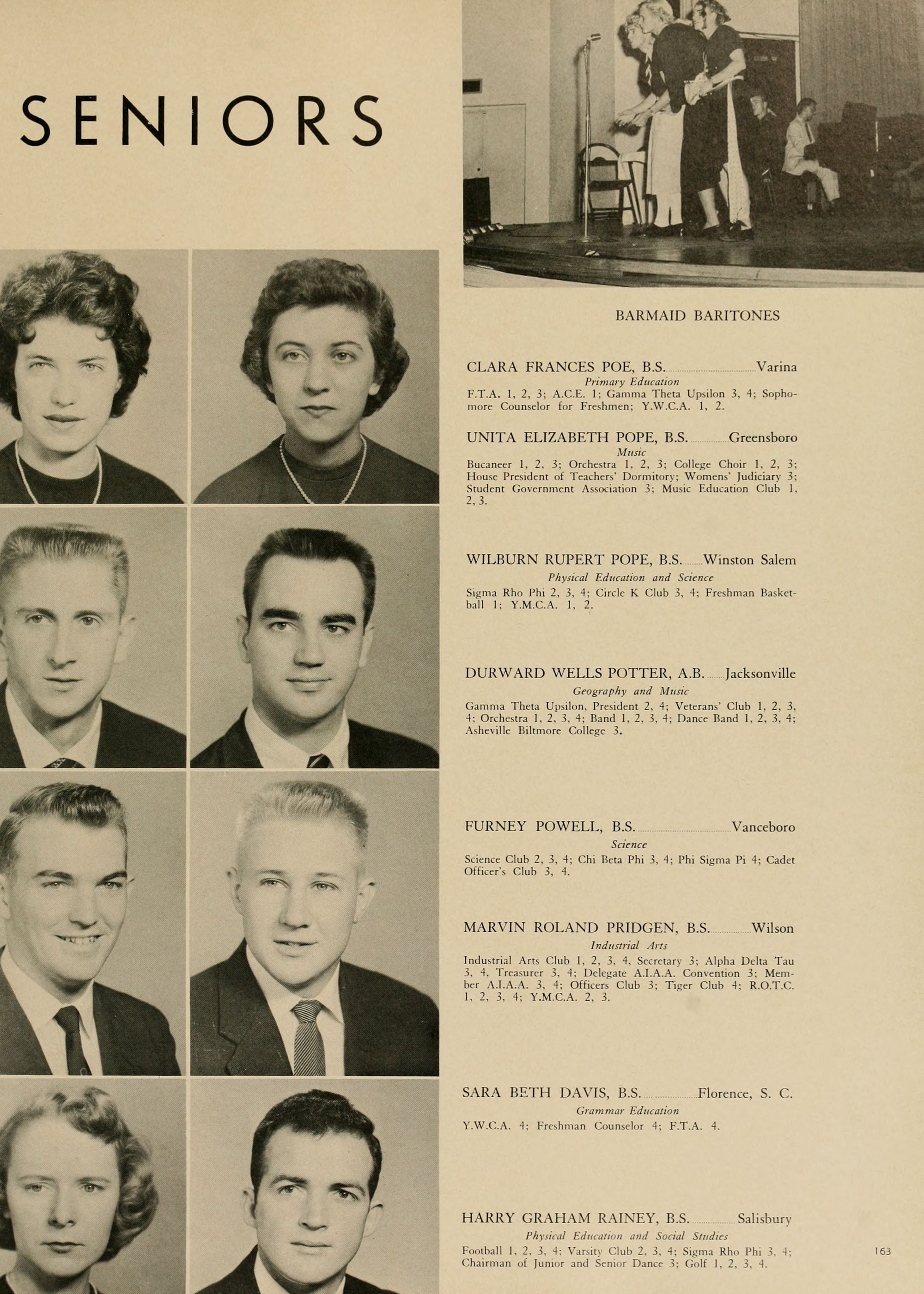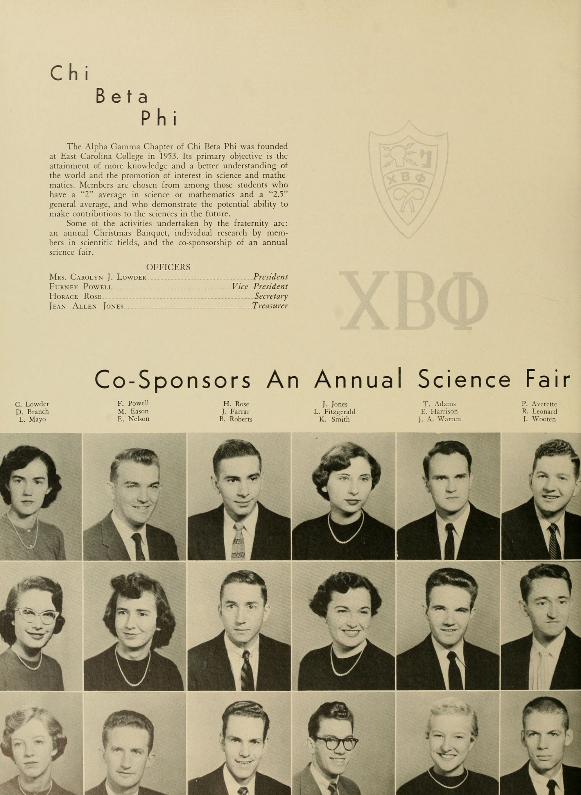 East Carolina has opened its doors to this fine man in the five years he has taught here. He is not only an advisor for the college annual and Circle K Club; but he is Secretary of Eastern North Carolina Scholarship Foundation, President of the College English Associa- tion of North Carolina, Virginia and West Virginia, and a member of A. A. U. P. and Kiwanis Club.