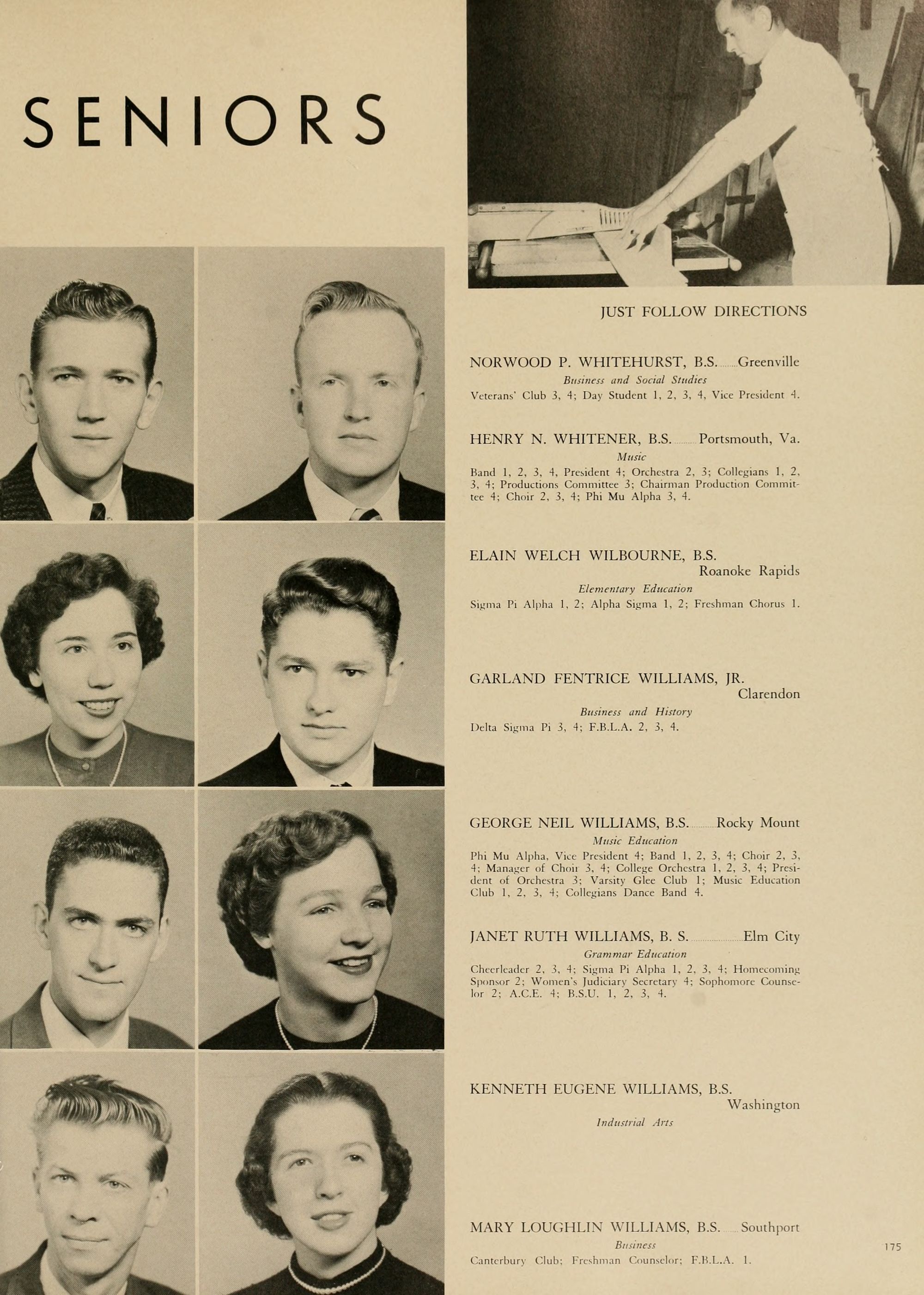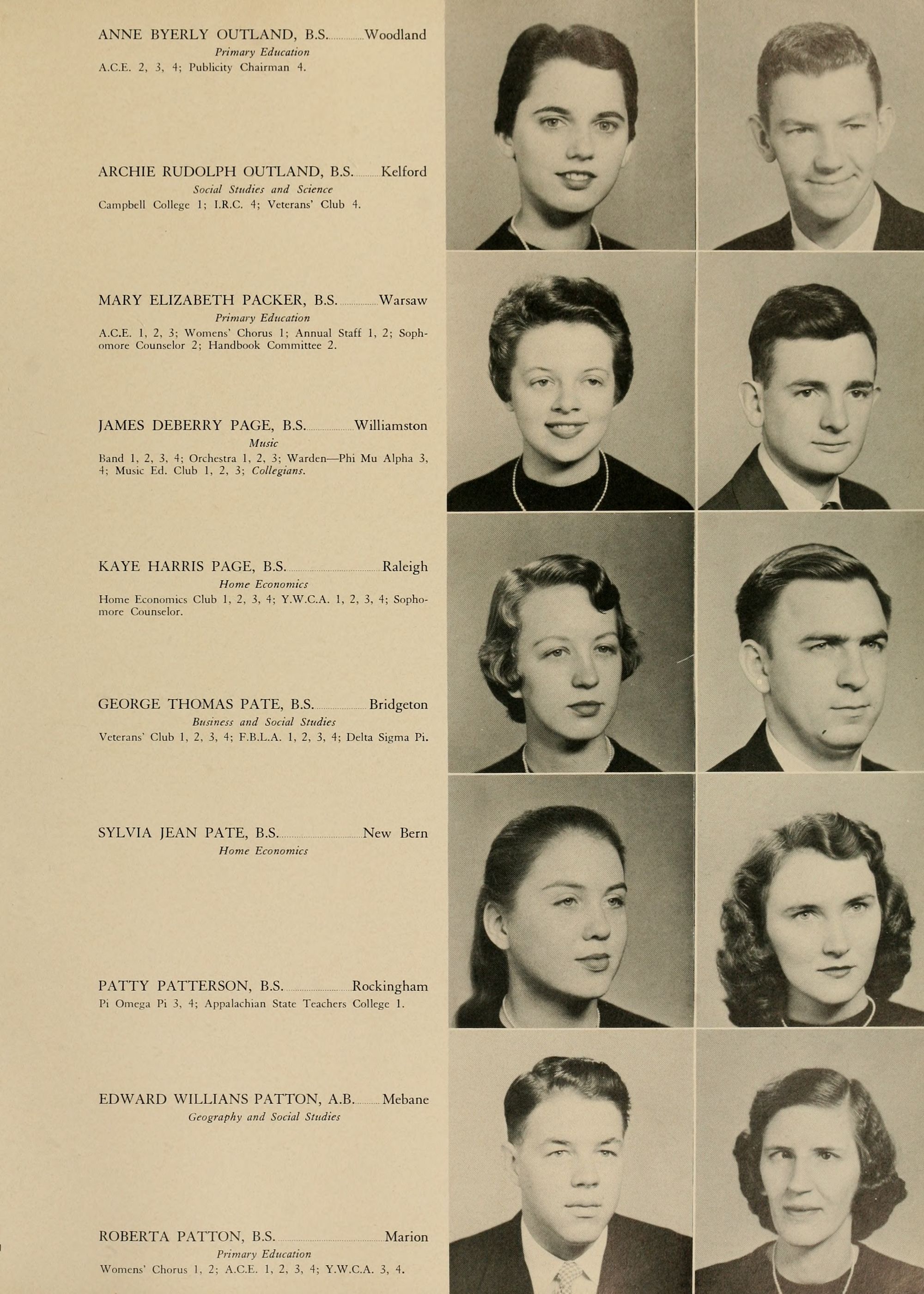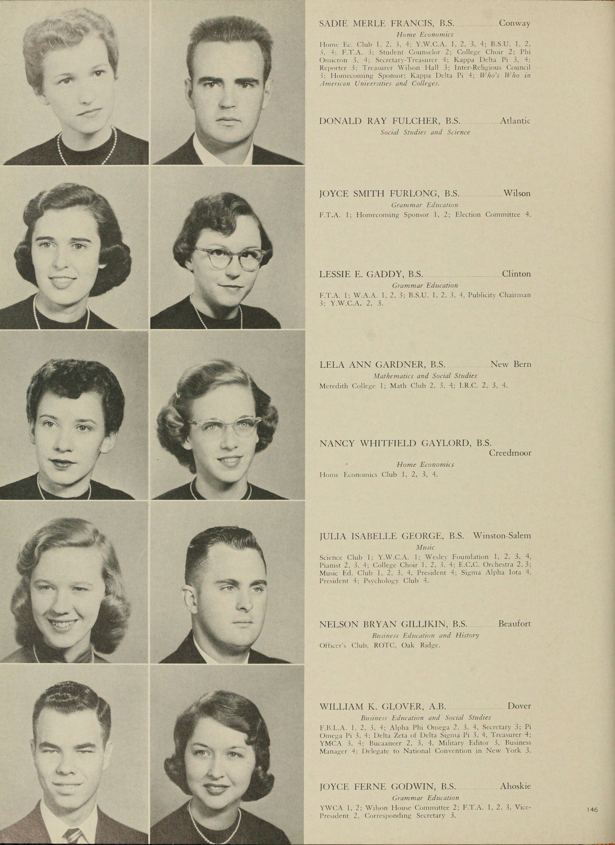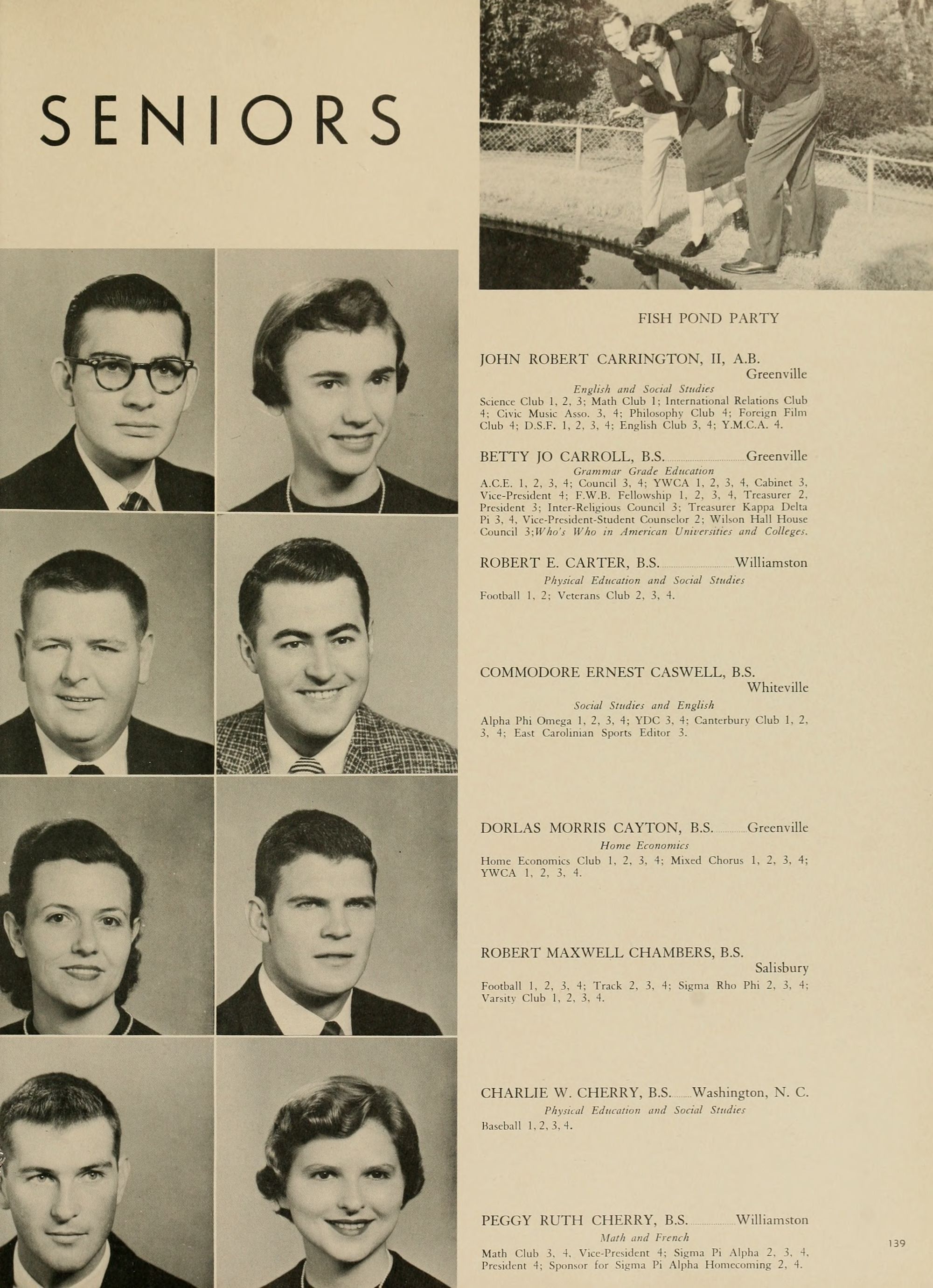 East Carolina has opened its doors to this fine man in the five years he has taught here. He is not only an advisor for the college annual and Circle K Club; but he is Secretary of Eastern North Carolina Scholarship Foundation, President of the College English Associa- tion of North Carolina, Virginia and West Virginia, and a member of A. A. U. P. and Kiwanis Club.