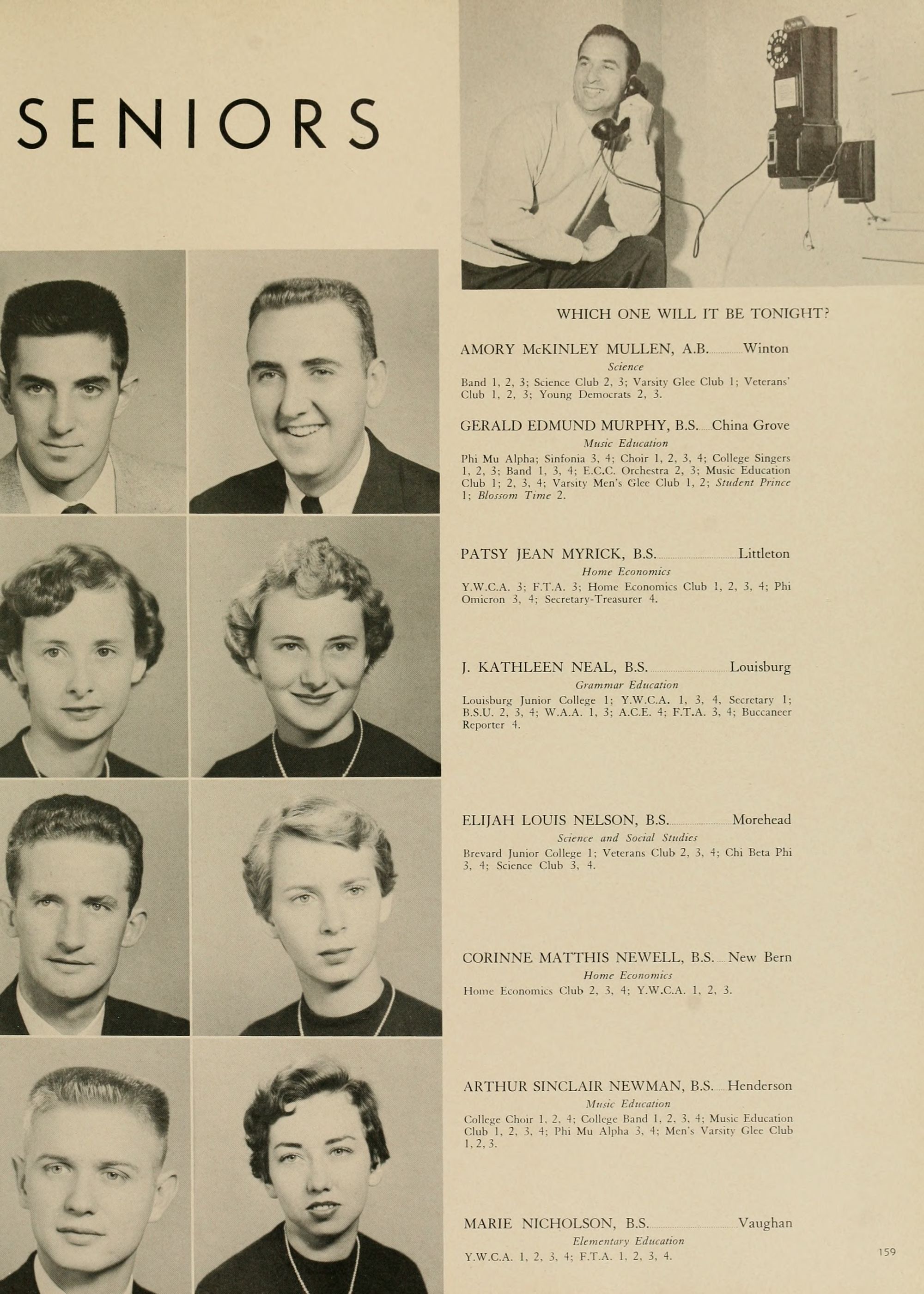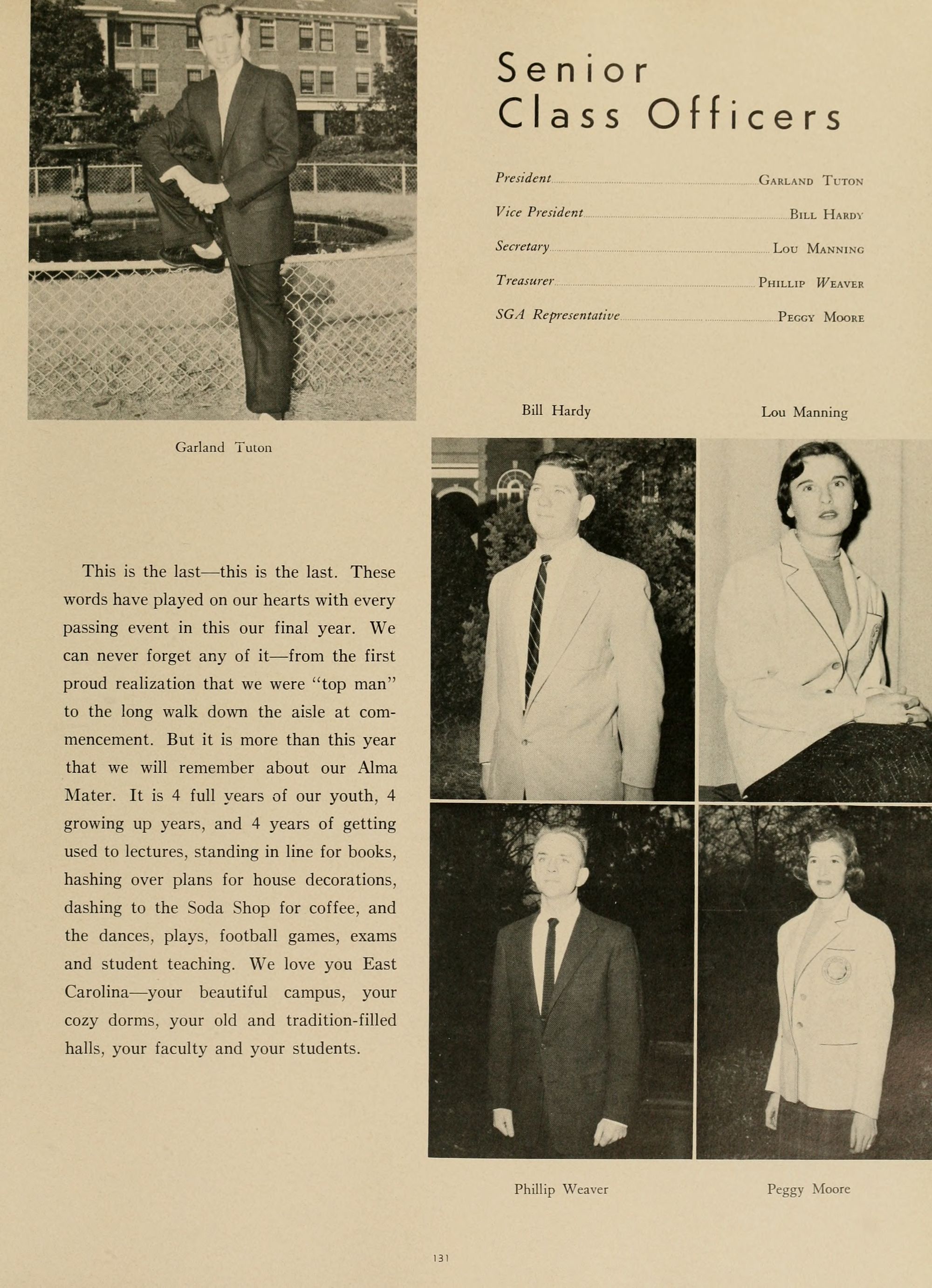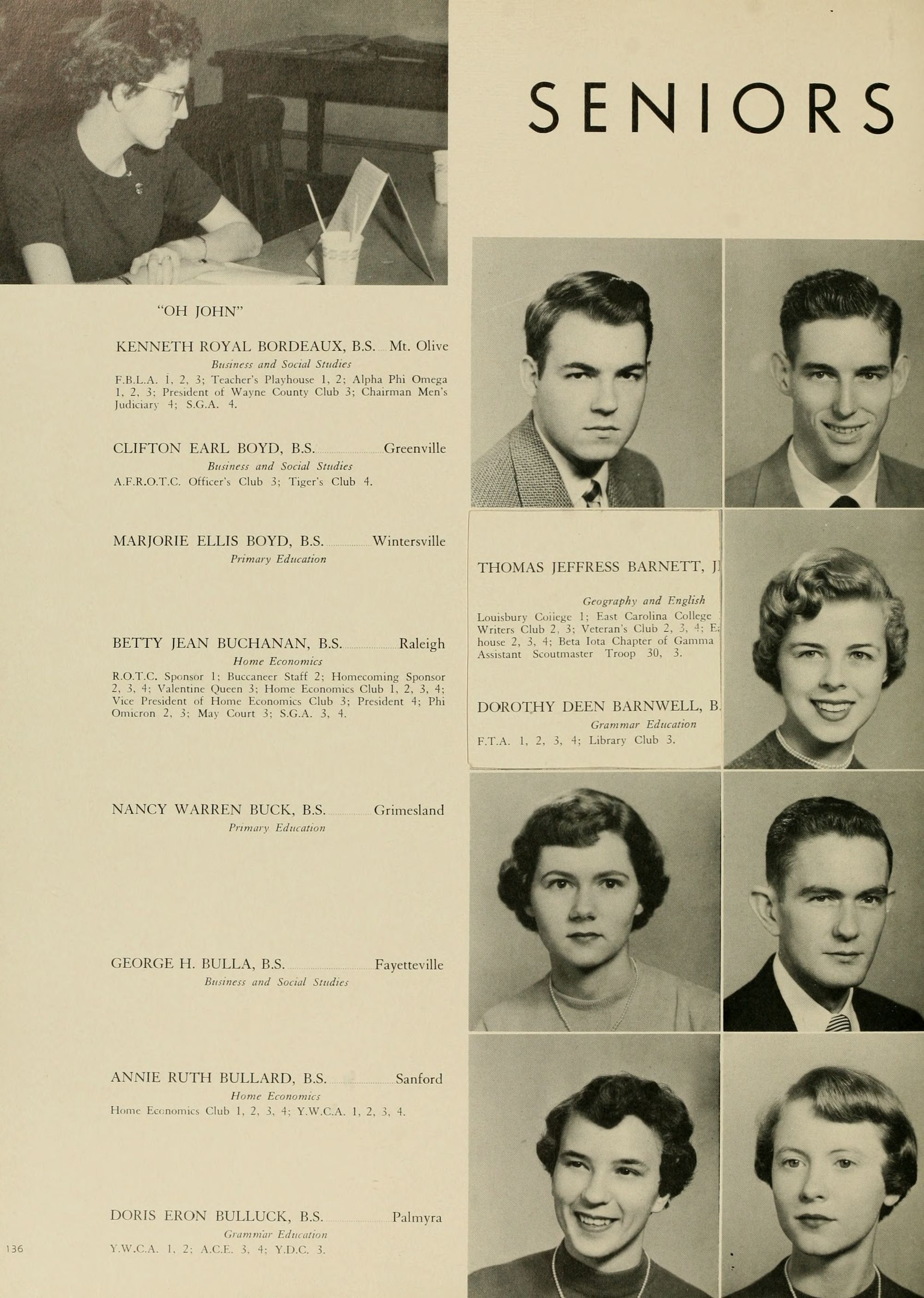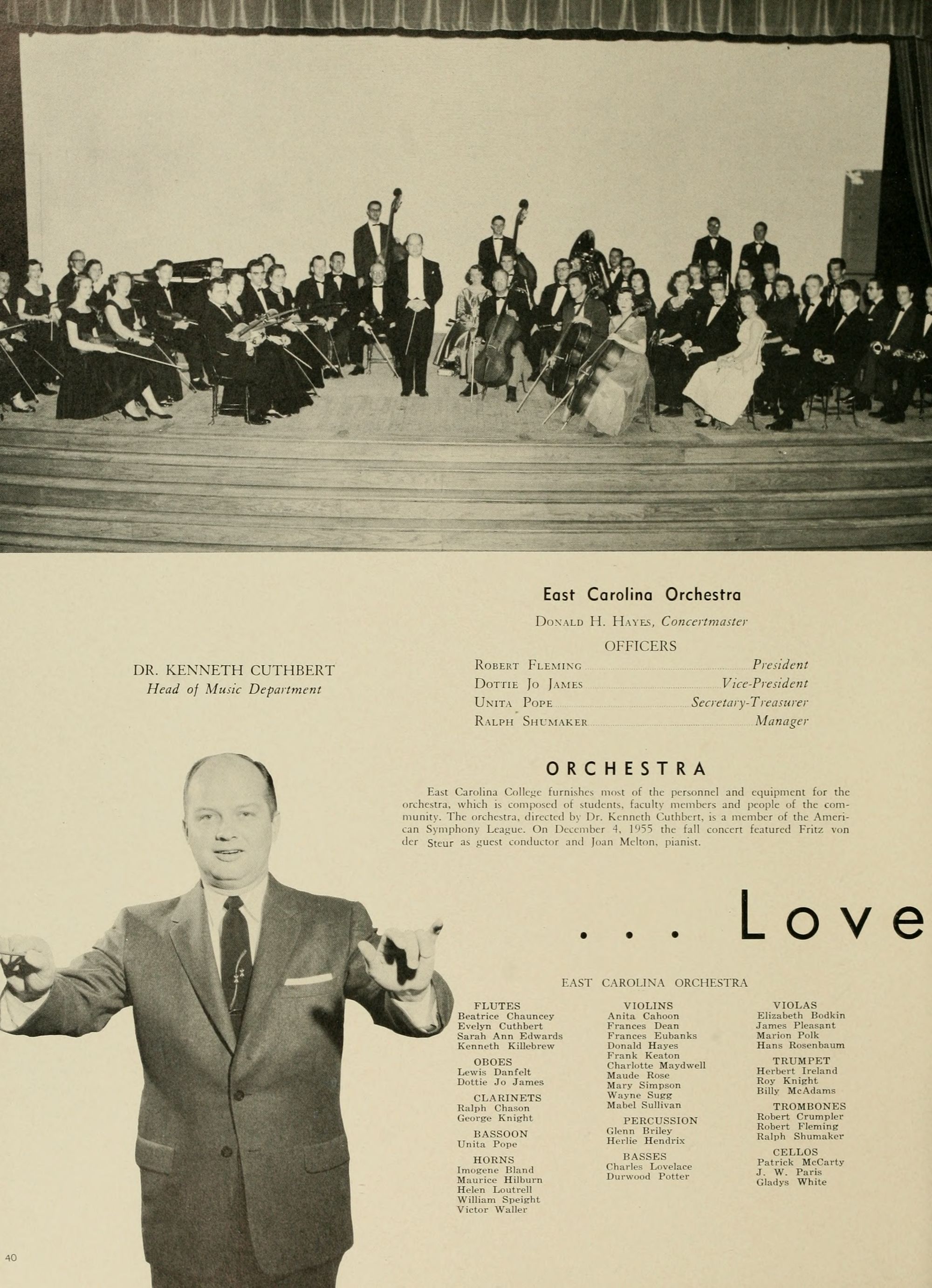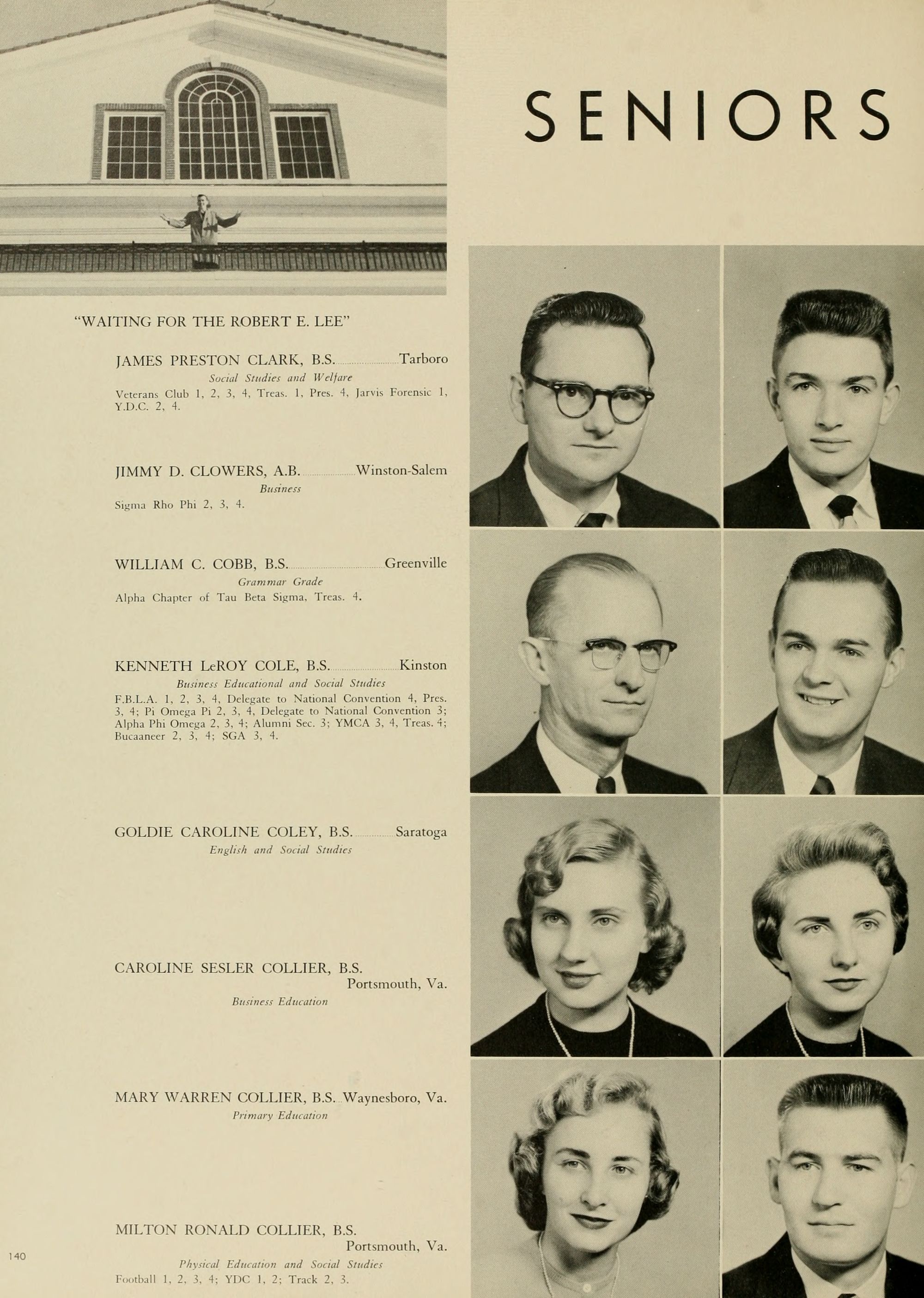 East Carolina has opened its doors to this fine man in the five years he has taught here. He is not only an advisor for the college annual and Circle K Club; but he is Secretary of Eastern North Carolina Scholarship Foundation, President of the College English Associa- tion of North Carolina, Virginia and West Virginia, and a member of A. A. U. P. and Kiwanis Club.