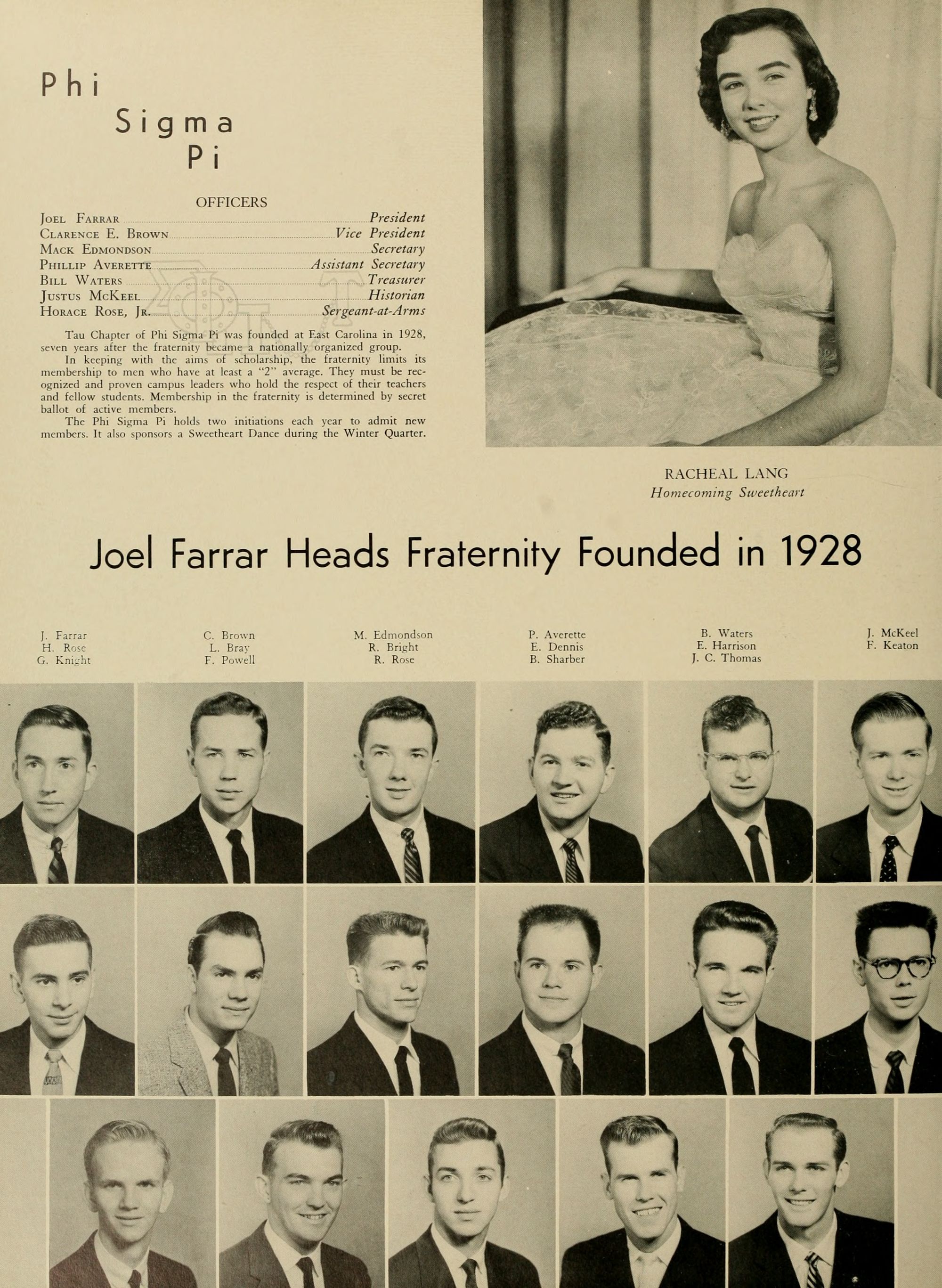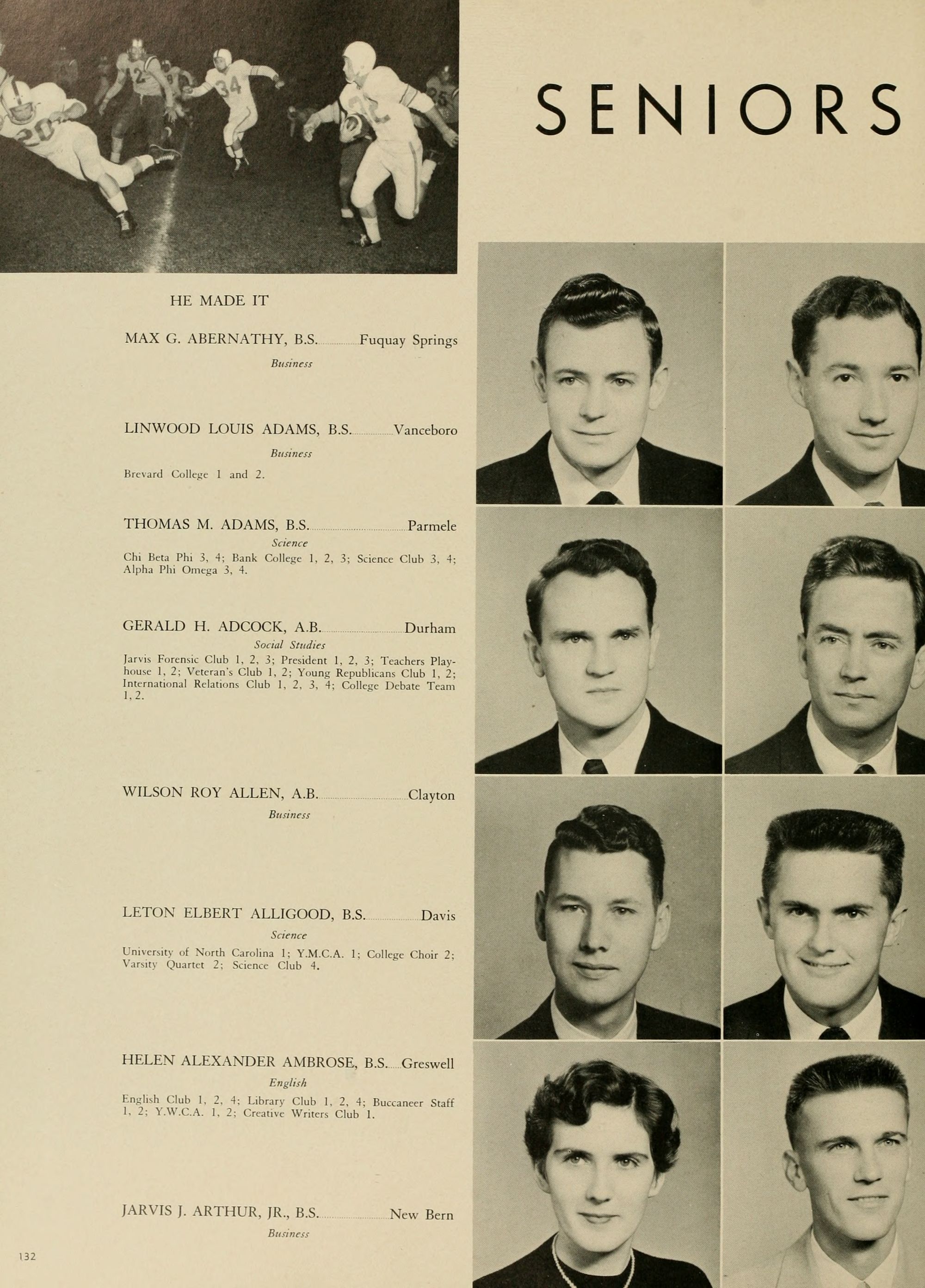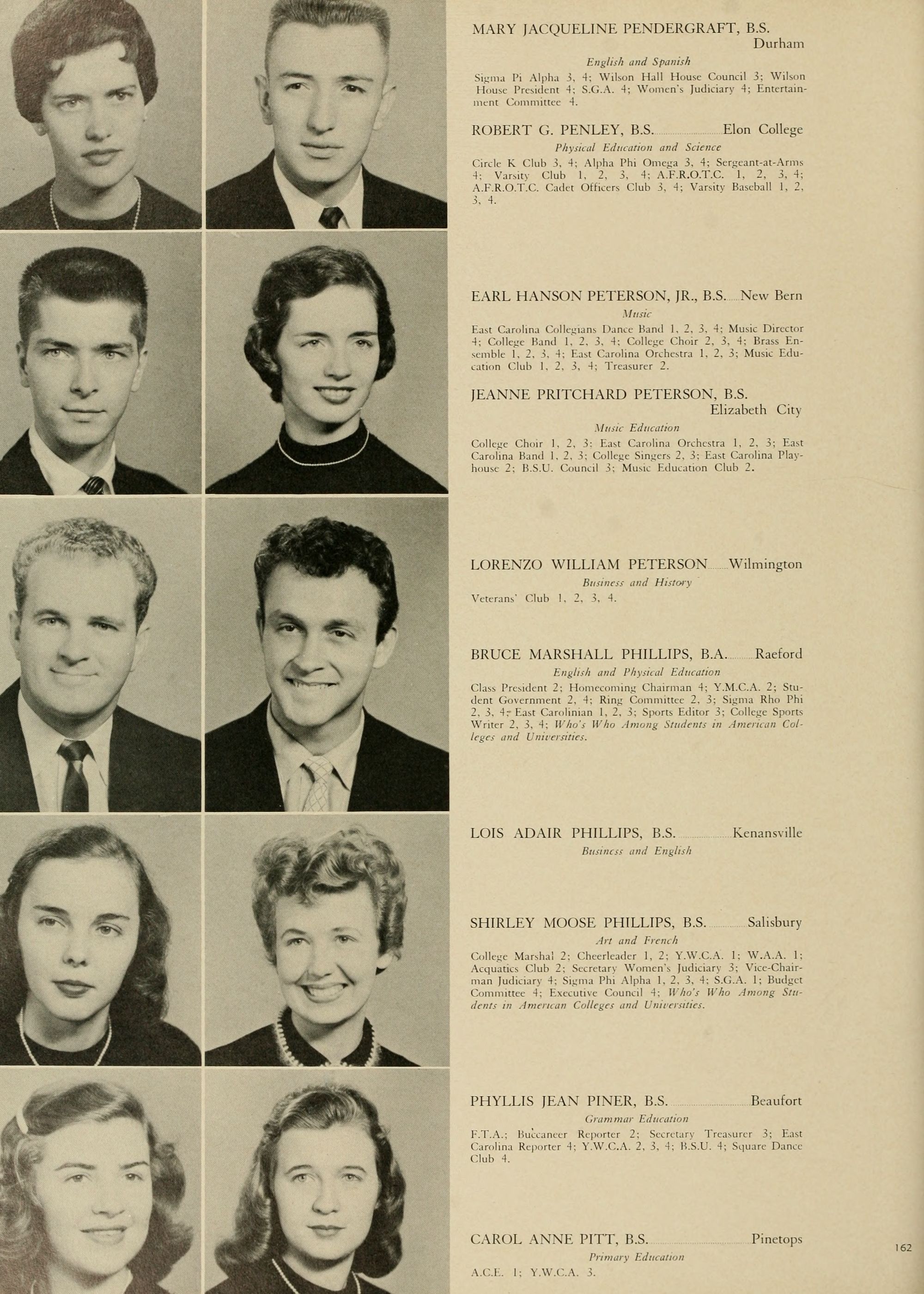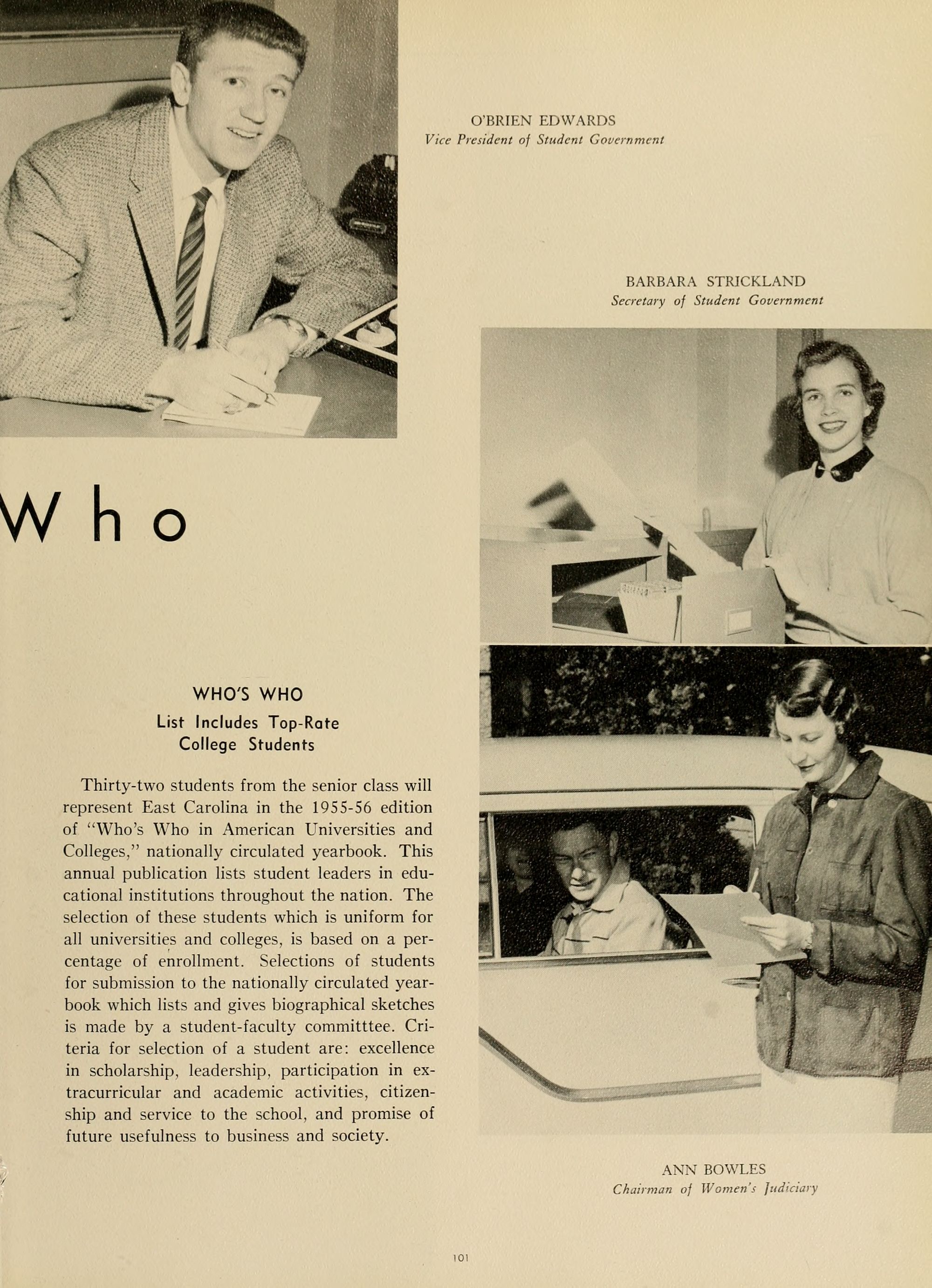 East Carolina has opened its doors to this fine man in the five years he has taught here. He is not only an advisor for the college annual and Circle K Club; but he is Secretary of Eastern North Carolina Scholarship Foundation, President of the College English Associa- tion of North Carolina, Virginia and West Virginia, and a member of A. A. U. P. and Kiwanis Club.