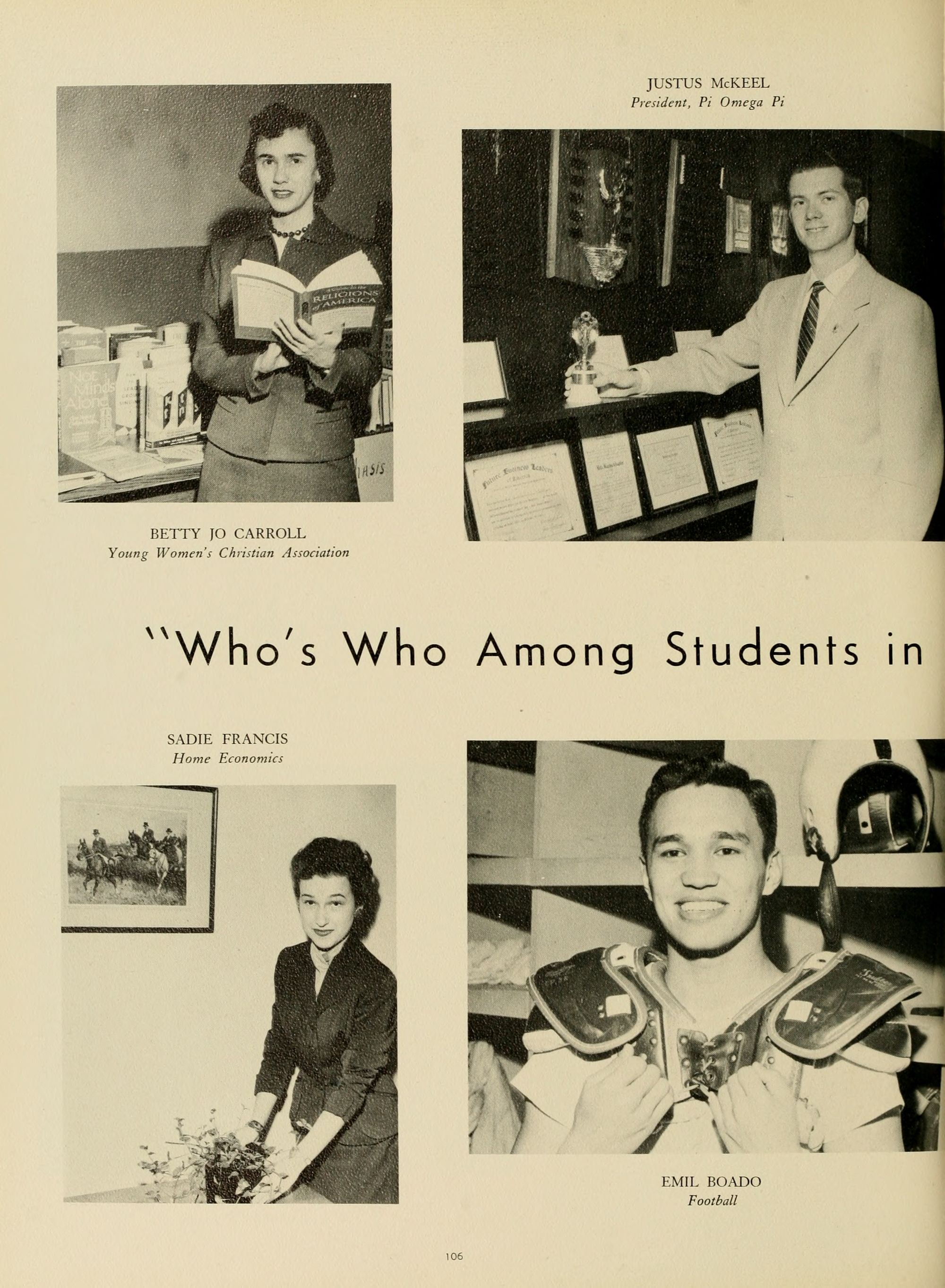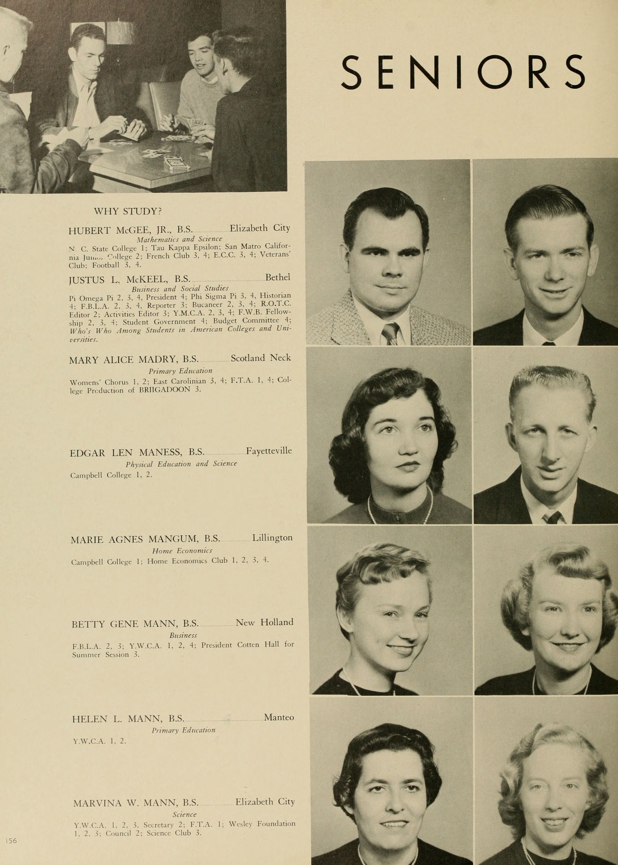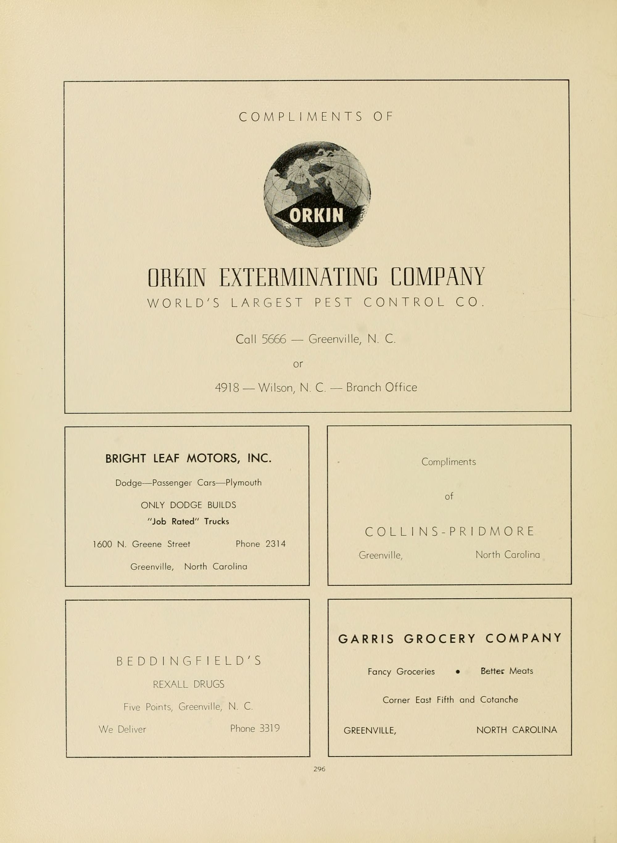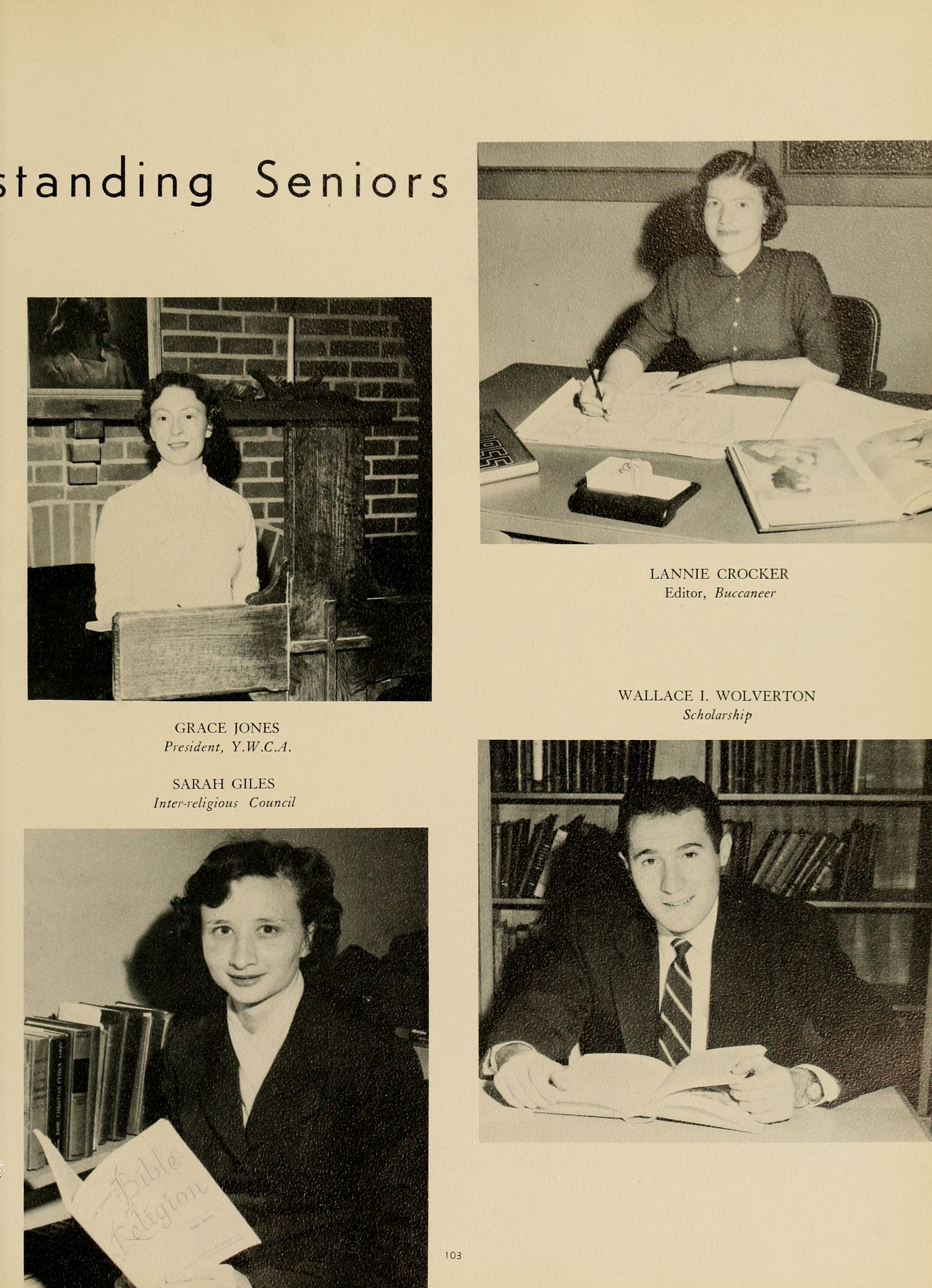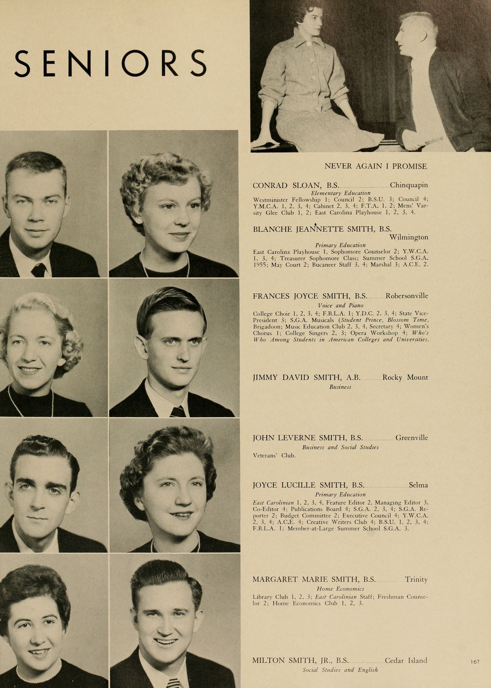 East Carolina has opened its doors to this fine man in the five years he has taught here. He is not only an advisor for the college annual and Circle K Club; but he is Secretary of Eastern North Carolina Scholarship Foundation, President of the College English Associa- tion of North Carolina, Virginia and West Virginia, and a member of A. A. U. P. and Kiwanis Club.