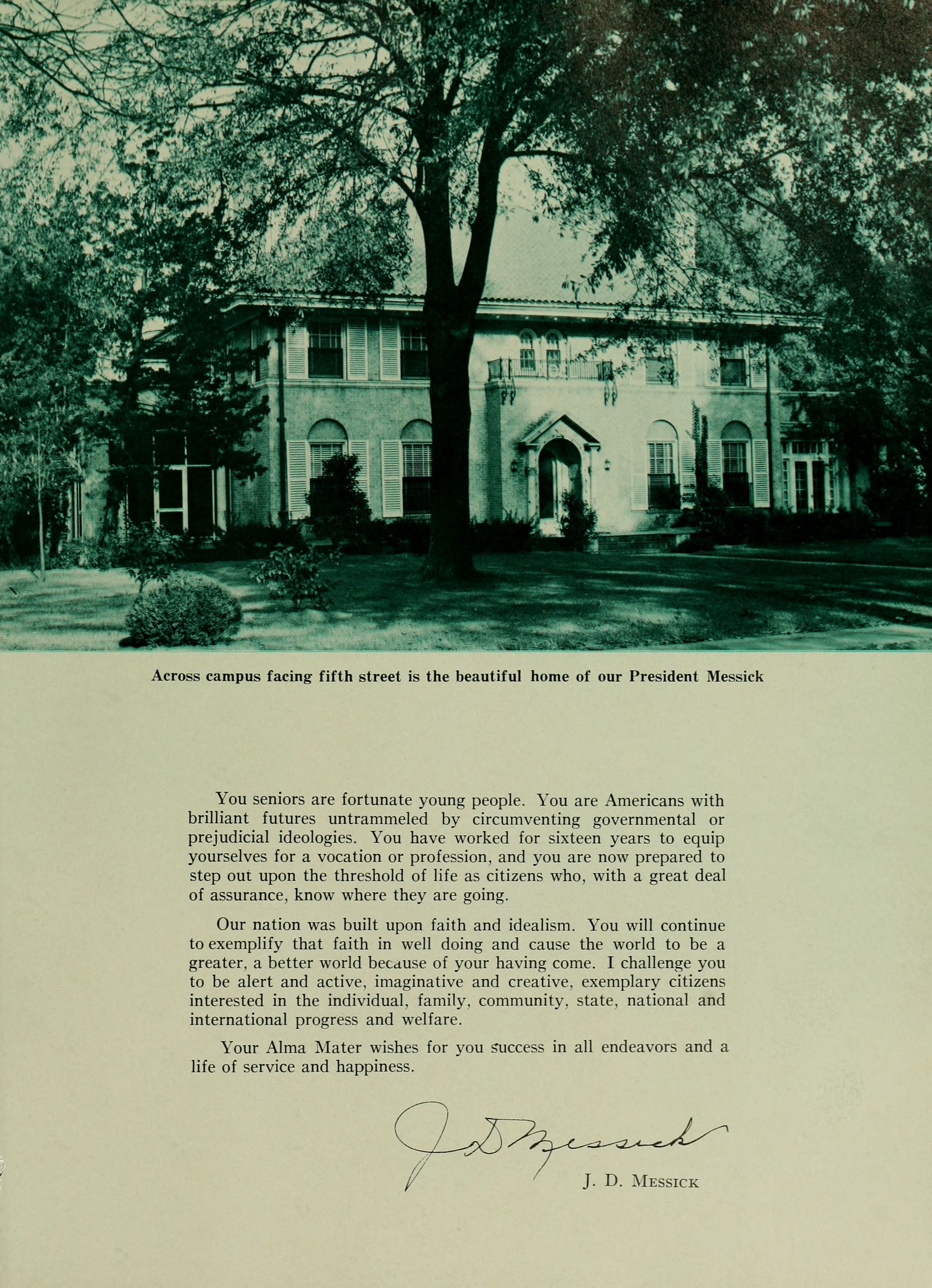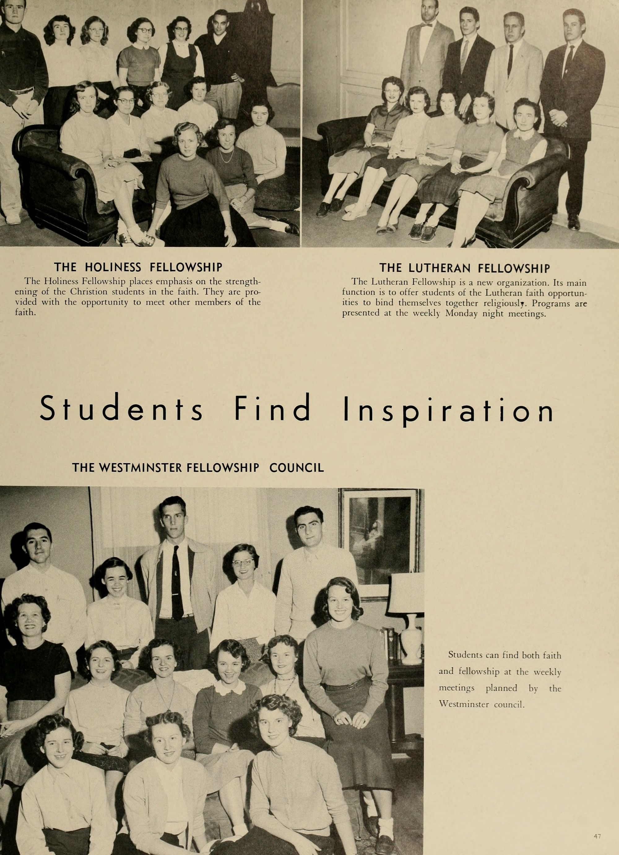 If a student gains nothing else from college but the ability to live and get along with others, his four years of school have not been a complete- failure. For in addition to his school work, his social life must grow also. Through the experi- ences of dormitory life and social activities on the campus, his coming years will abound in success and happiness.