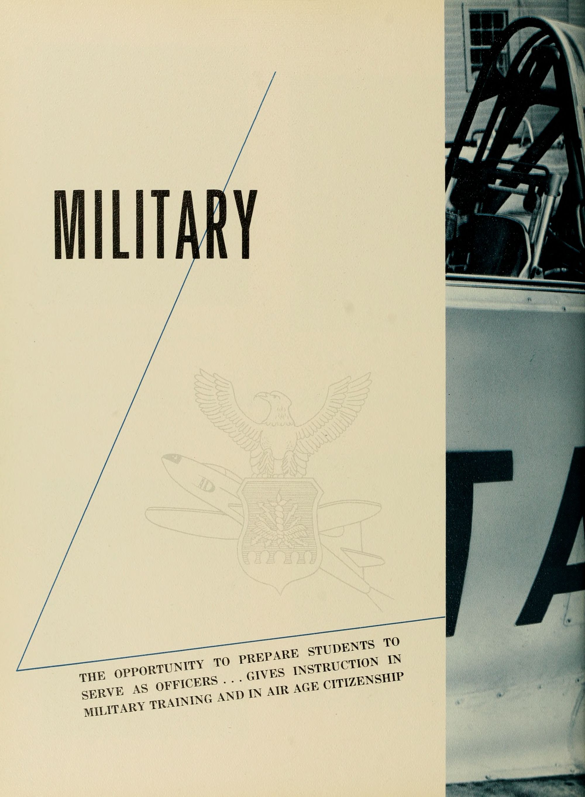 The Air Force Reserve Officers' Training Corps is offered tc any student who wishes to take advantage of the opportunity to receive a com- mission in the Reserve Officers' Training Corps while working for a college degree.