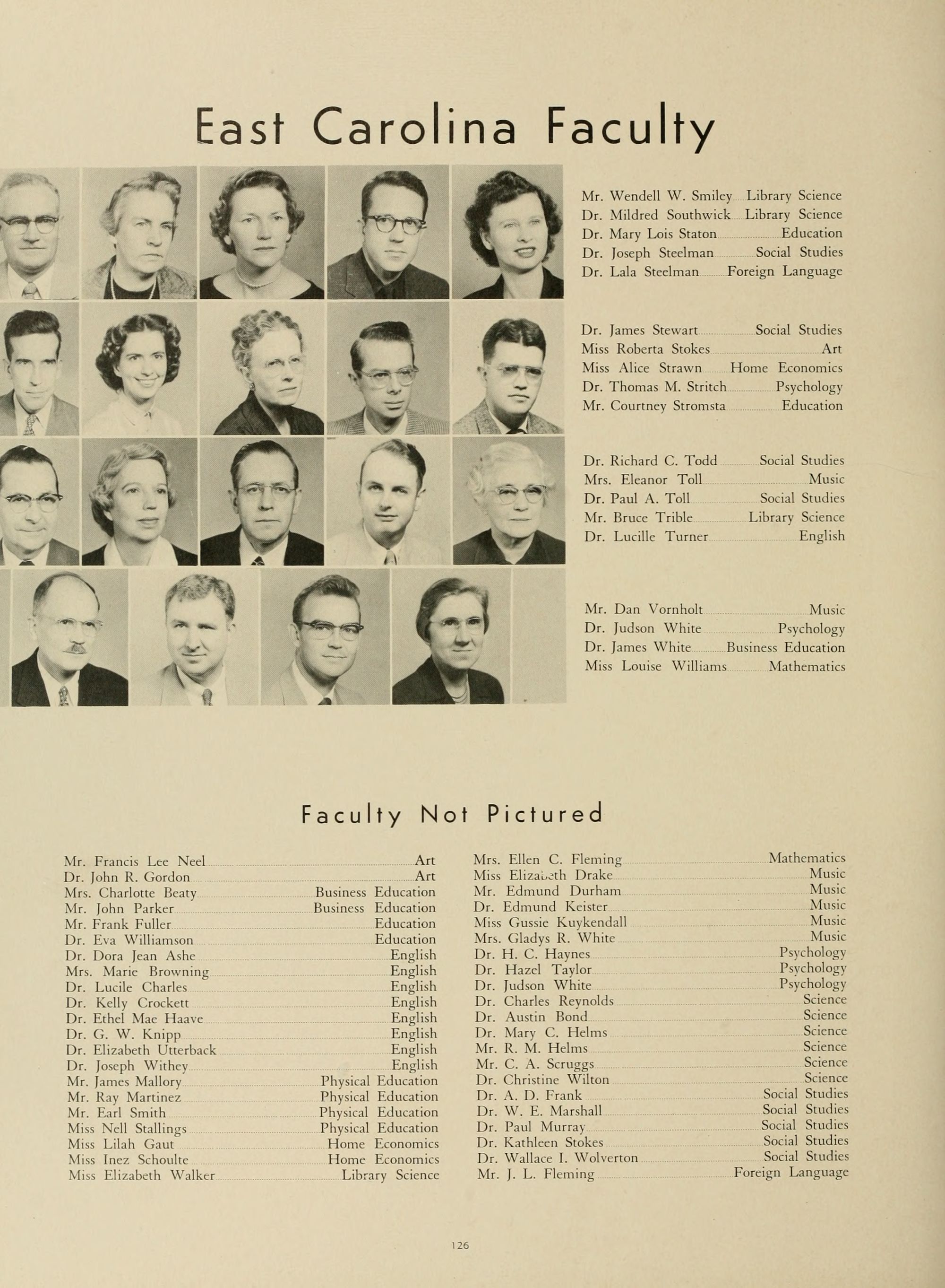 From the faculty of East Carolina comes ever welcomed advice, after class as well as during the seemingly endless periods. It has been through the extra efforts of these teachers that many students have passed that "final."