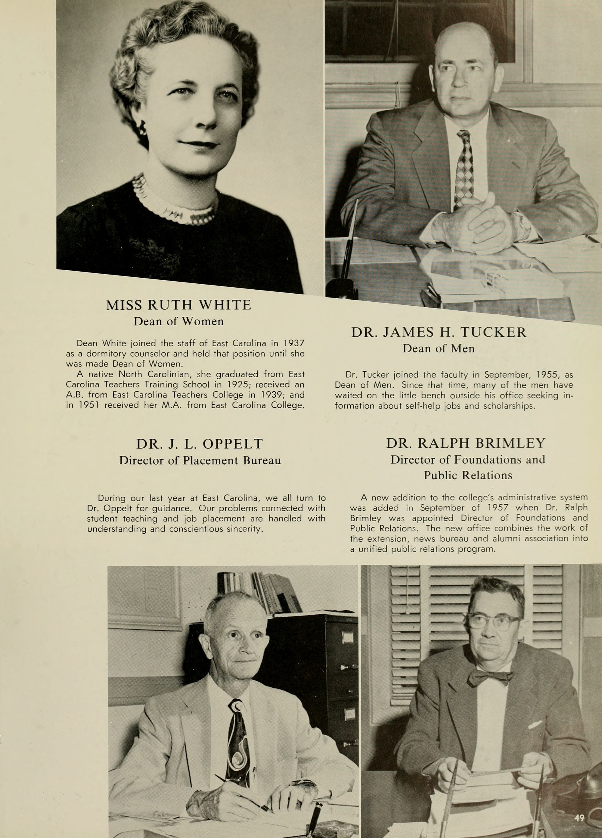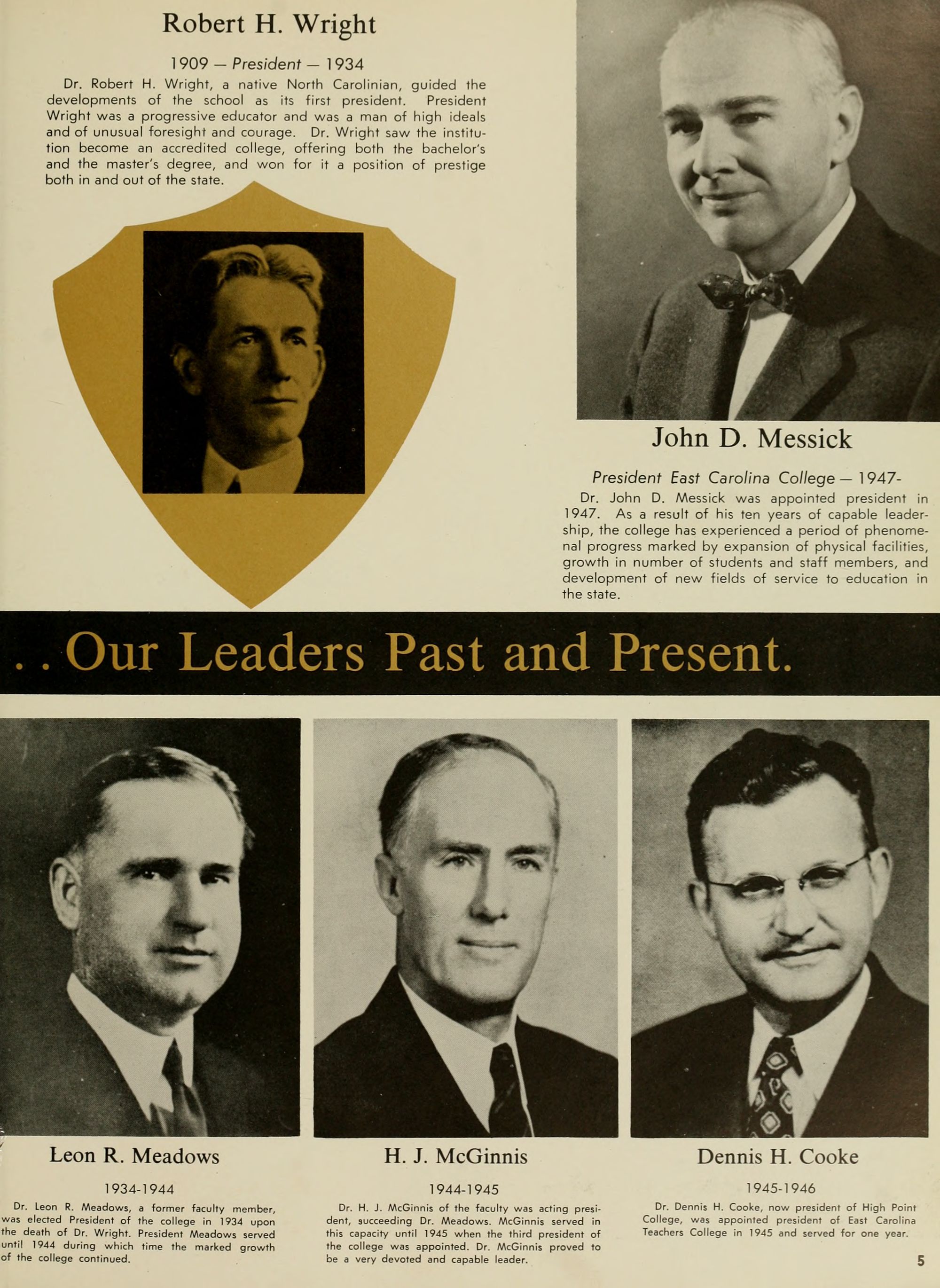 Dr. Dennis H. Cooke, now president of High Point College, was appointed president of East Carolina Teachers College in 1945 and served for one year.