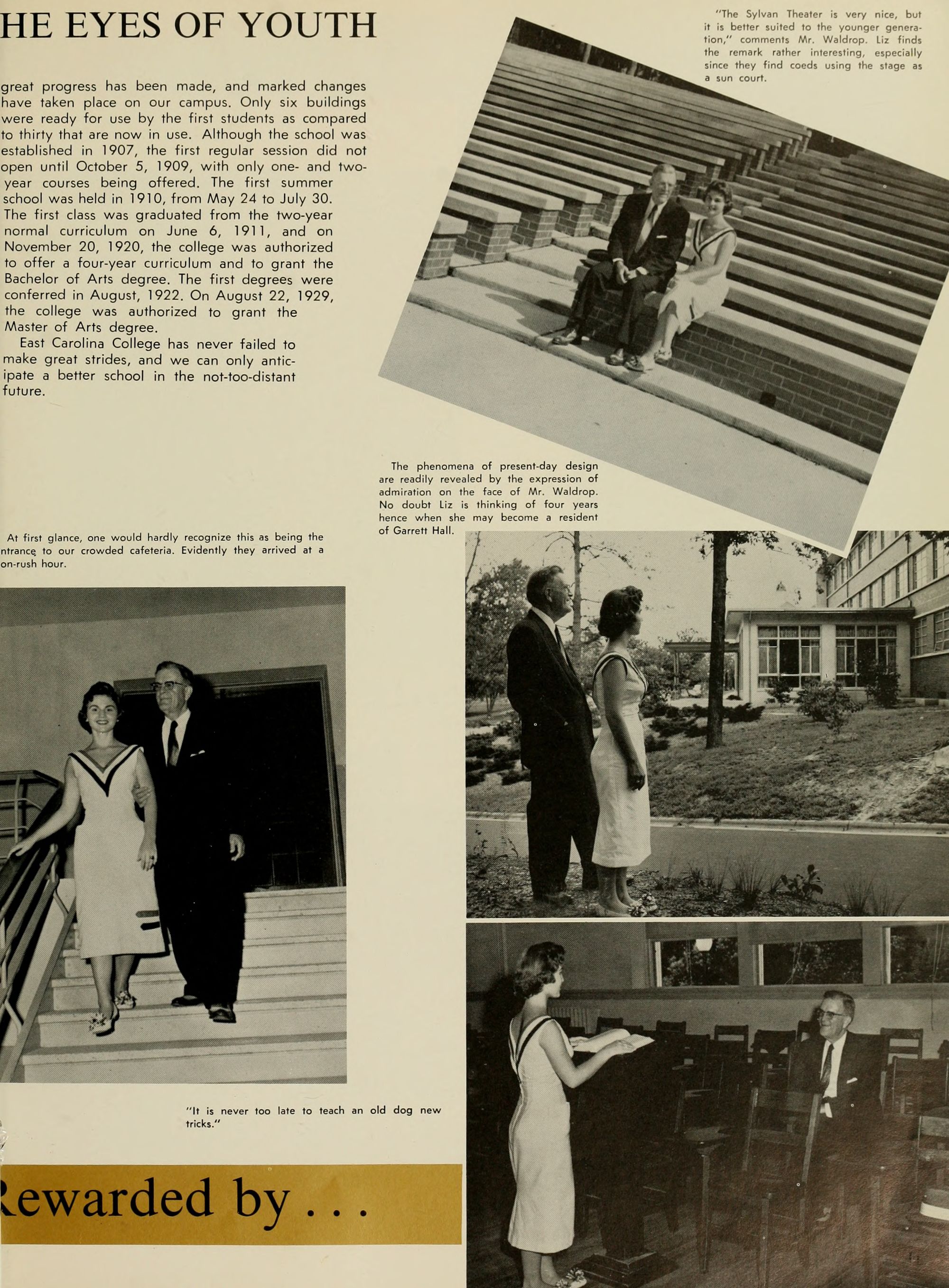 Since 1929, the student body has published an annual volume covering the college and its activities. We, on our Golden Anniversary, continue that tradition, giving praise to our predecessors and attempting to further the work which they have begun. As time passes, may East Carolina continue worthy of its beginnings.